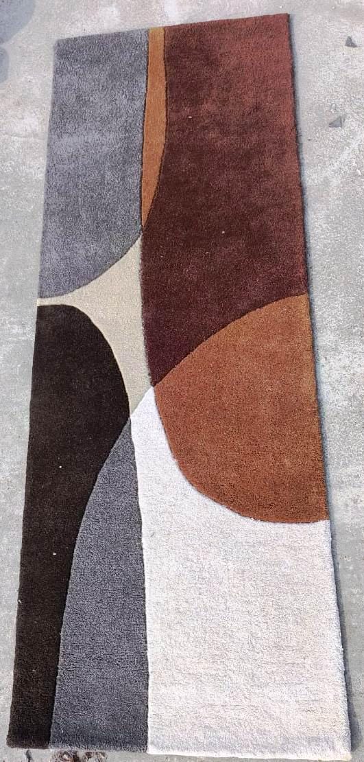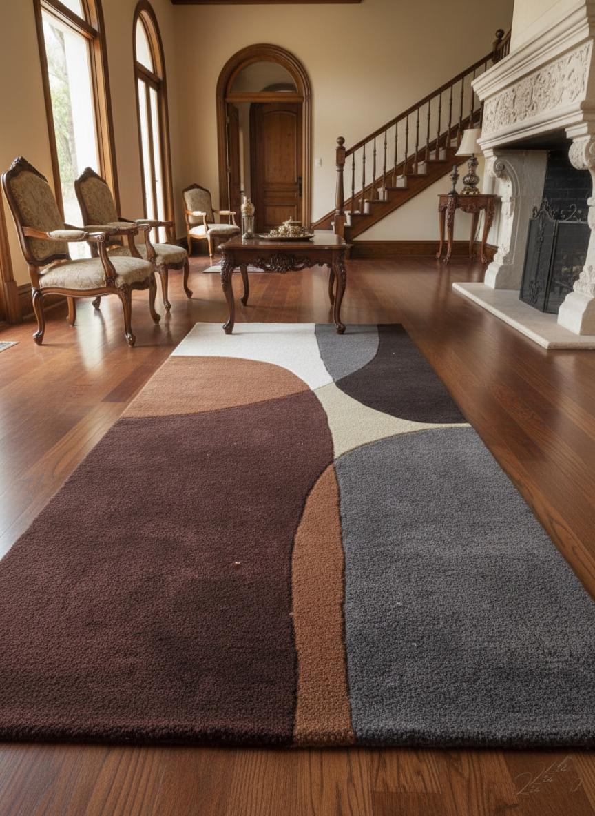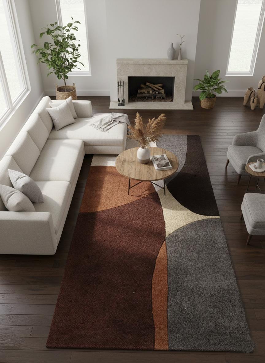 Add warmth, style, and modern elegance to your space with this modern abstract rug runner, designed to elevate bedrooms, hallways, and cozy living areas. Featuring soft geometric curves and a calming palette of brown, beige, gray, and warm earth tones, this rug blends seamlessly with minimalist, mid-century, and contemporary interiors.