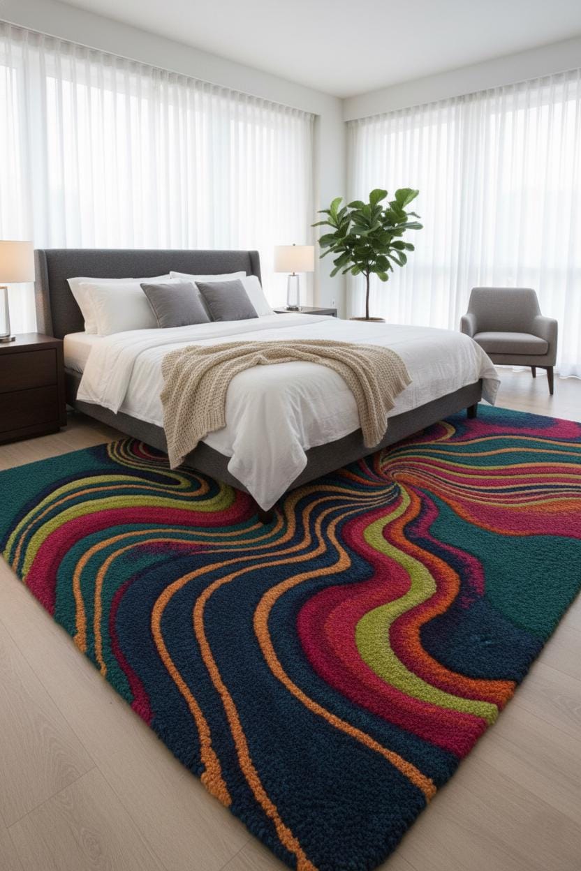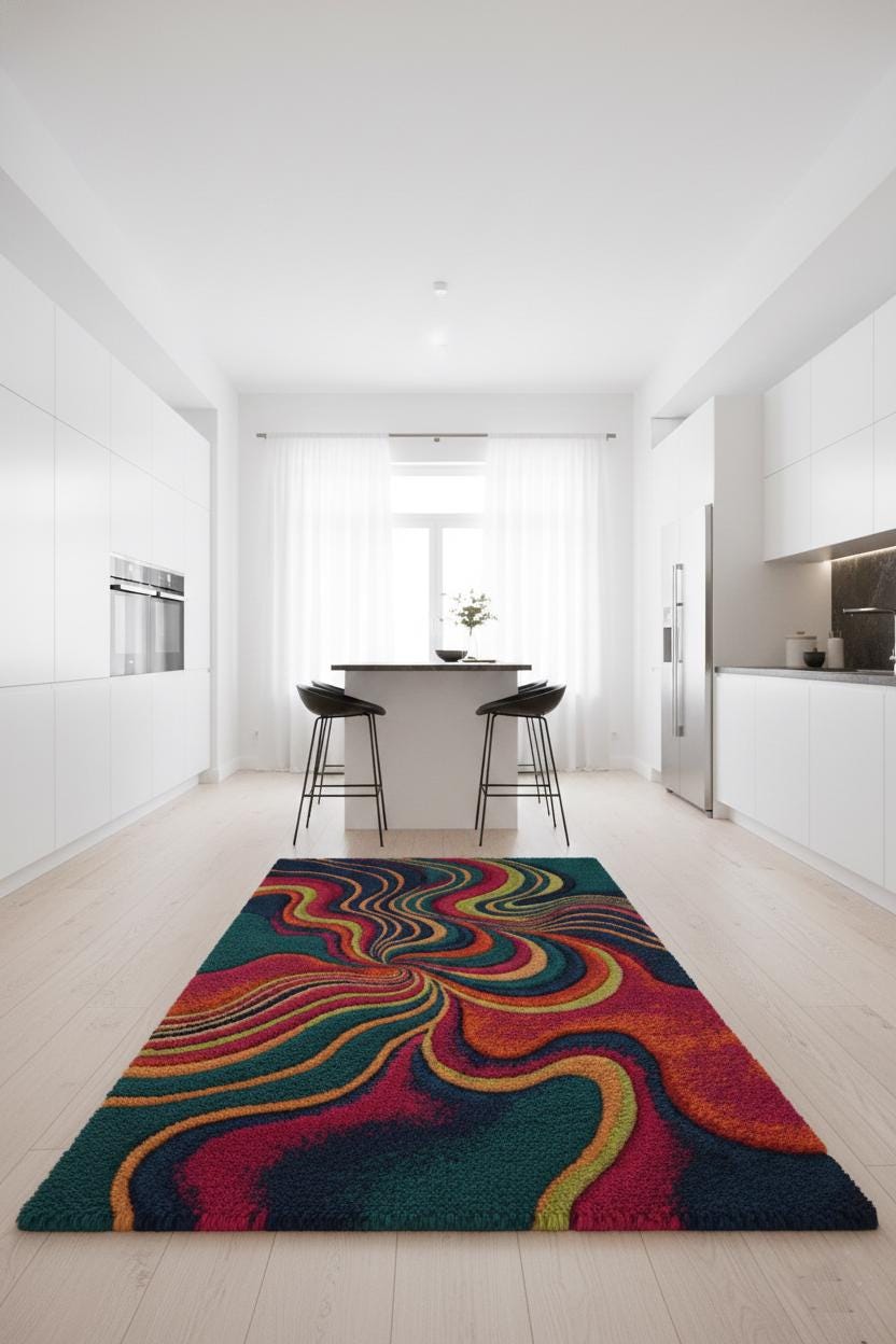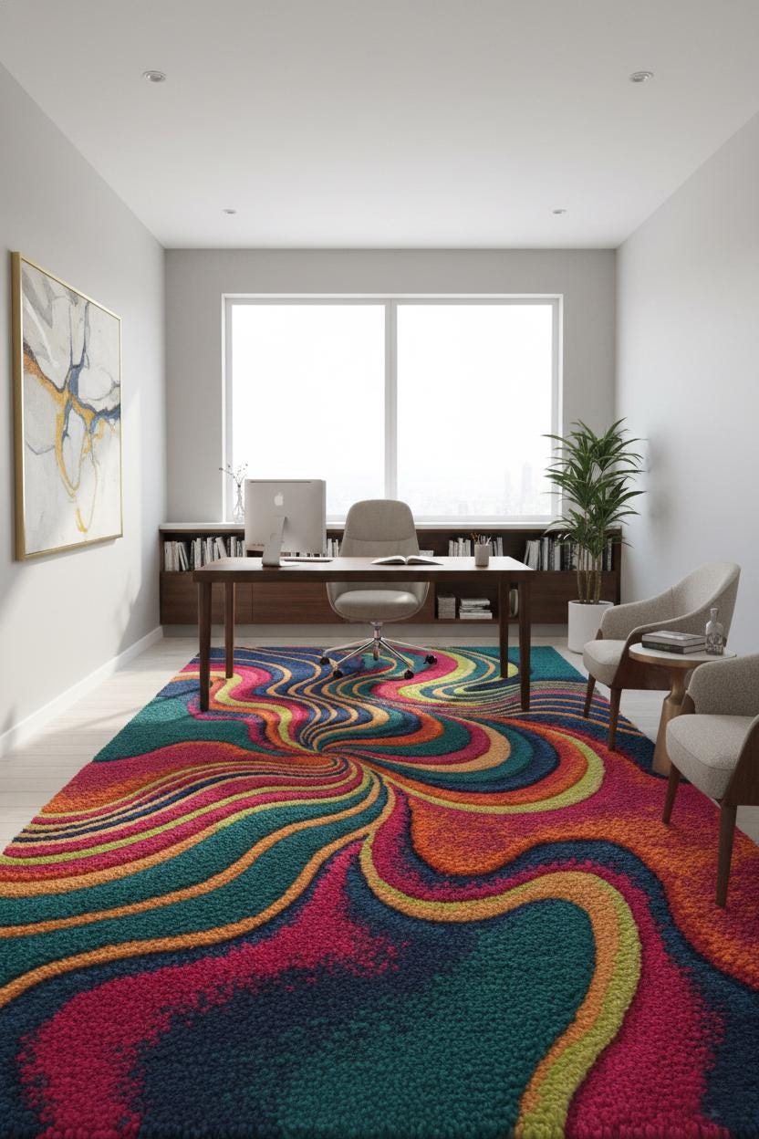Perfect for living rooms, bedrooms, offices, studios, and creative spaces, this rug blends modern design with cozy comfort. The textured surface offers a soft underfoot feel while the striking swirl pattern adds a gallery-style look to your home décor.