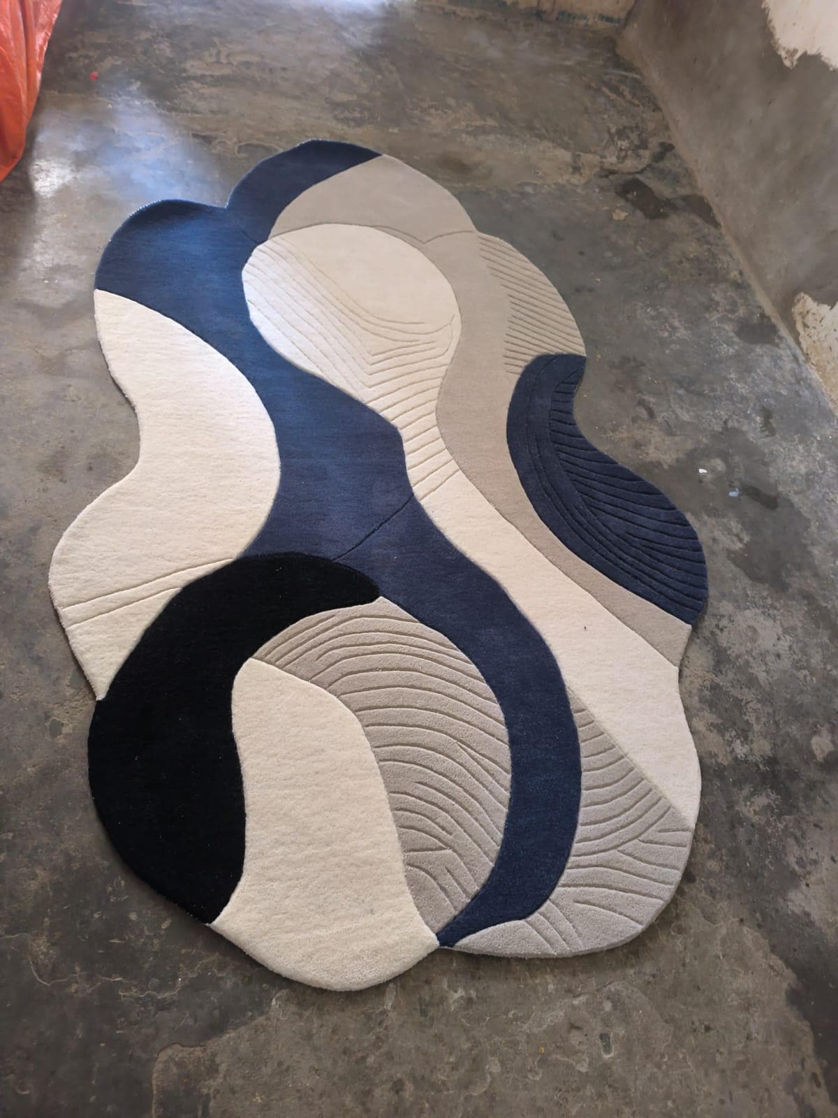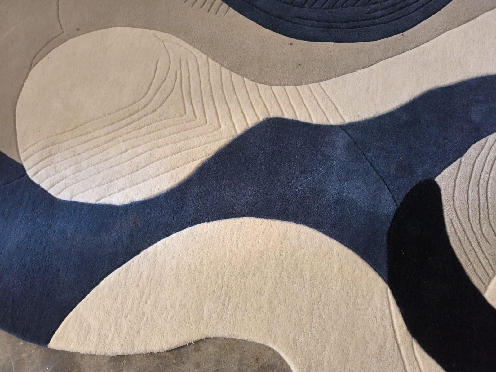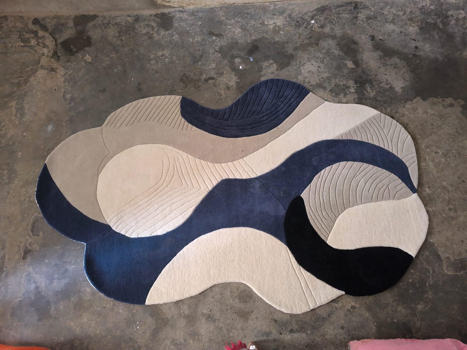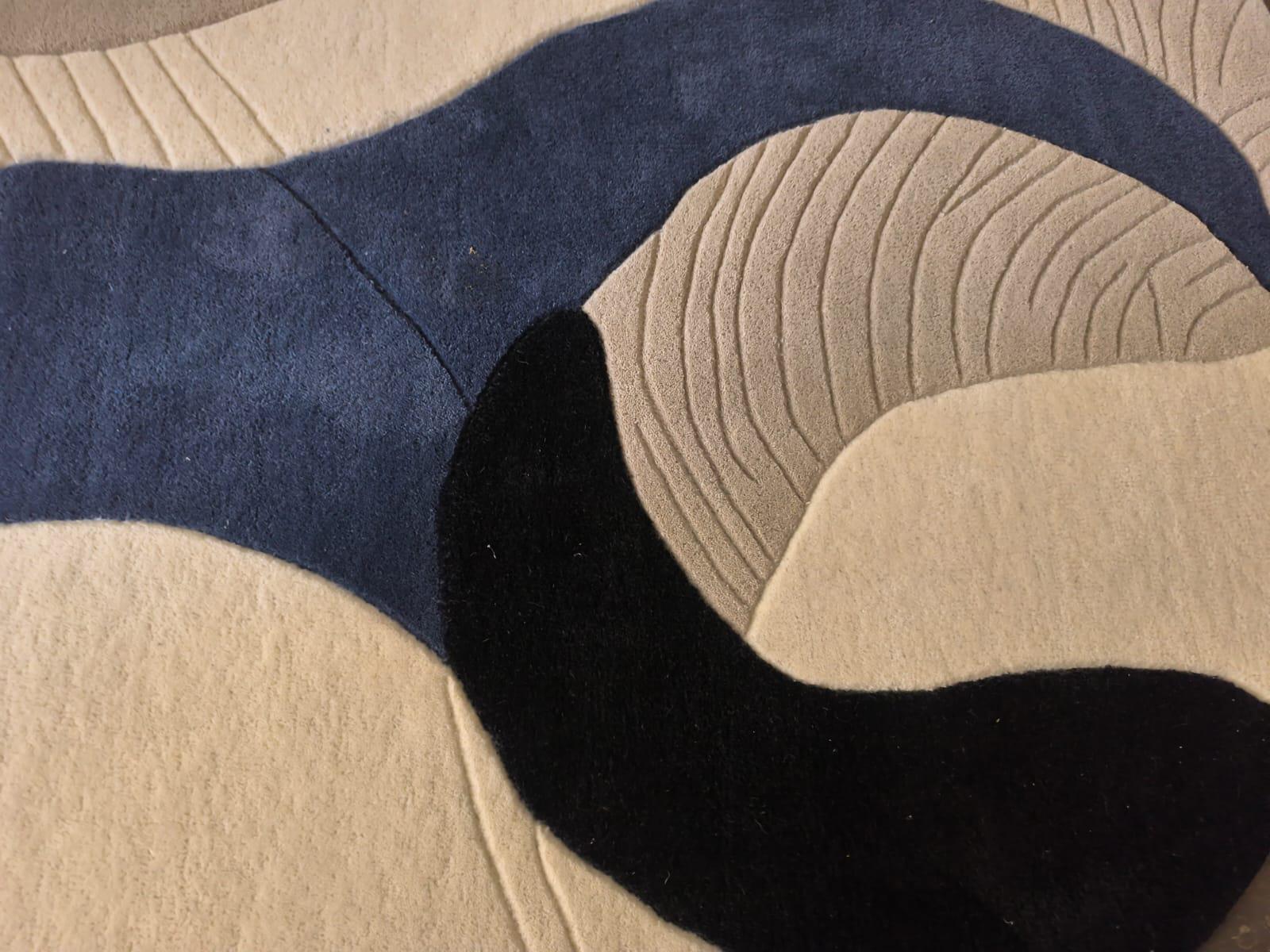 Upgrade your home with this modern abstract area rug, designed to bring a calm, stylish, and premium look to any space. Featuring a flowing wave pattern in navy blue and cream, this rug blends perfectly with contemporary, minimalist, and modern interiors.