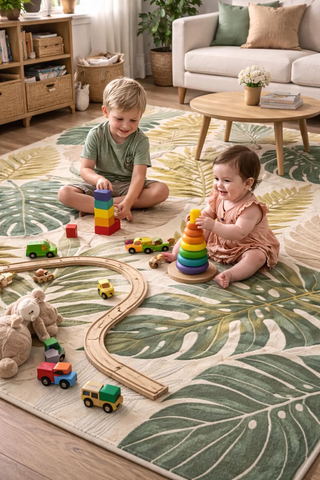 Hand Tufted Wool Area Rug | Tropical Leaf Botanical Design