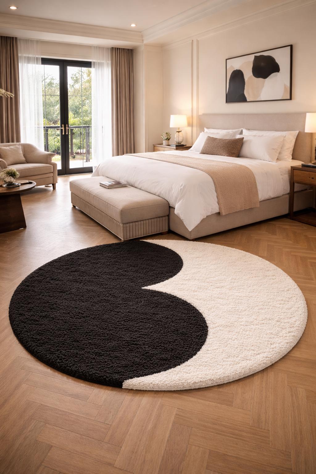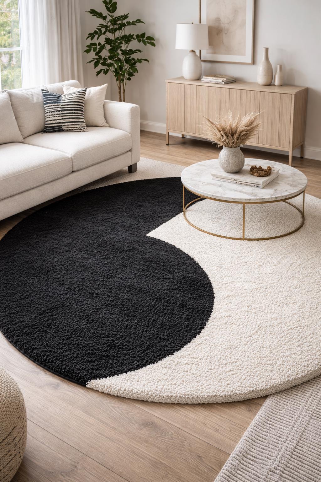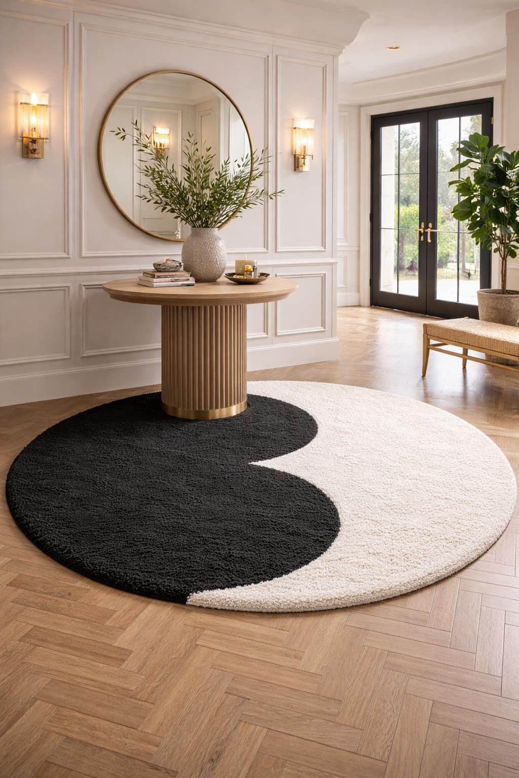 Handmade Yin Yang Wool Rug | Modern Black & White Carpet