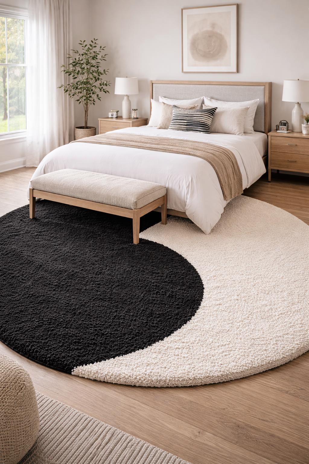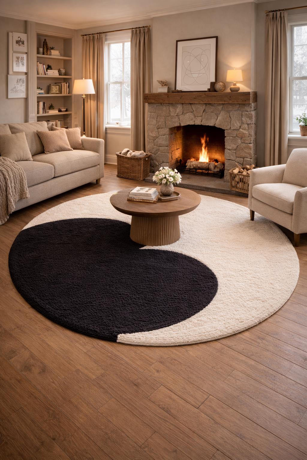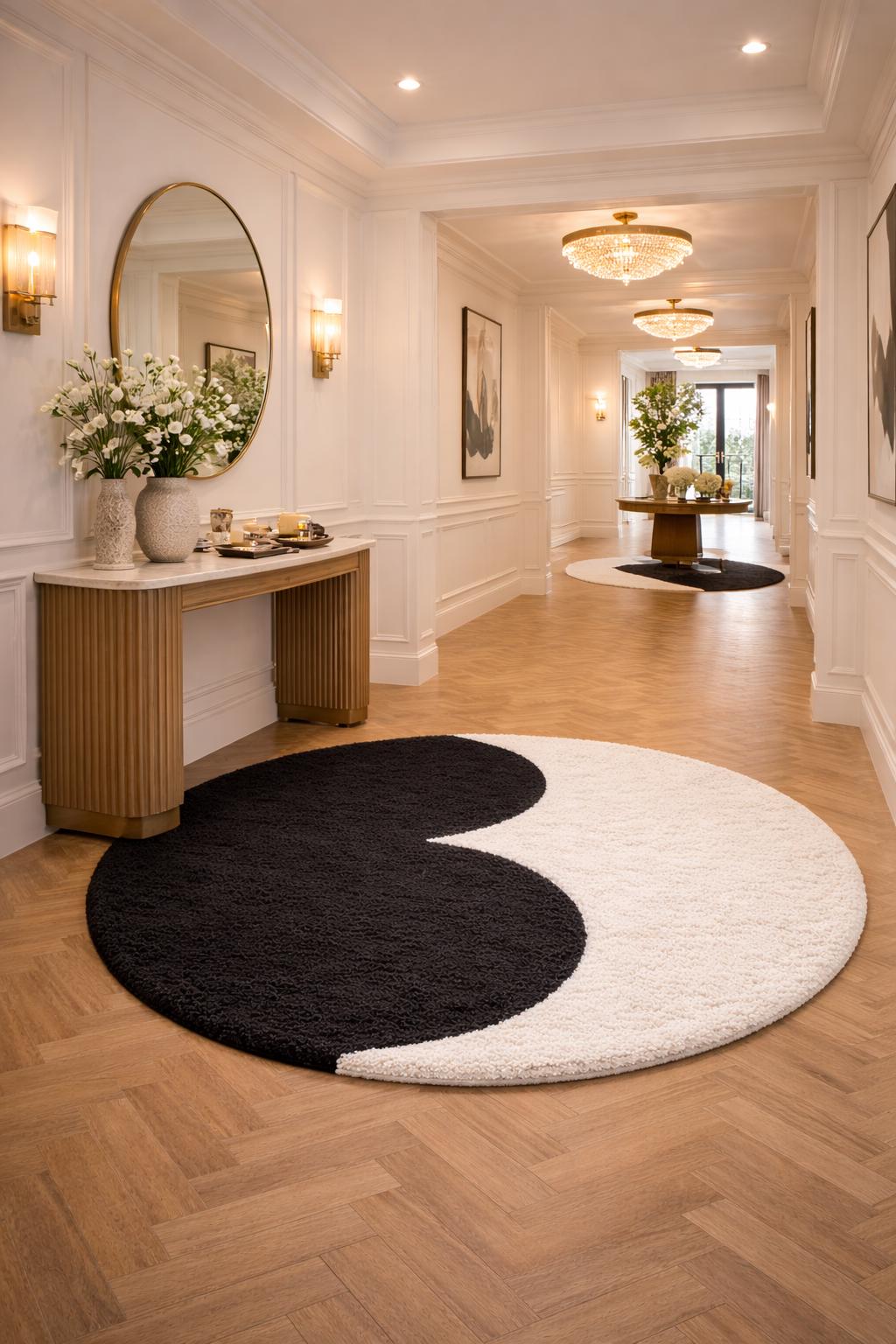 Handmade Yin Yang Wool Rug | Modern Black & White Carpet