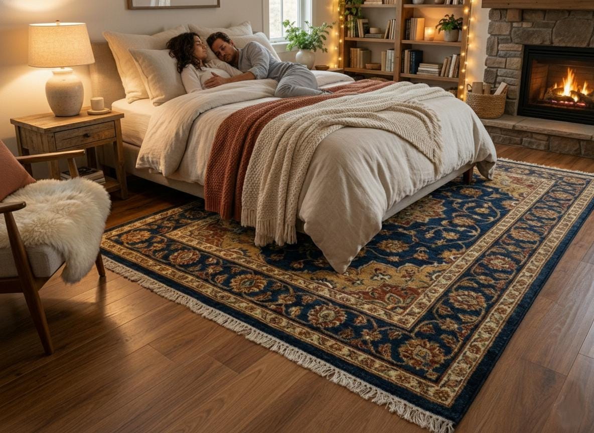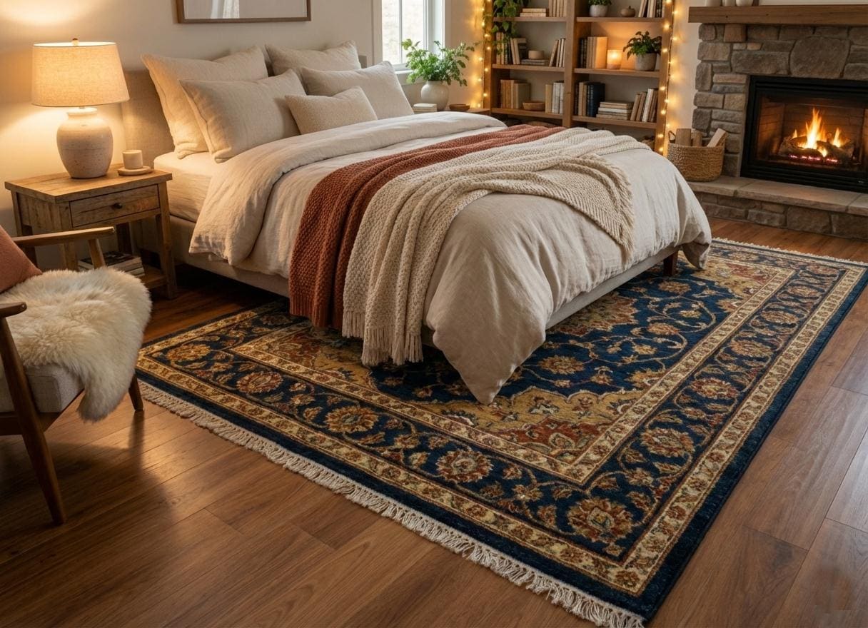 Whether placed under a bed, in a sitting area, or as a statement piece in your living room, this rug elevates the space with warmth, comfort, and sophistication.