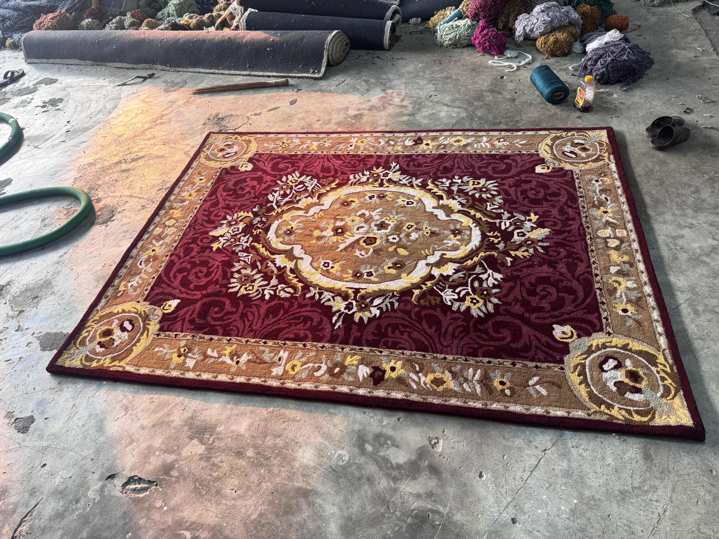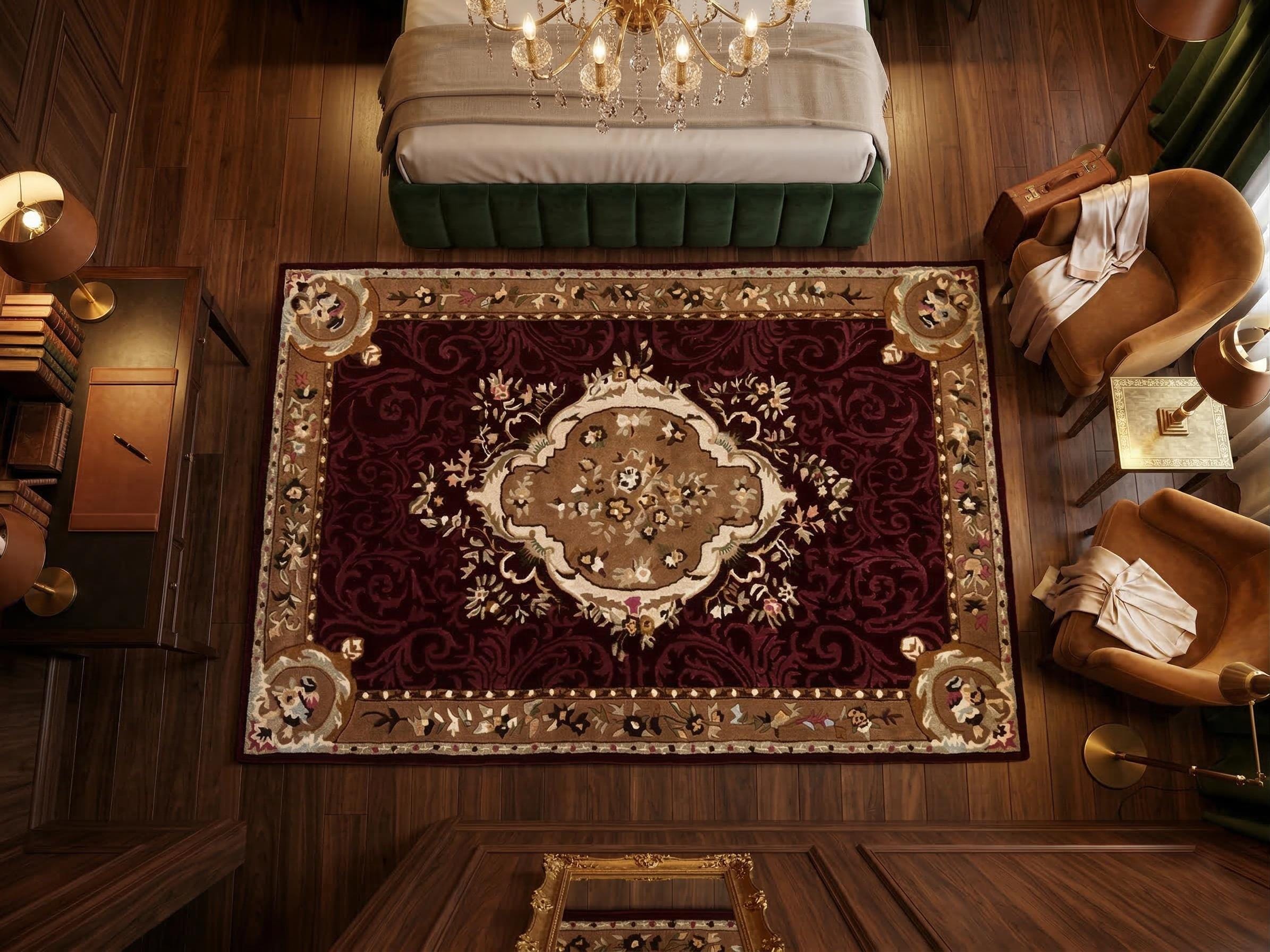Hand Tufted Wool Aubusson Rug | Classic Floral Design