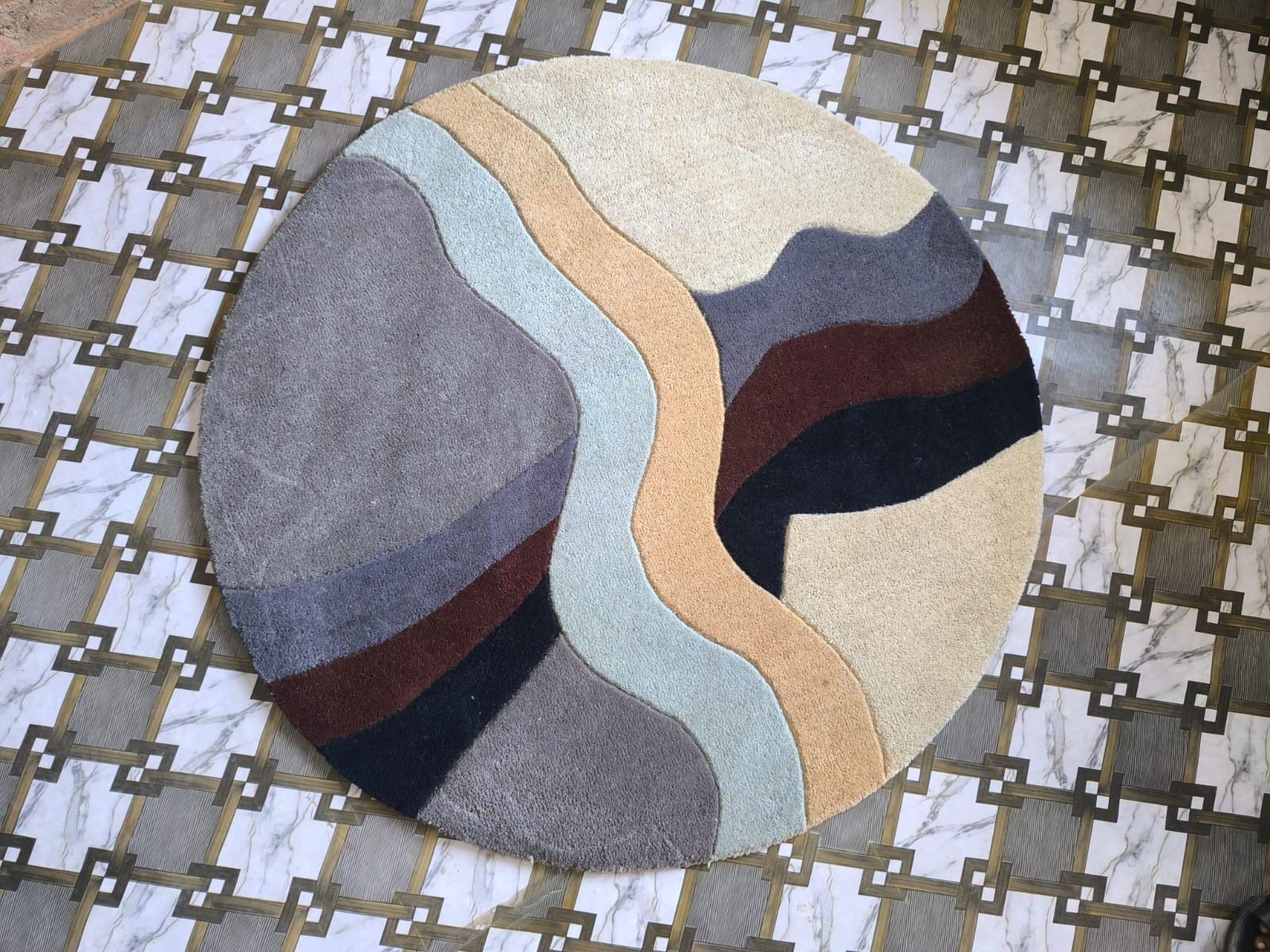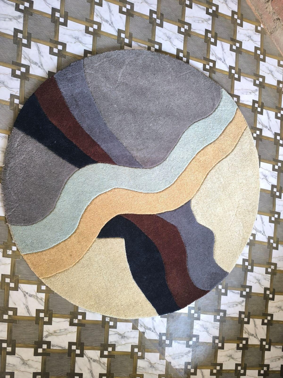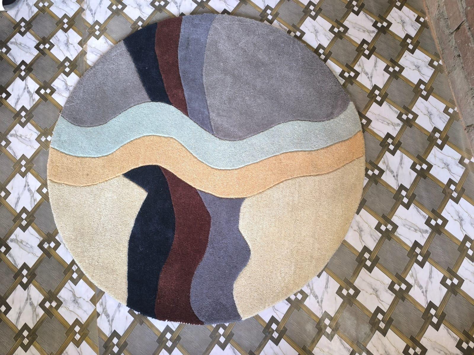 Hand Tufted Wool Blend Round Rug – Modern Abstract Design