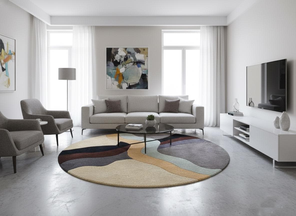 The circular shape creates a balanced, harmonious look under coffee tables, accent chairs, or center seating areas. Its artistic pattern complements neutral furniture while adding personality and depth to your décor.