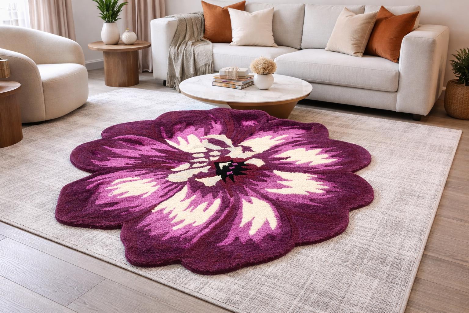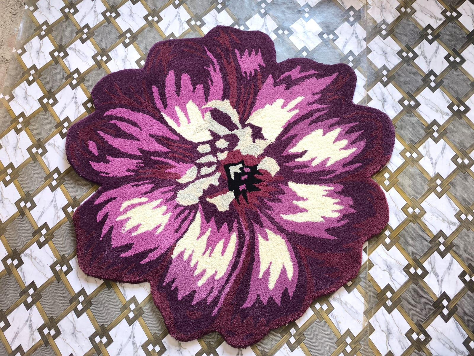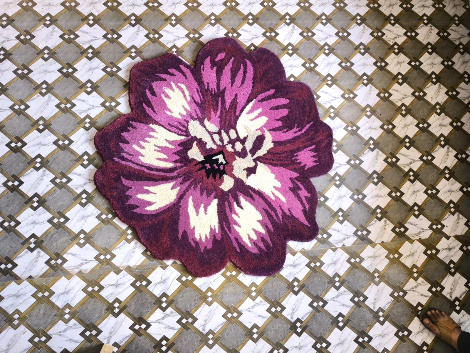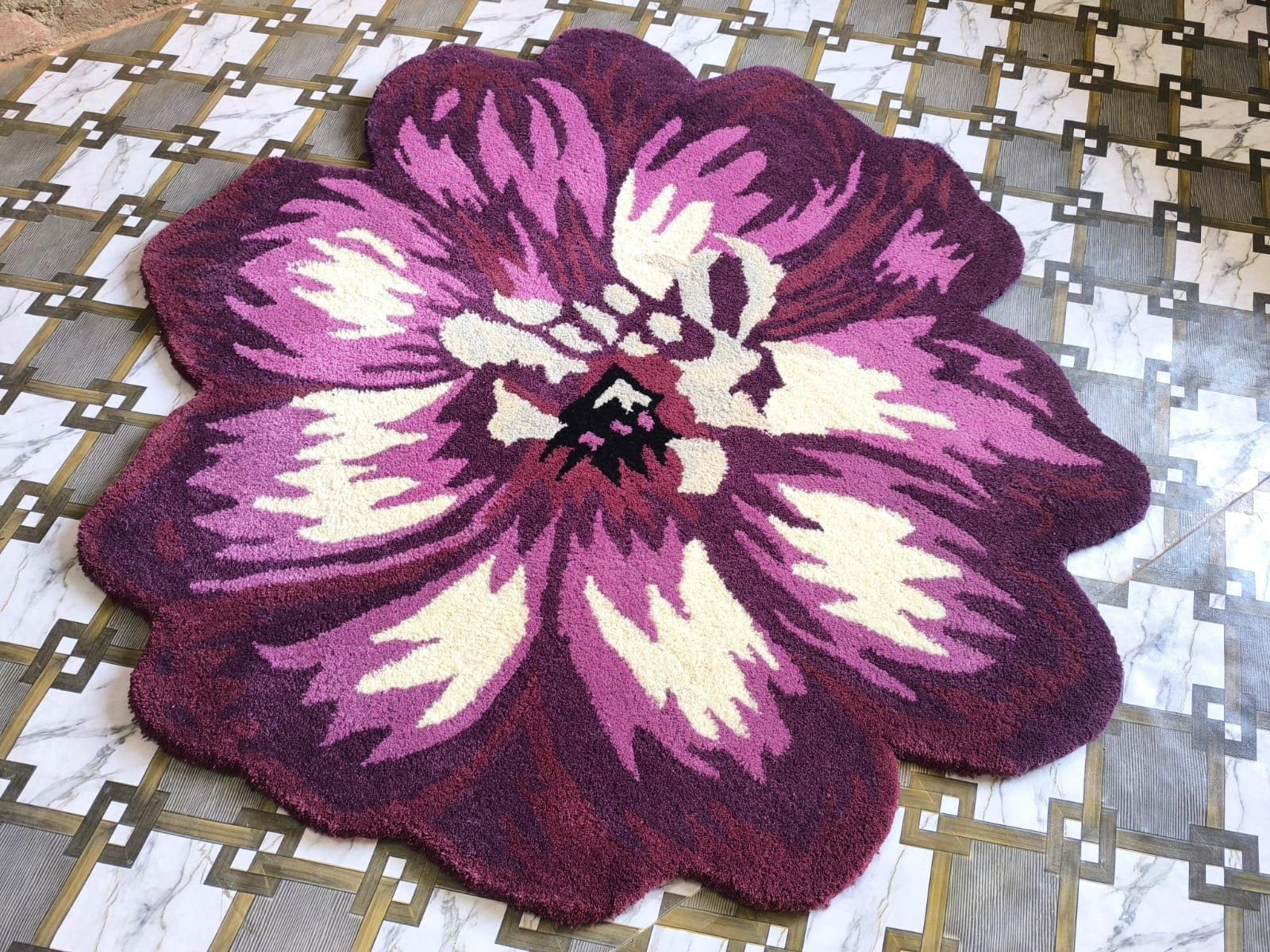 Add a bold and artistic statement to your space with this Hand Tufted Flower Shaped Area Rug. Designed in rich shades of purple, magenta, and cream, this eye-catching floral rug instantly transforms any room into a stylish and cozy retreat.