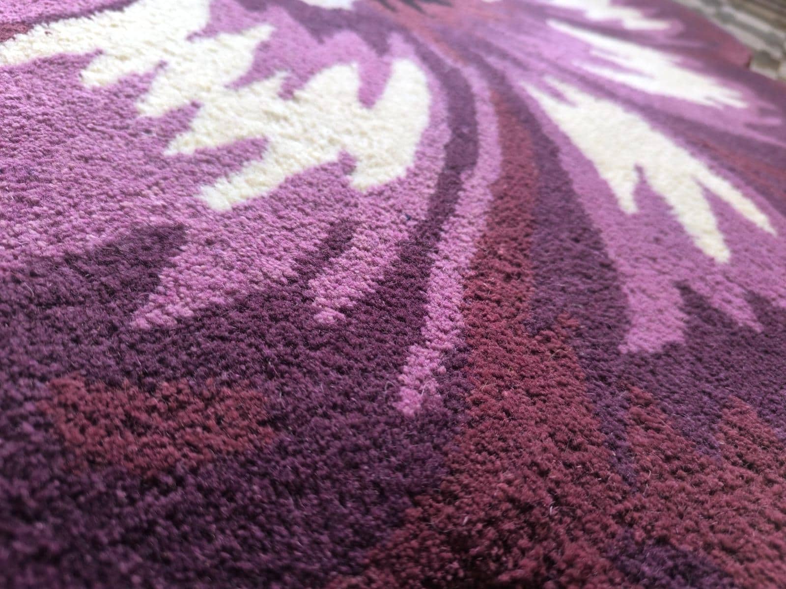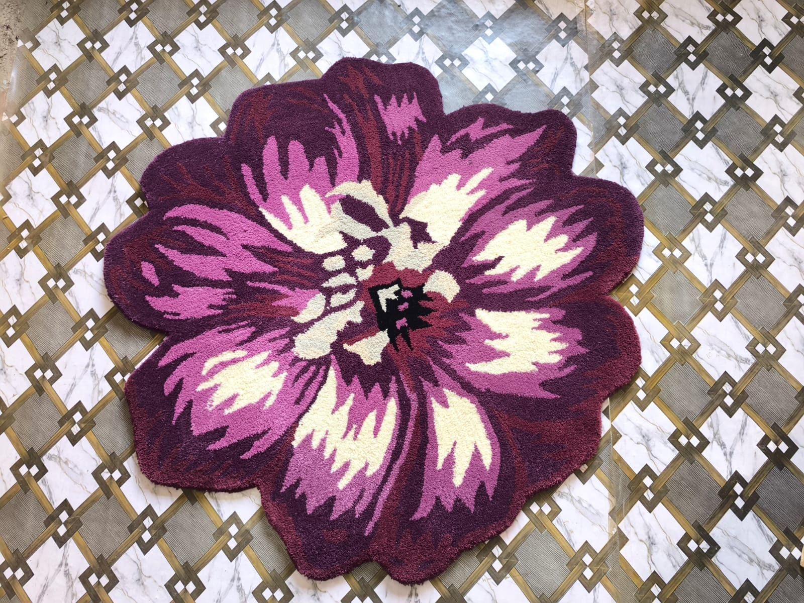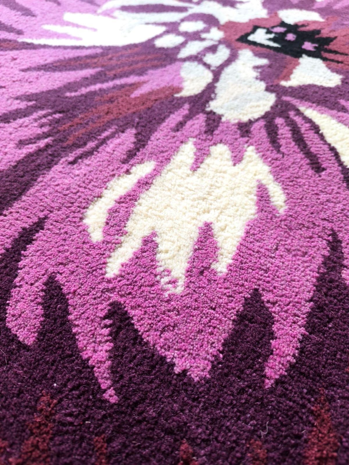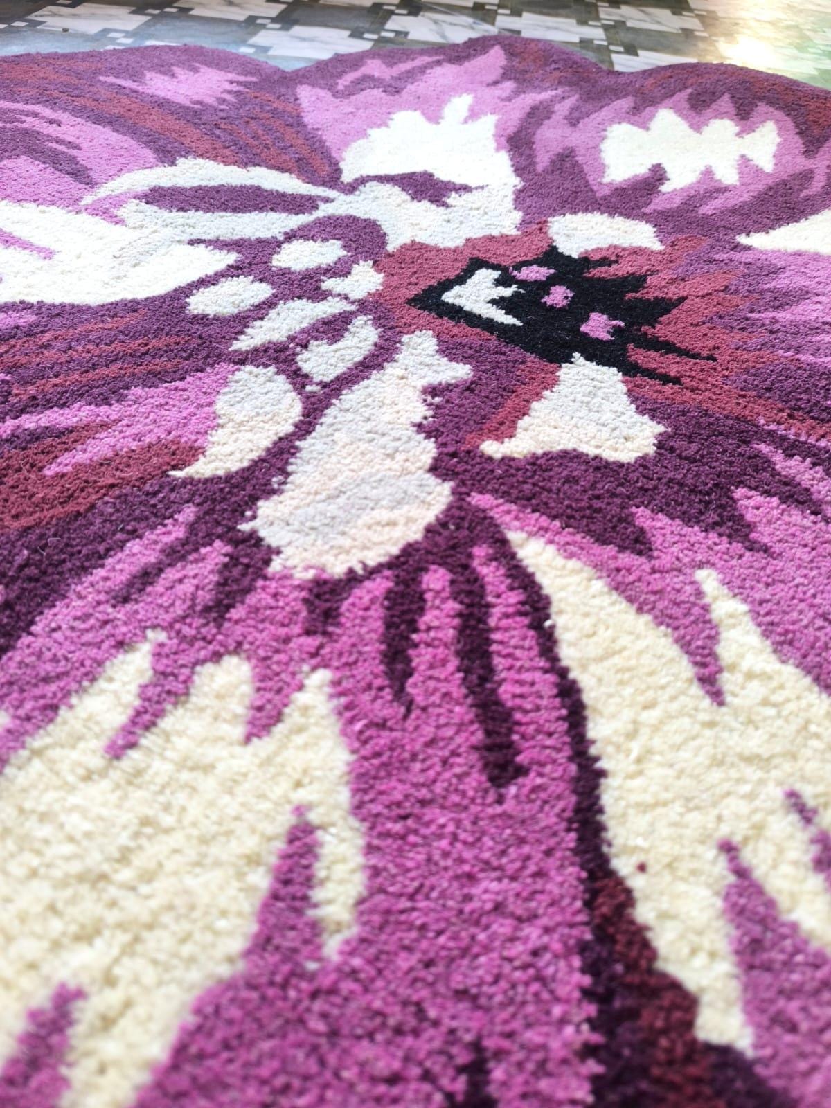 Add a bold and artistic statement to your space with this Hand Tufted Flower Shaped Area Rug. Designed in rich shades of purple, magenta, and cream, this eye-catching floral rug instantly transforms any room into a stylish and cozy retreat.