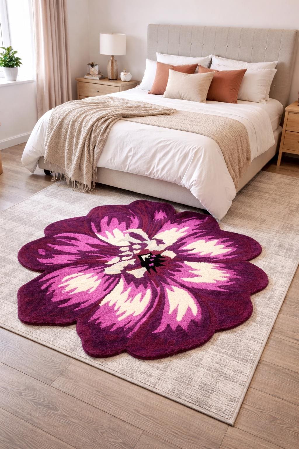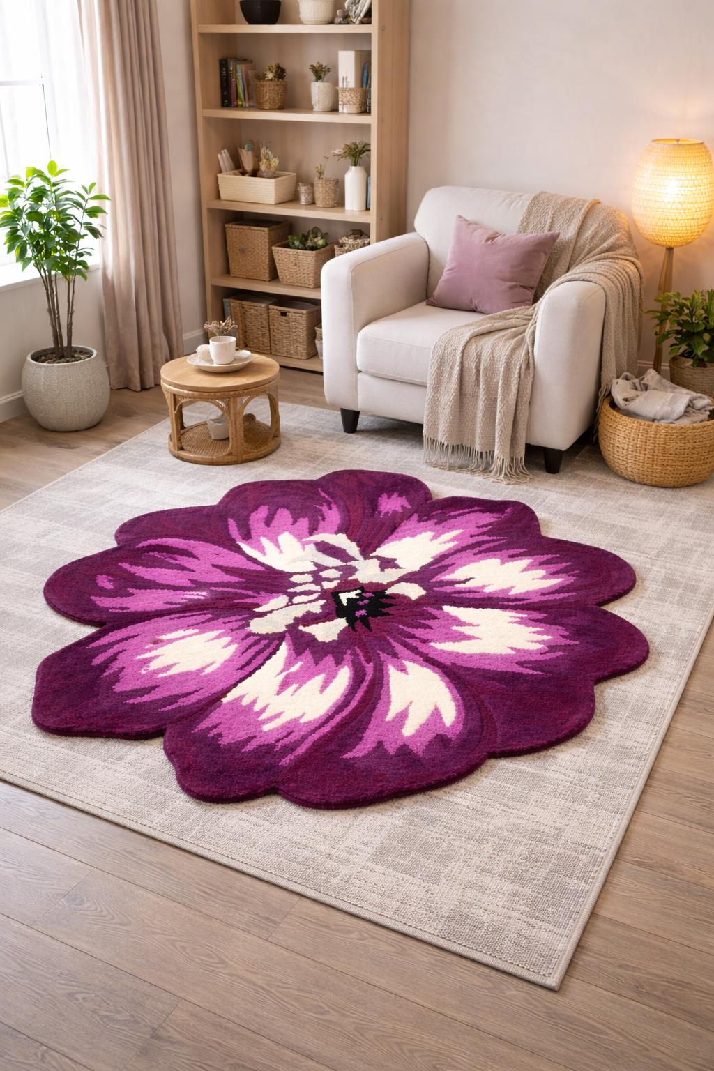 Perfect for bedrooms, living rooms, reading corners, nurseries, or modern apartments, this unique flower design creates a soft, luxurious feel underfoot while adding vibrant character to your décor.