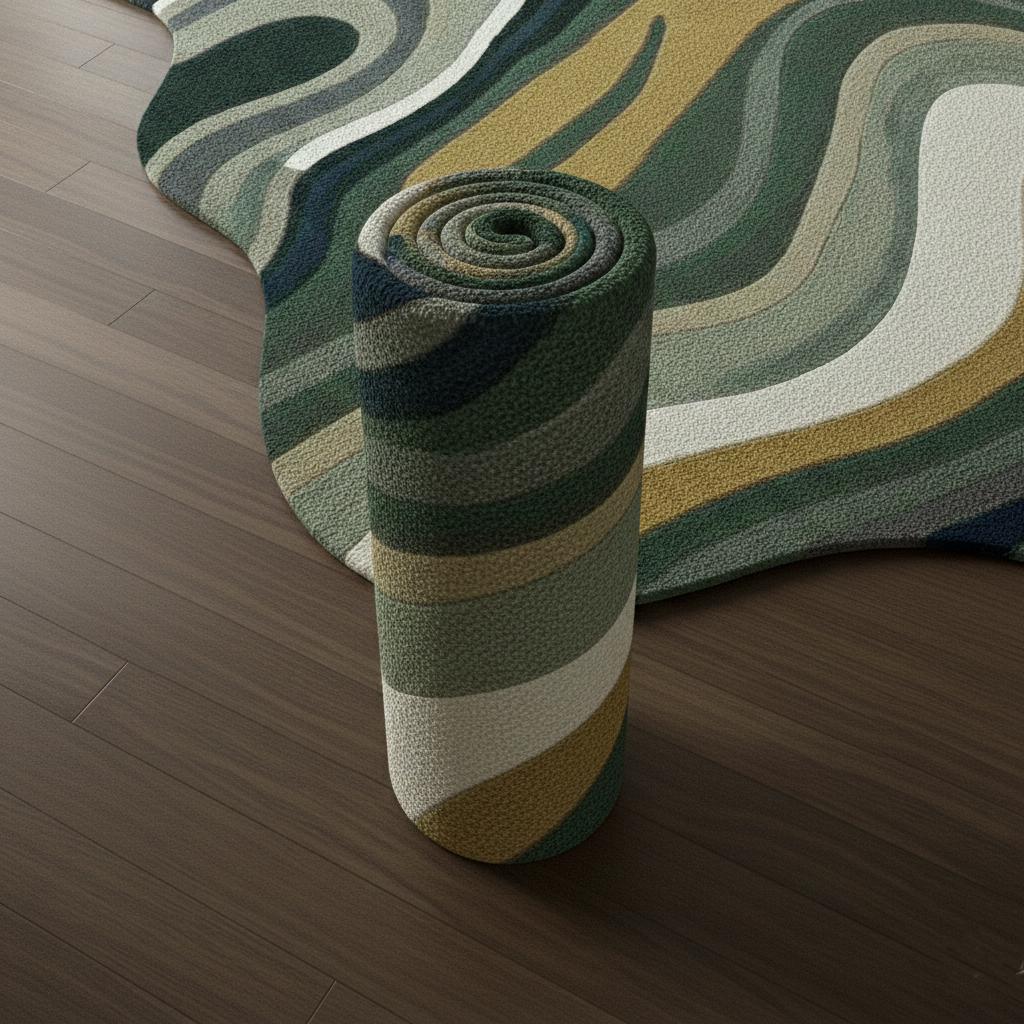 Expertly crafted from premium wool, this rug is soft underfoot, durable, and perfect for everyday living. The flowing layered pattern creates a calming yet bold visual statement, making it an ideal centerpiece for modern living rooms, studios, and luxury spaces.