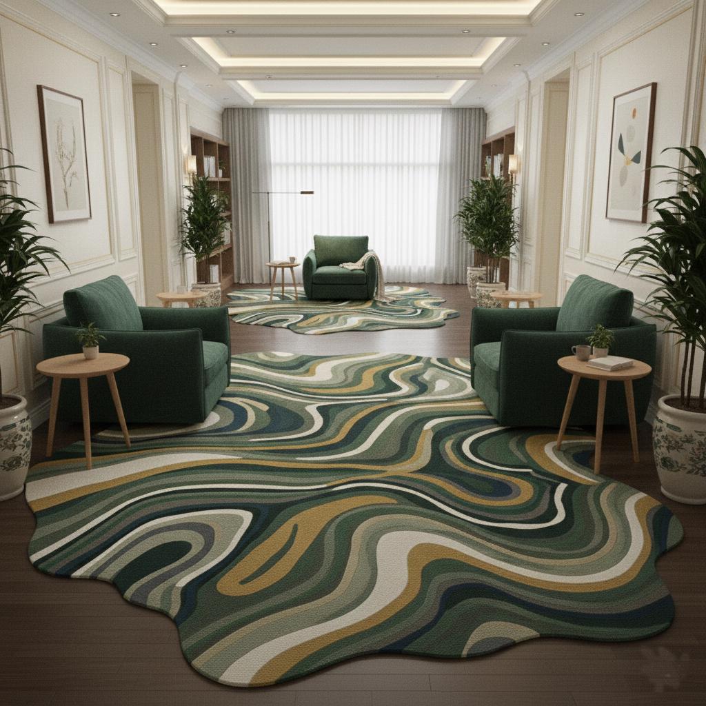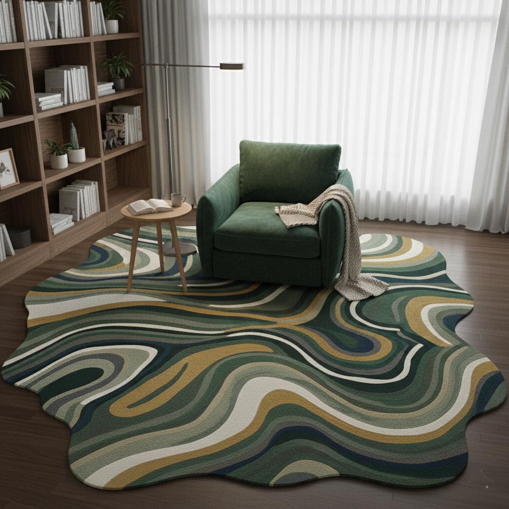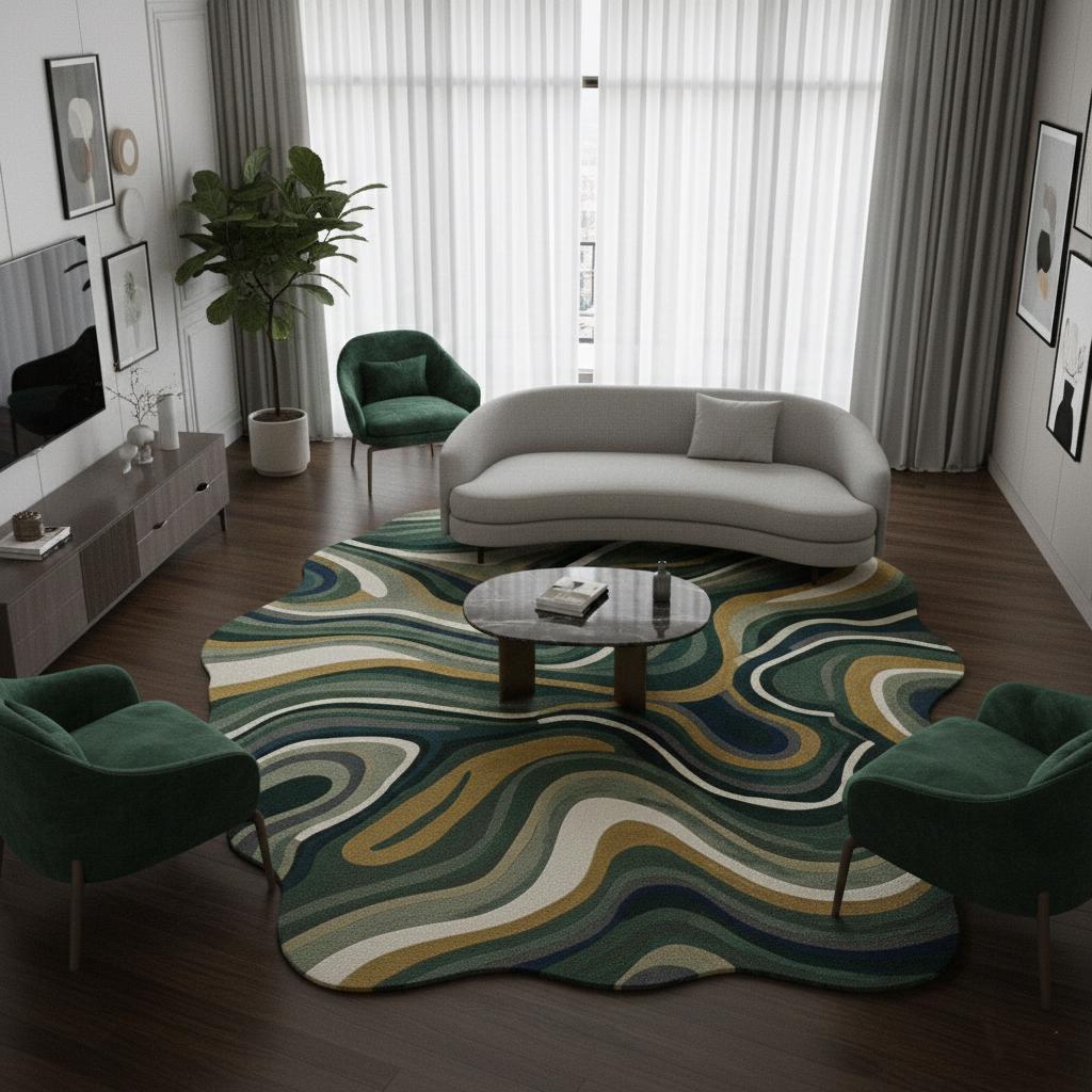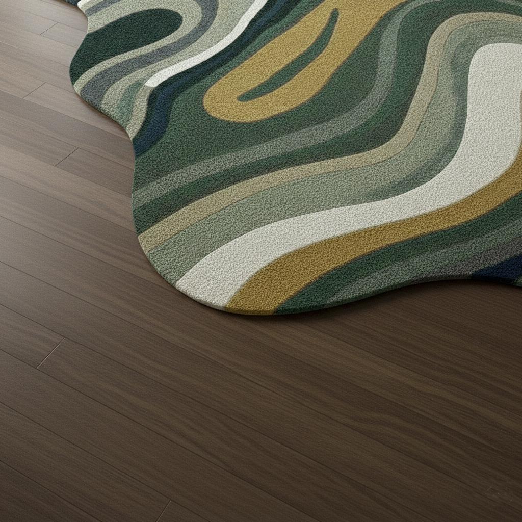 Hand-Tufted Wool Rug, Abstract Green Irregular Shape, Modern Carpet