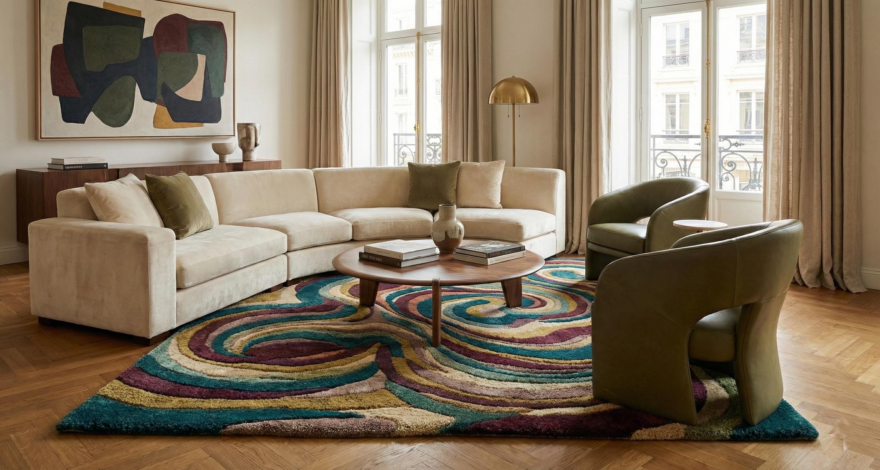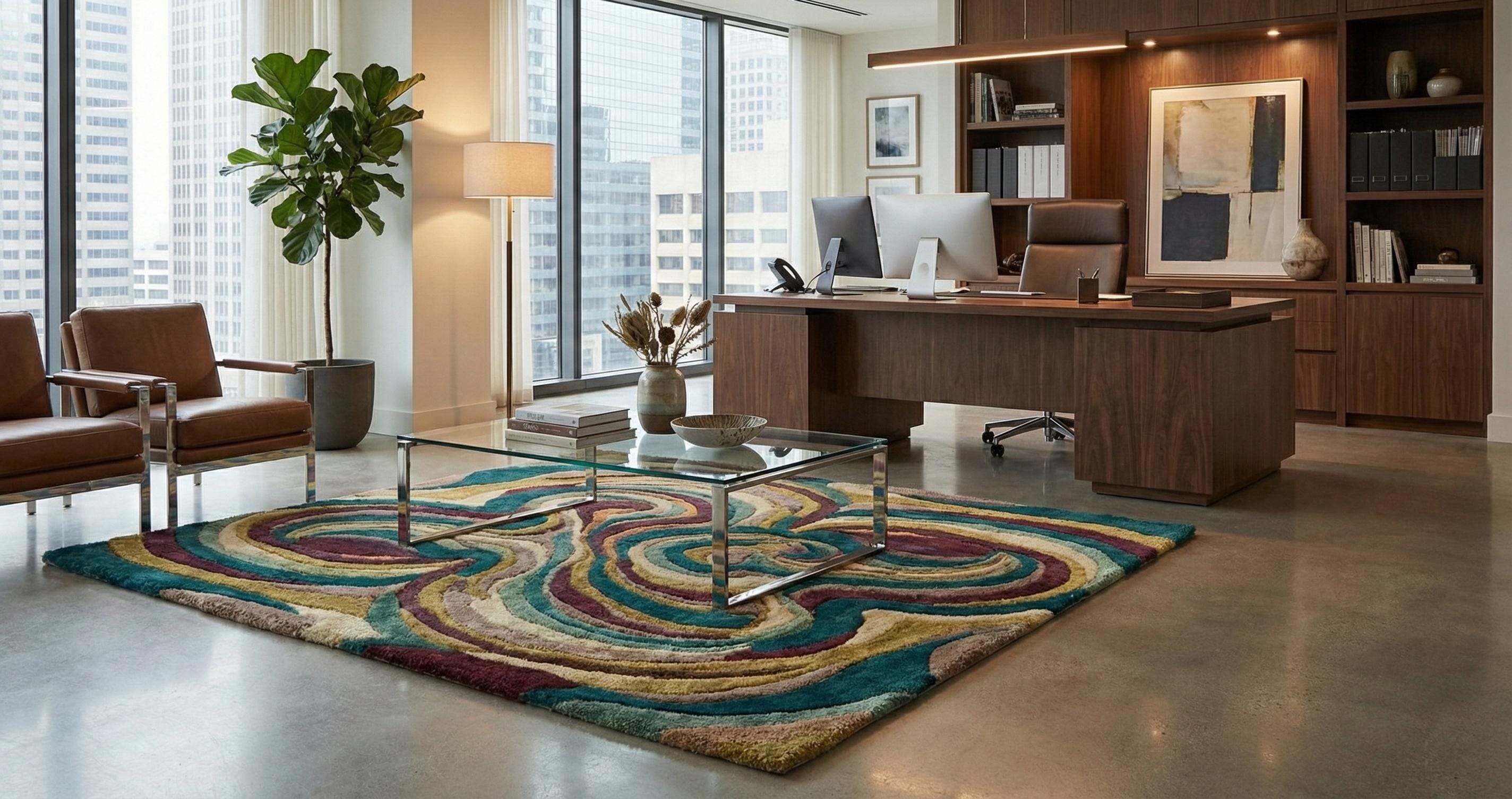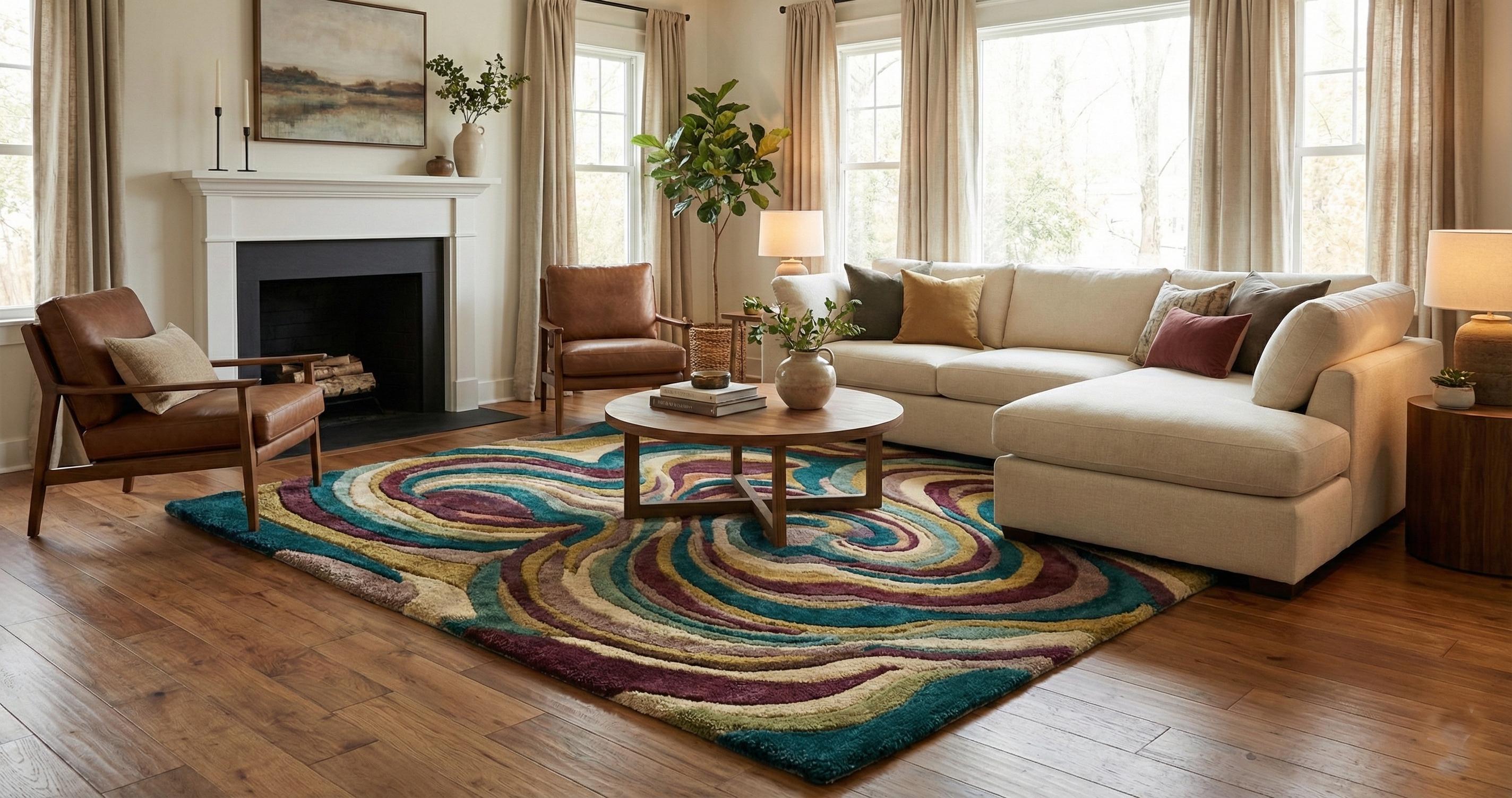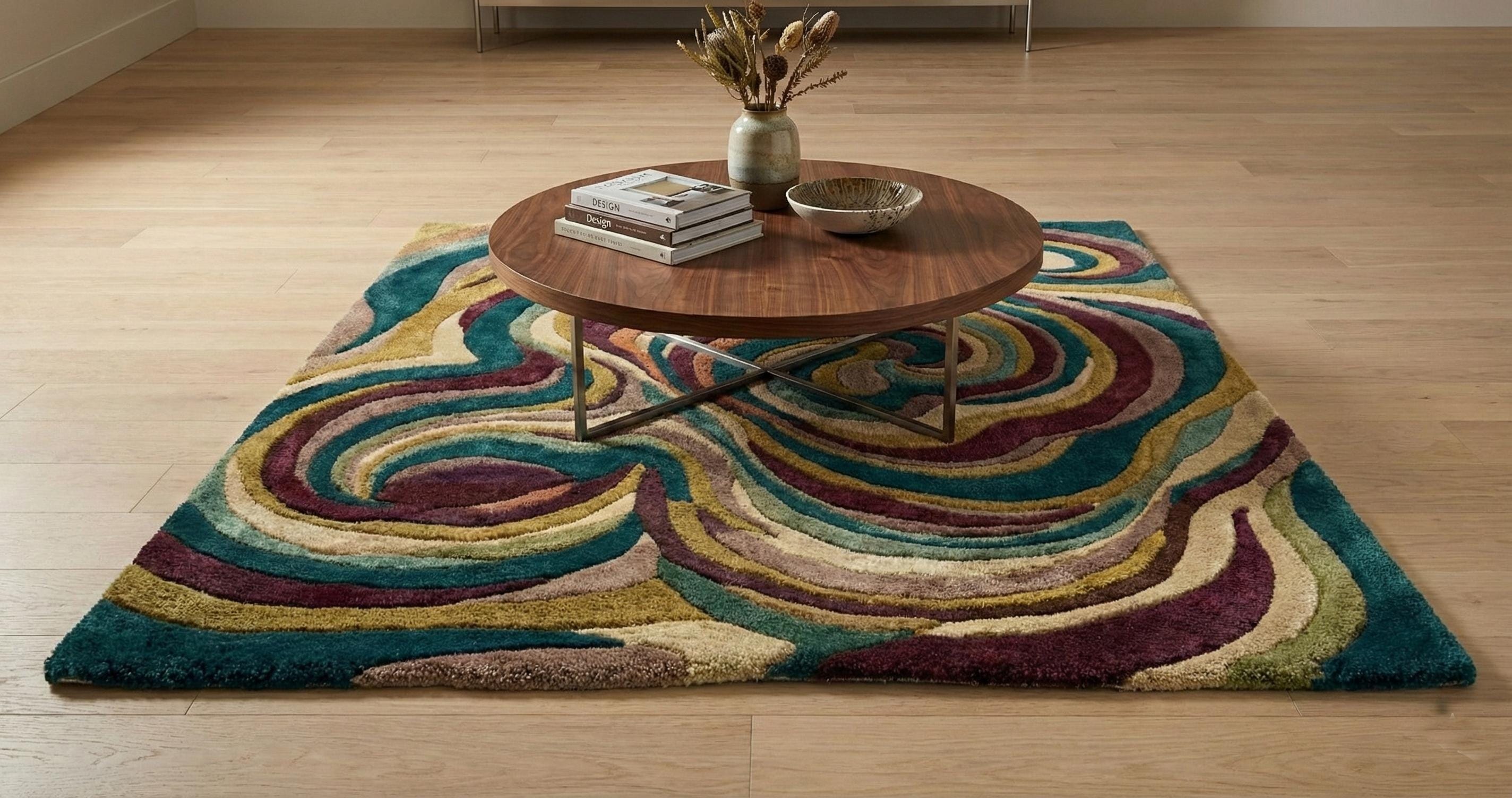 Hand Tufted Wool Rug – Abstract Swirl Design, Plush Floor Decor