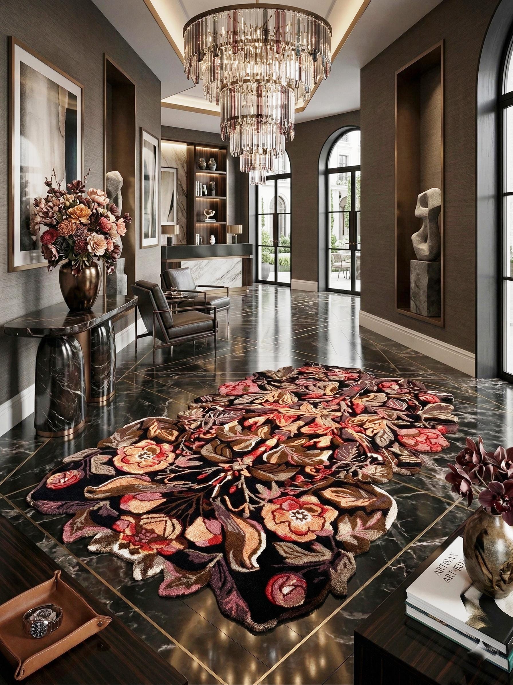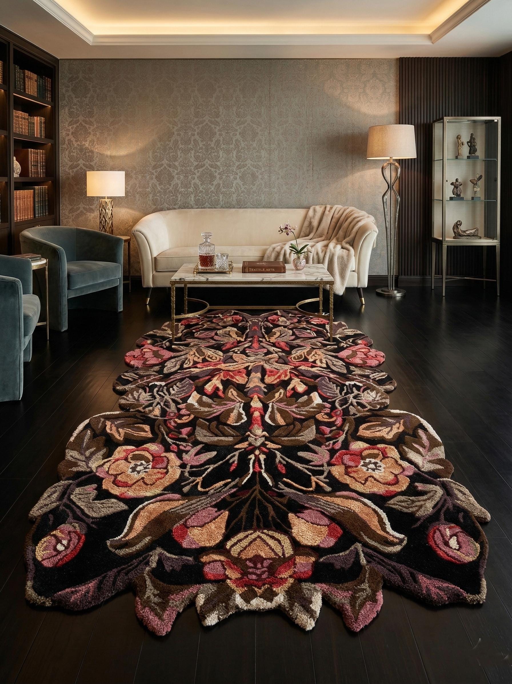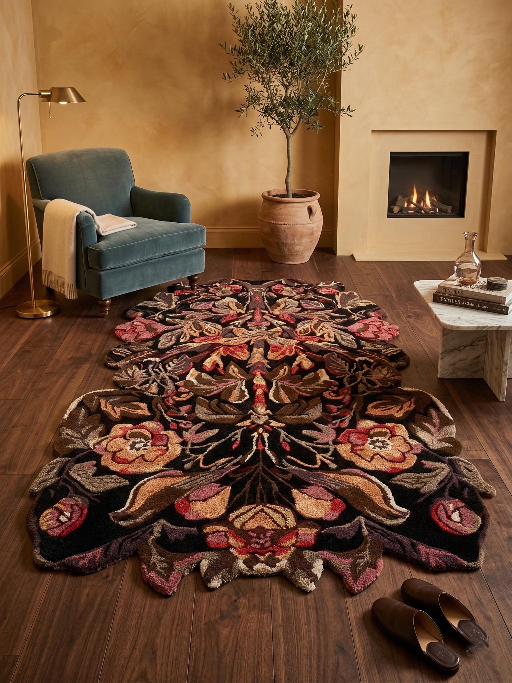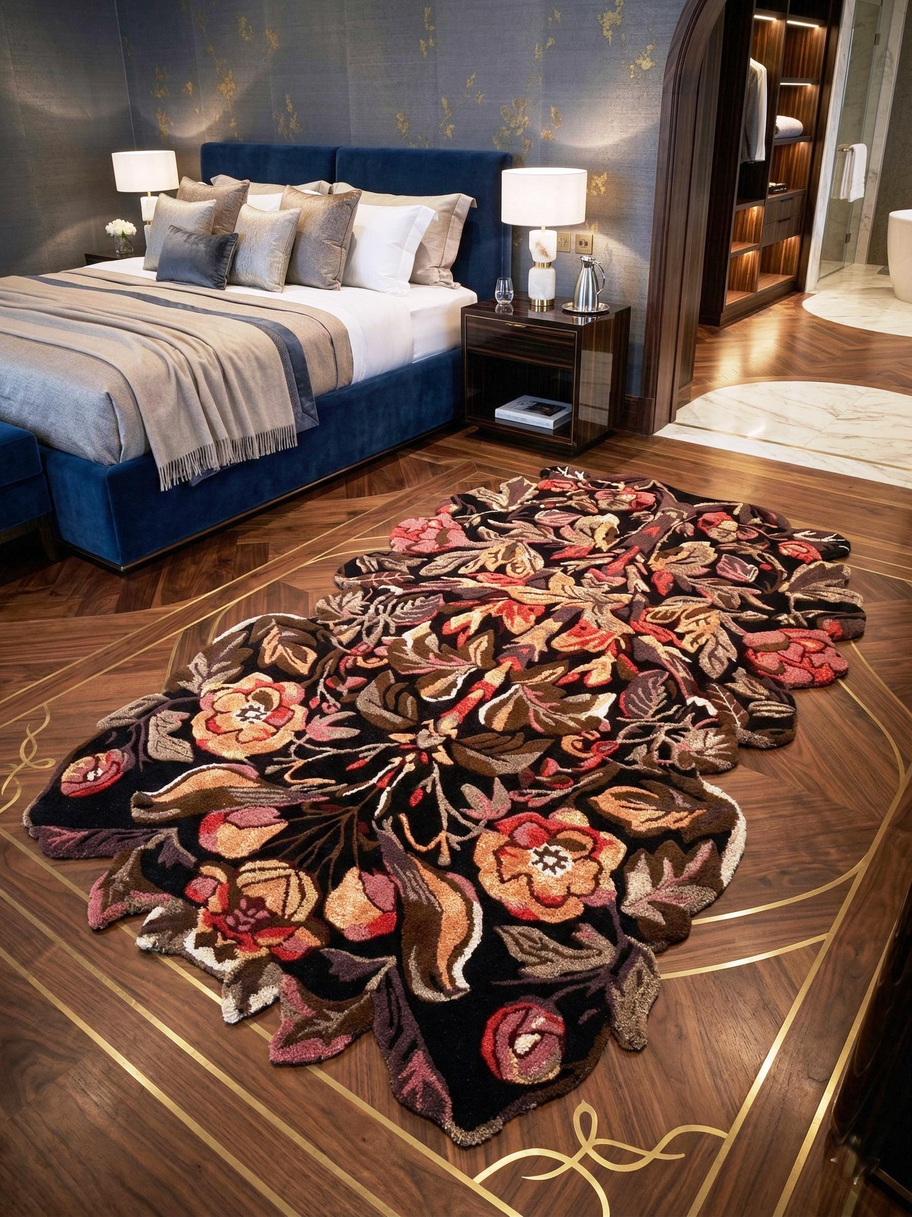 Bring elegance and artistic character into your home with this luxury irregular floral hand-tufted wool rug. Designed as a statement piece, this rug features rich botanical patterns and a dramatic organic shape that instantly transforms any interior into a sophisticated space.