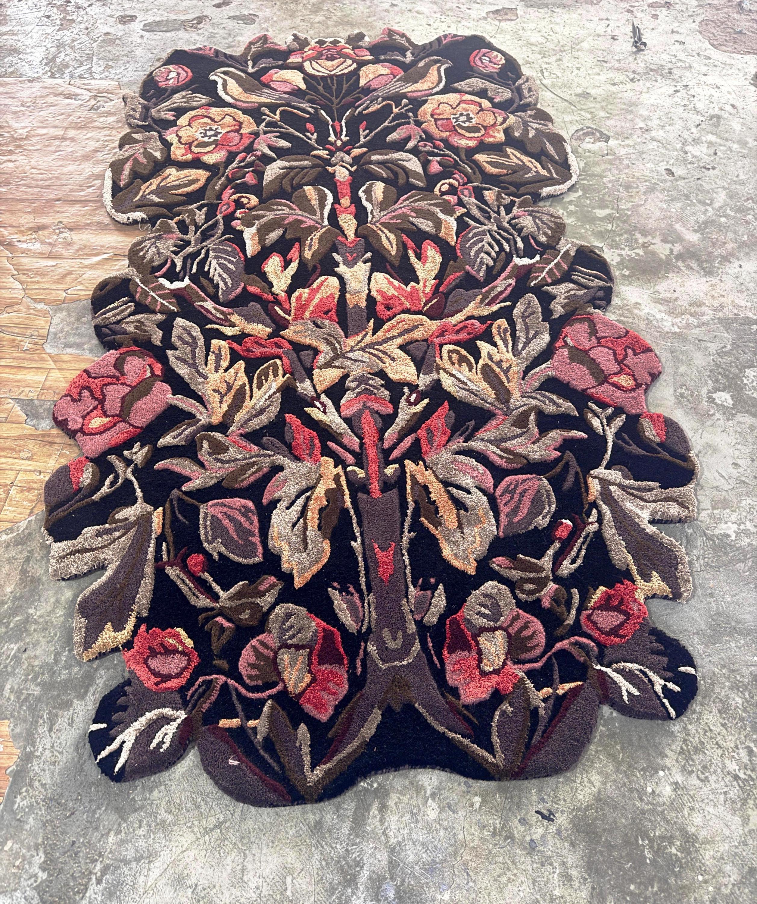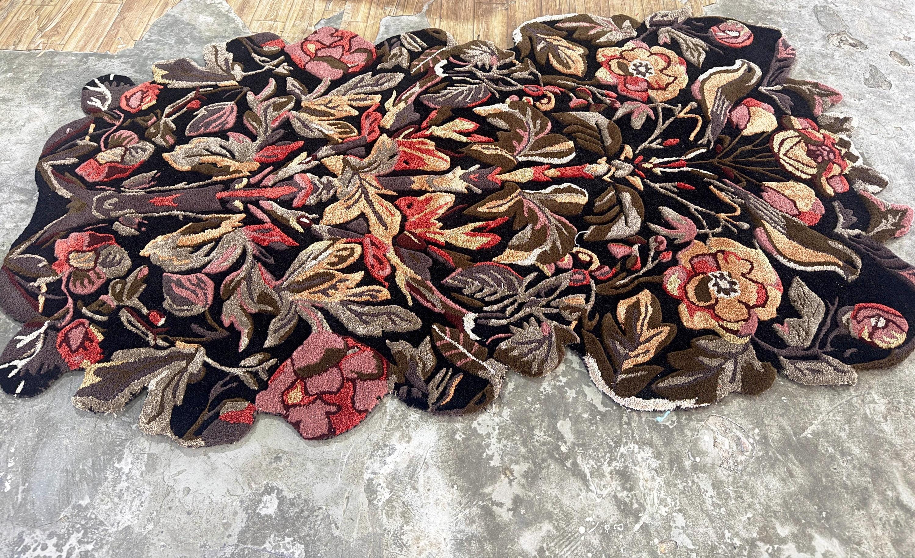 Hand Tufted Wool Floral Rug, Irregular Designer Statement Carpet
