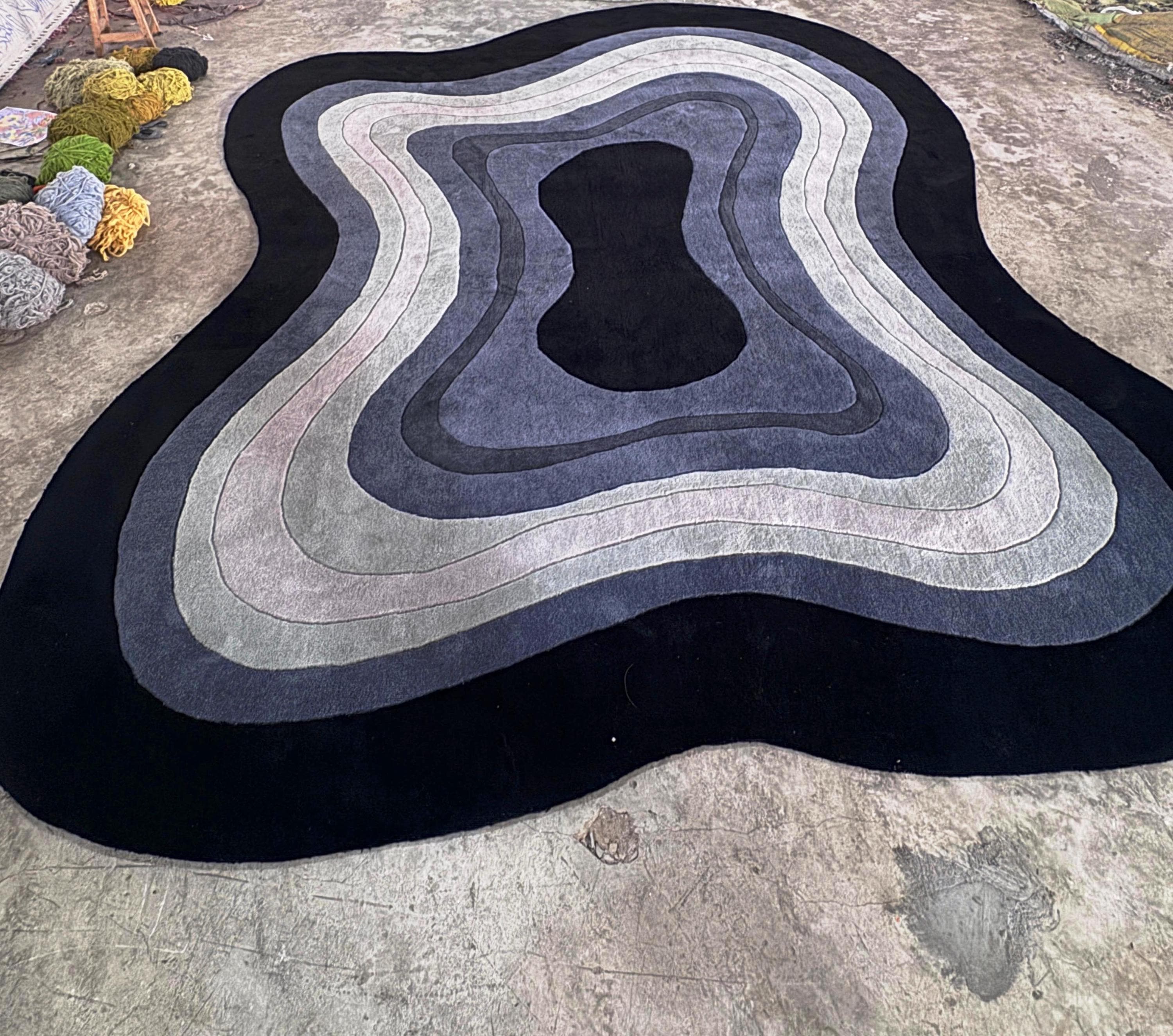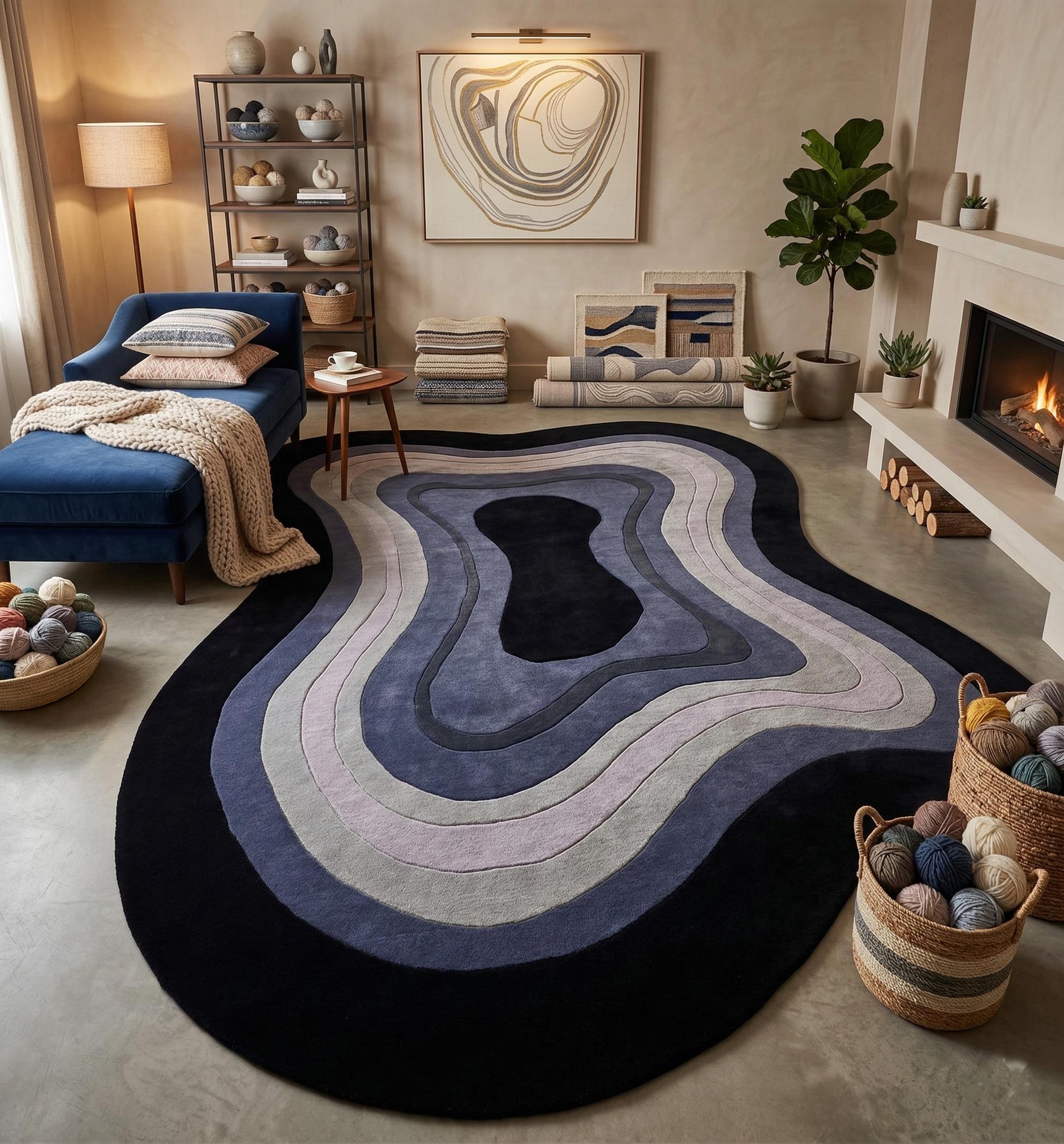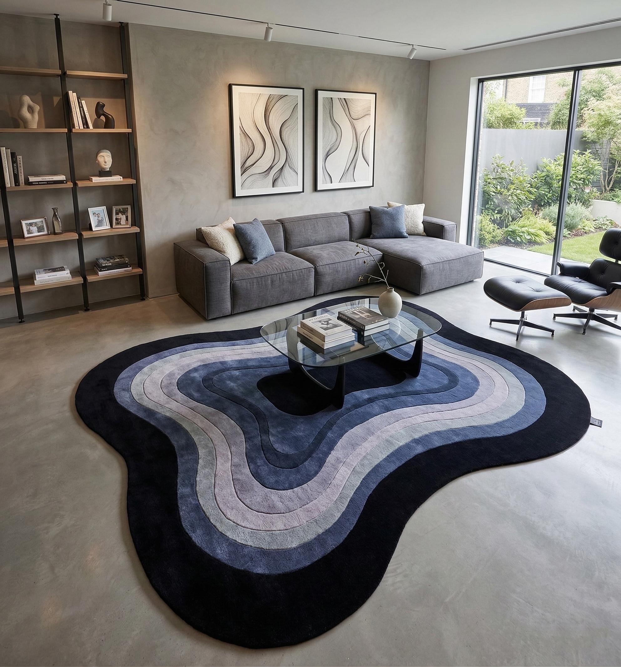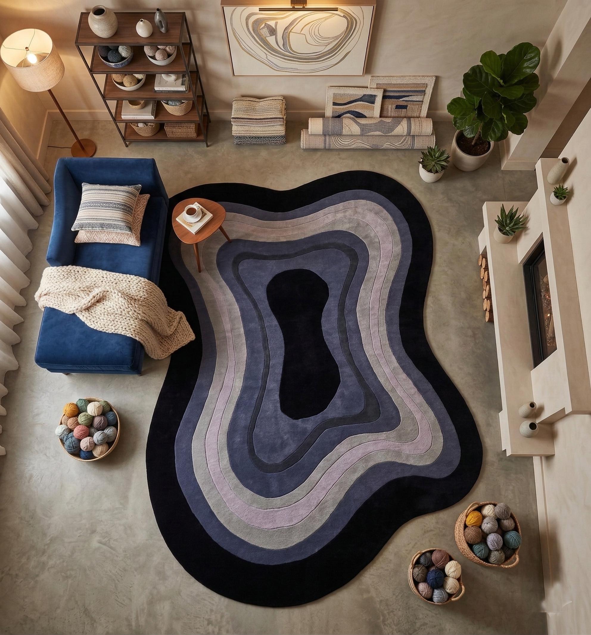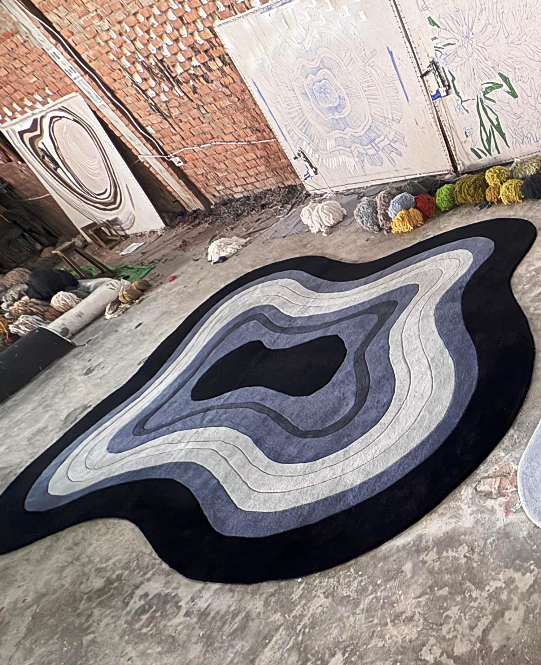 ✨ Luxury Abstract Blue Irregular Rug – Hand Tufted Wool Designer Carpet