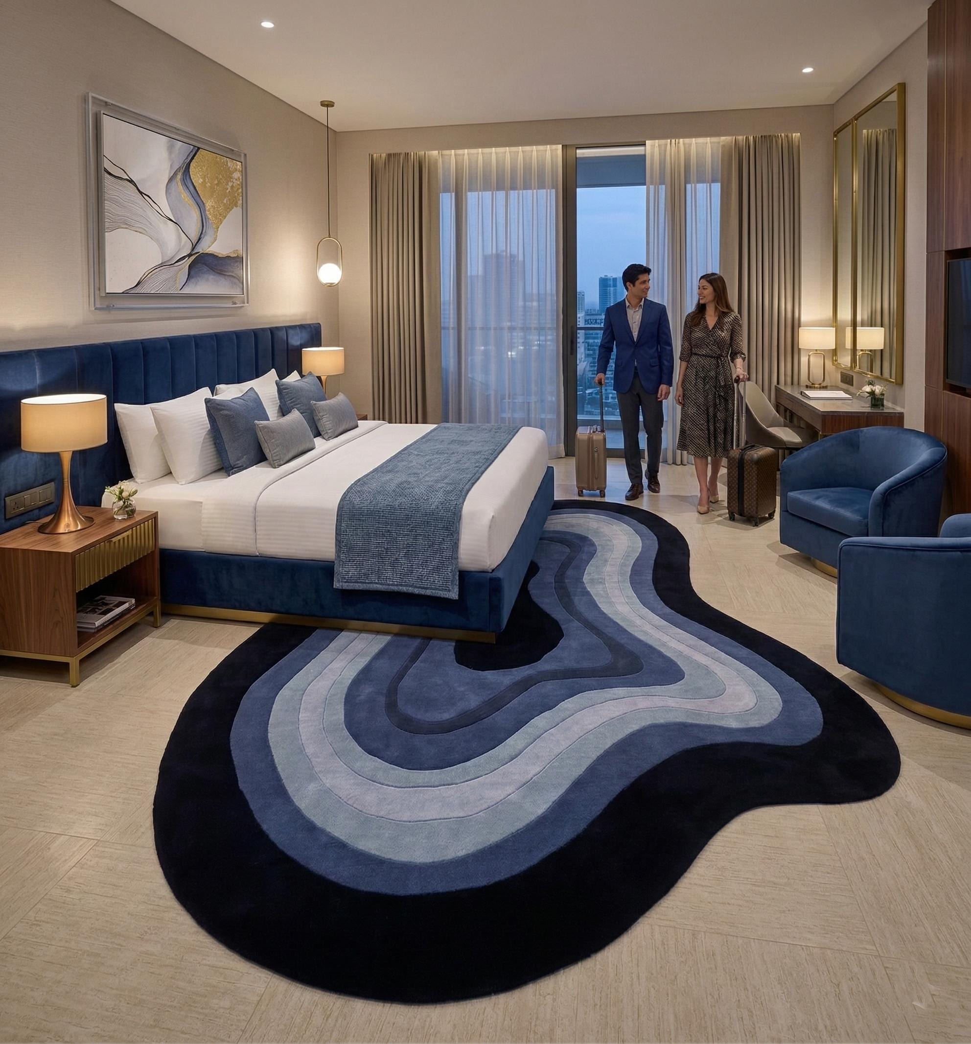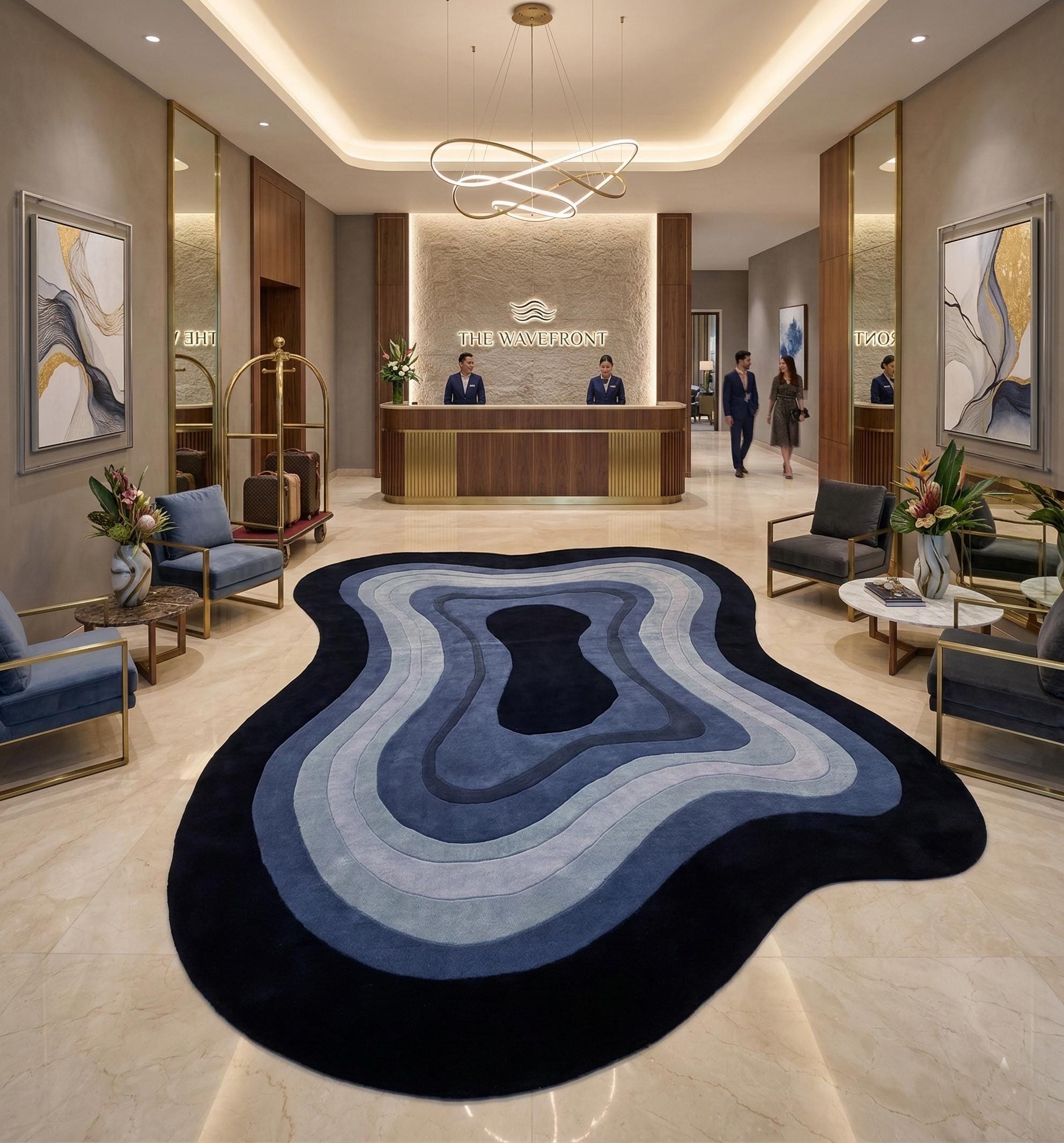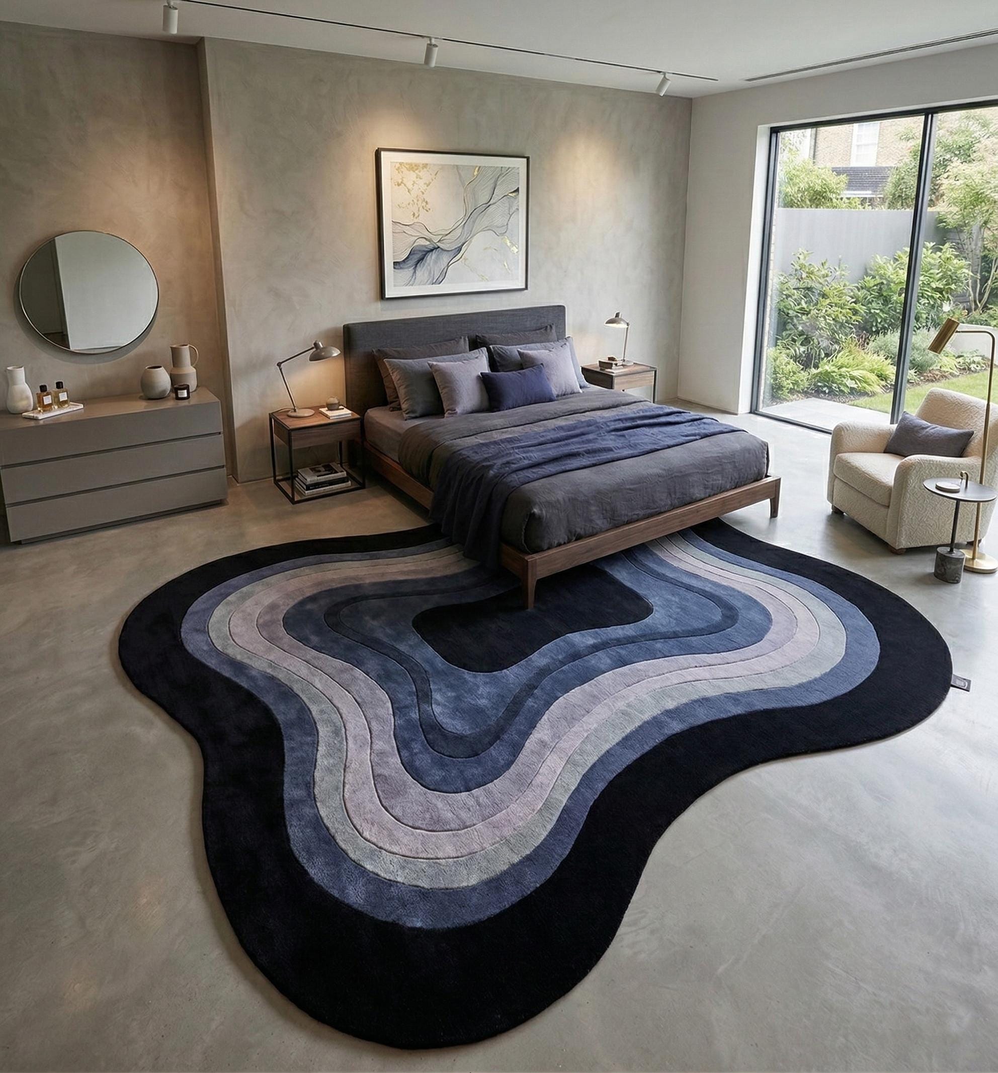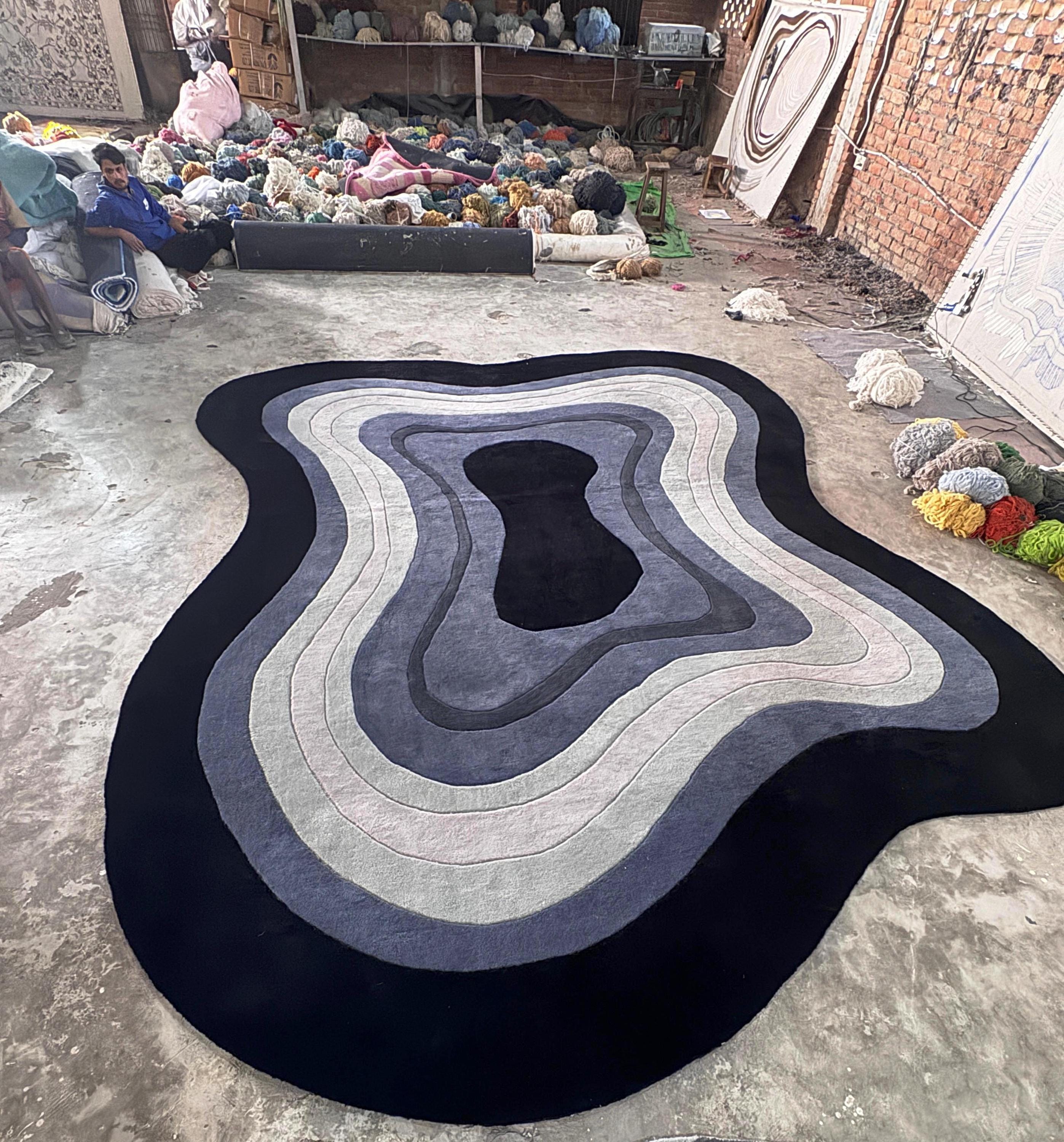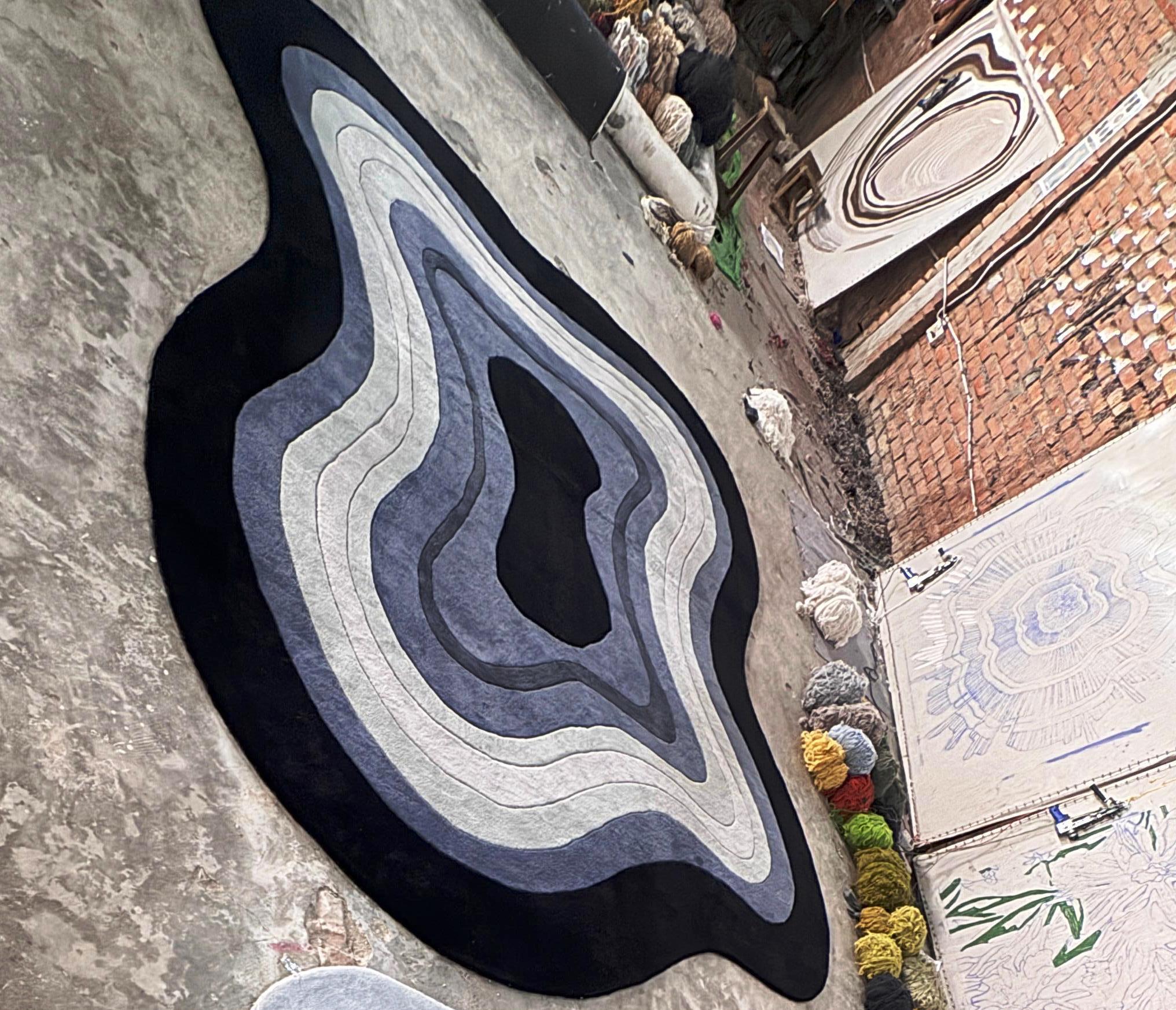 ✨ Luxury Abstract Blue Irregular Rug – Hand Tufted Wool Designer Carpet