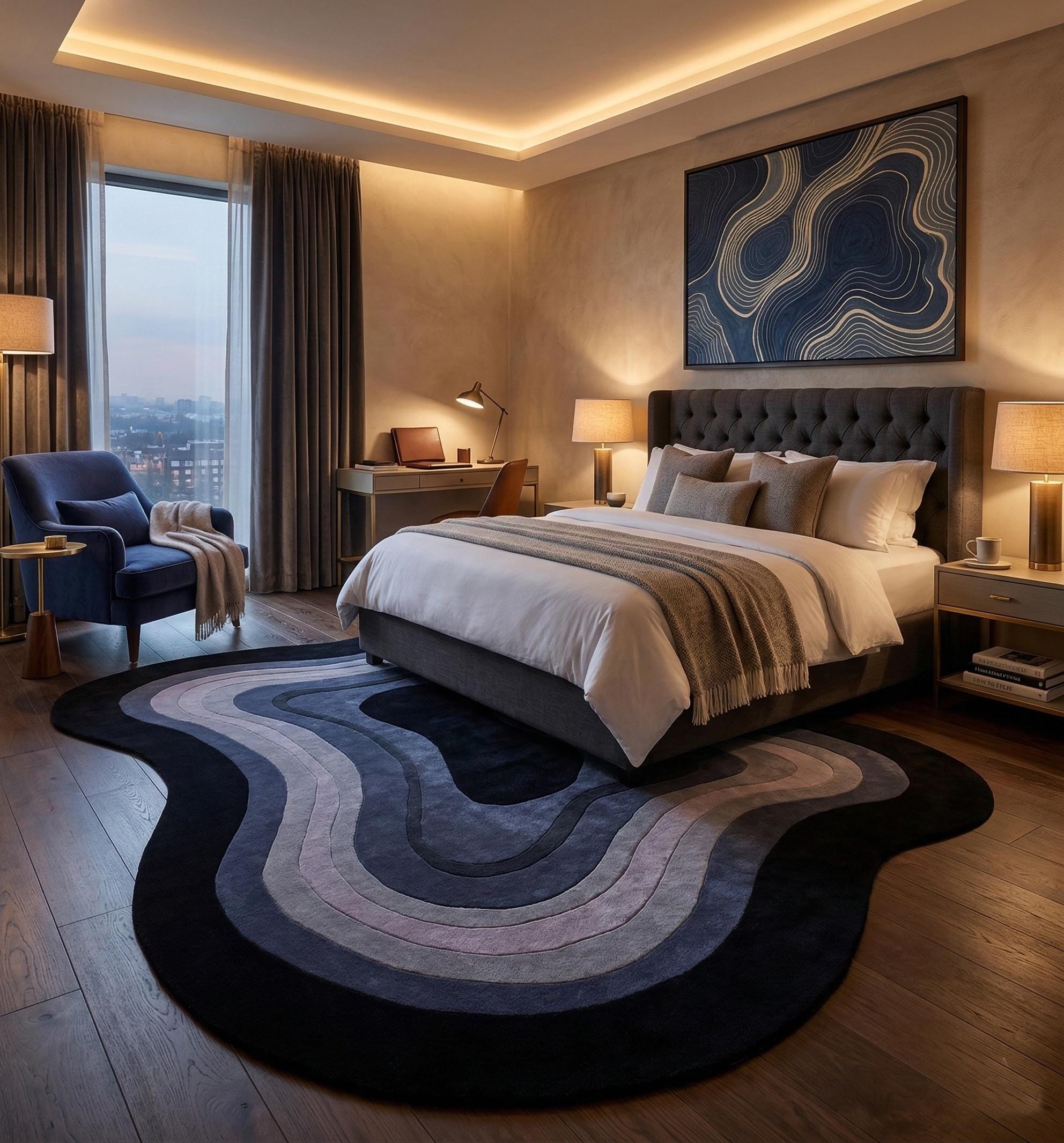 This rug combines art, craftsmanship, and luxury design. The organic contour pattern softens interiors and adds a gallery-style statement piece to any room.