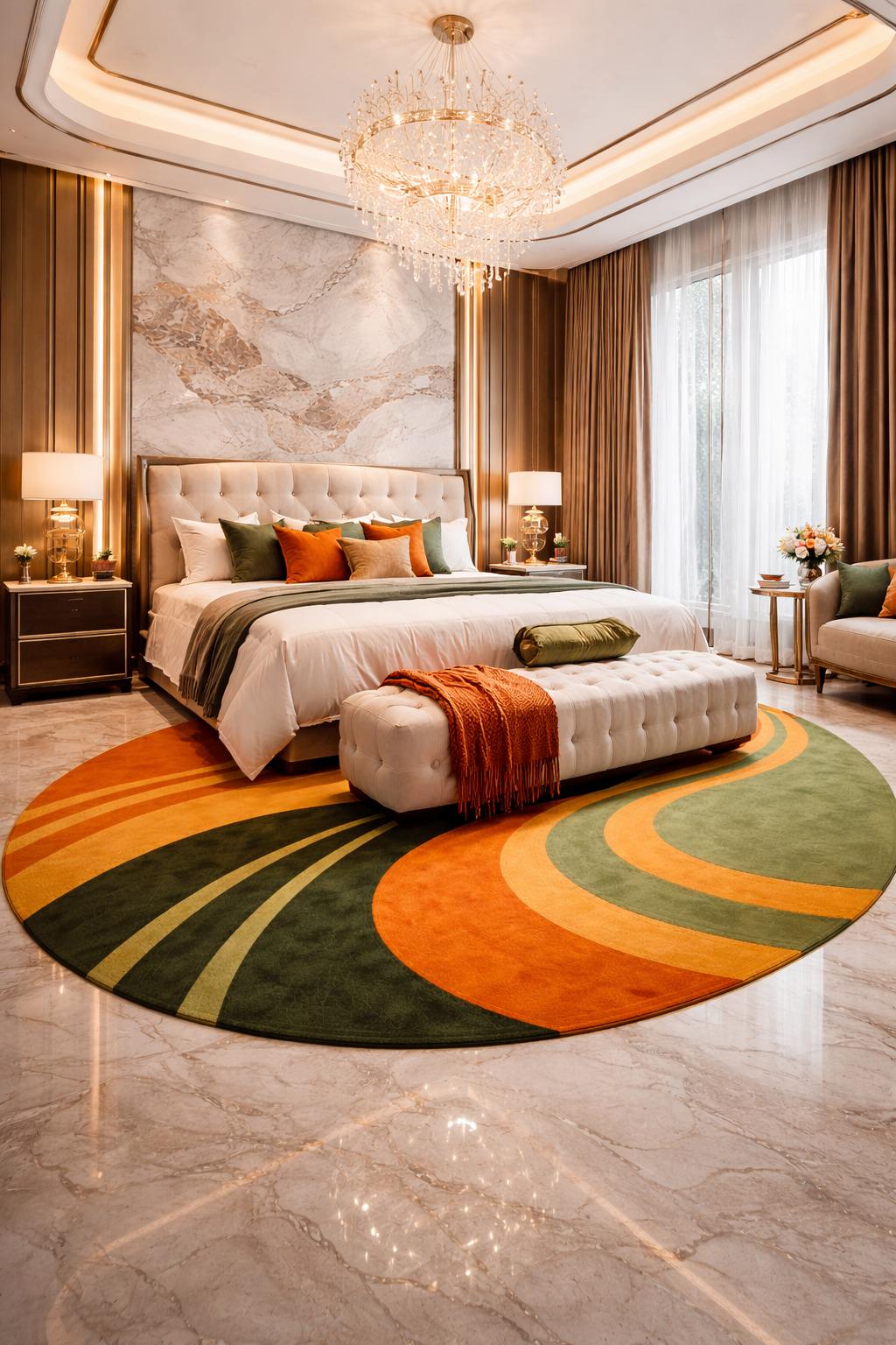 The circular abstract pattern adds movement and harmony to your décor while making your space feel cozy and sophisticated.