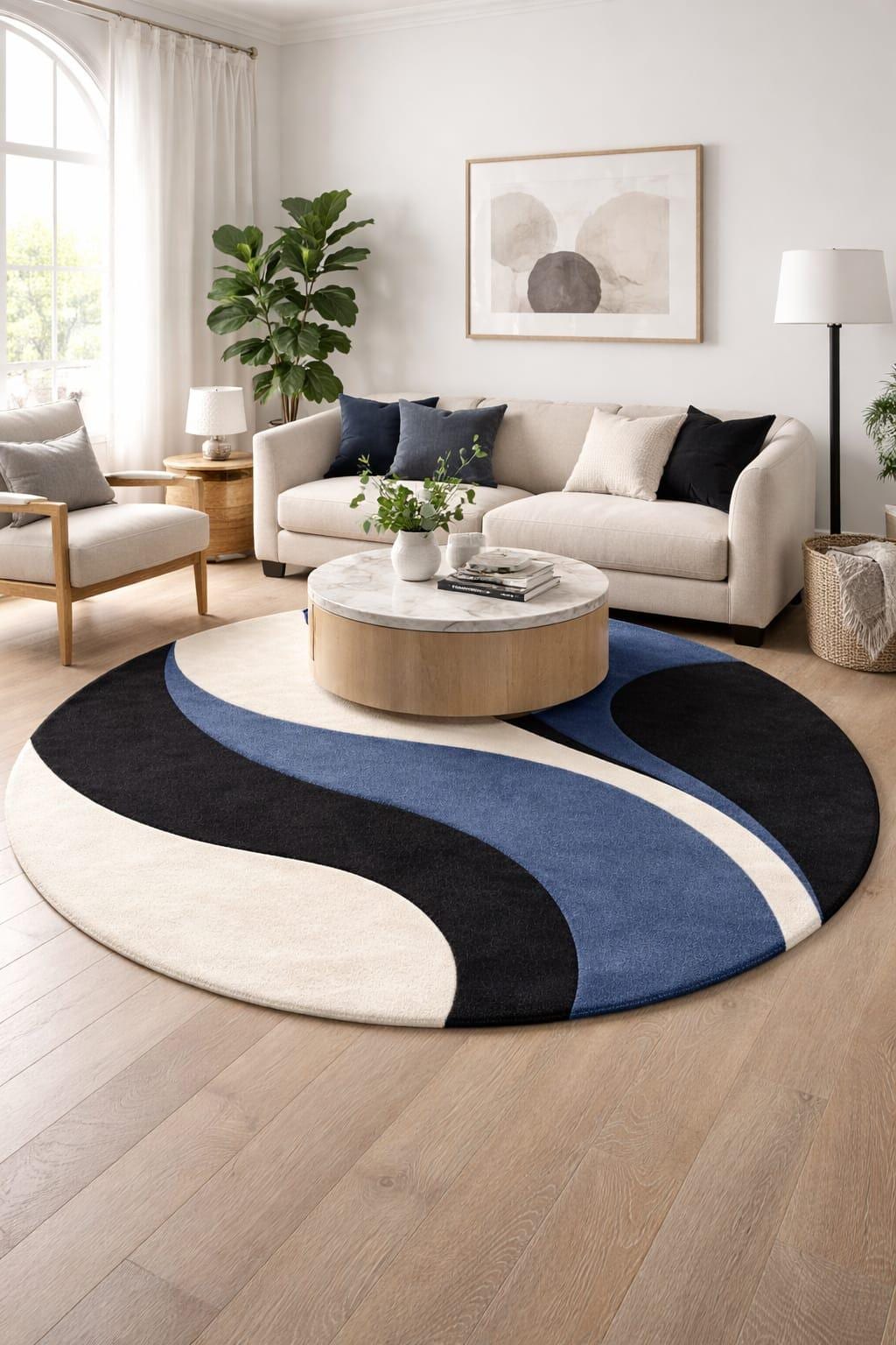 The organic wave pattern adds movement and softness to your room while breaking the straight lines of furniture and walls. Its circular shape naturally draws attention and creates a cozy seating area in living rooms, bedrooms, lounges, or offices.
