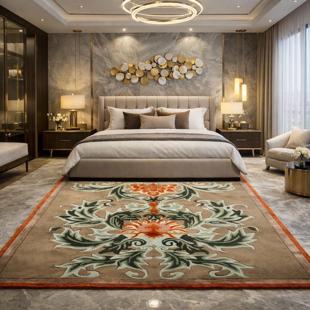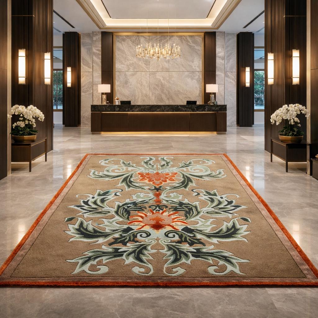 This rug works beautifully in living rooms, hotel receptions, luxury foyers, bedrooms, offices, and large hallways, instantly adding warmth, comfort, and style to your space.
