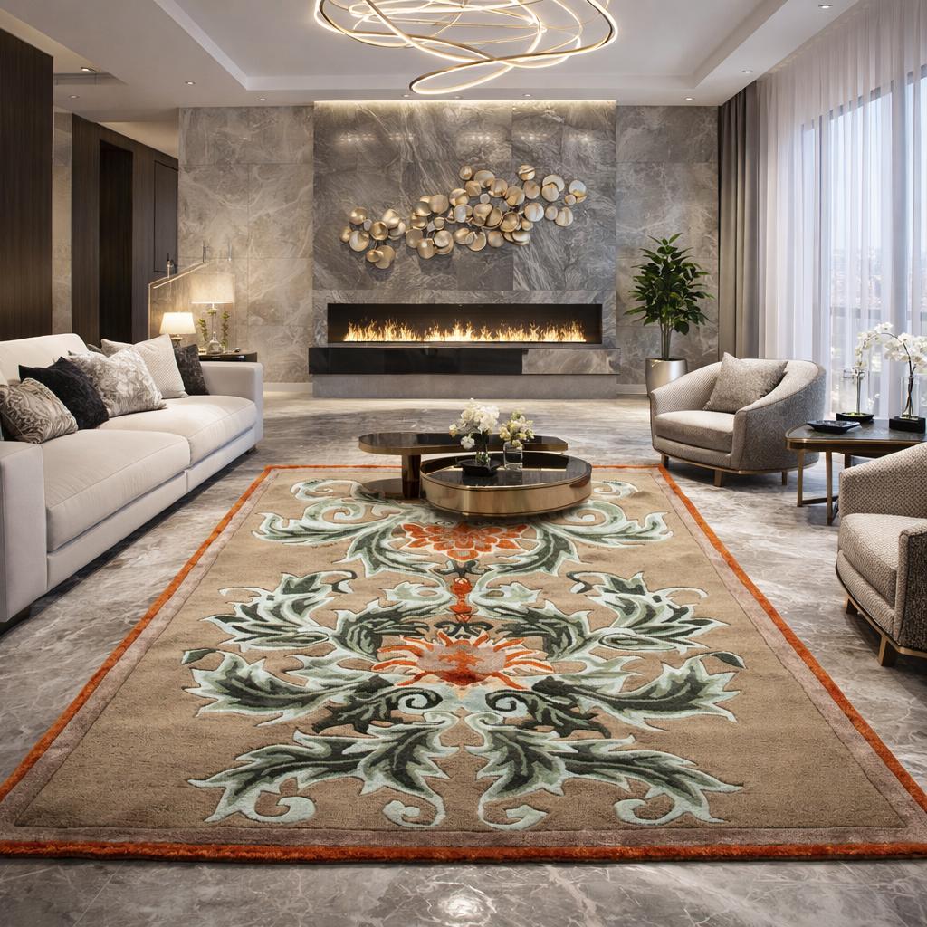Each rug is carefully handcrafted by skilled artisans using premium wool, ensuring exceptional durability, softness, and long-lasting beauty. The intricate floral design blends traditional inspiration with modern luxury aesthetics, making it perfect for both contemporary and classic interiors.