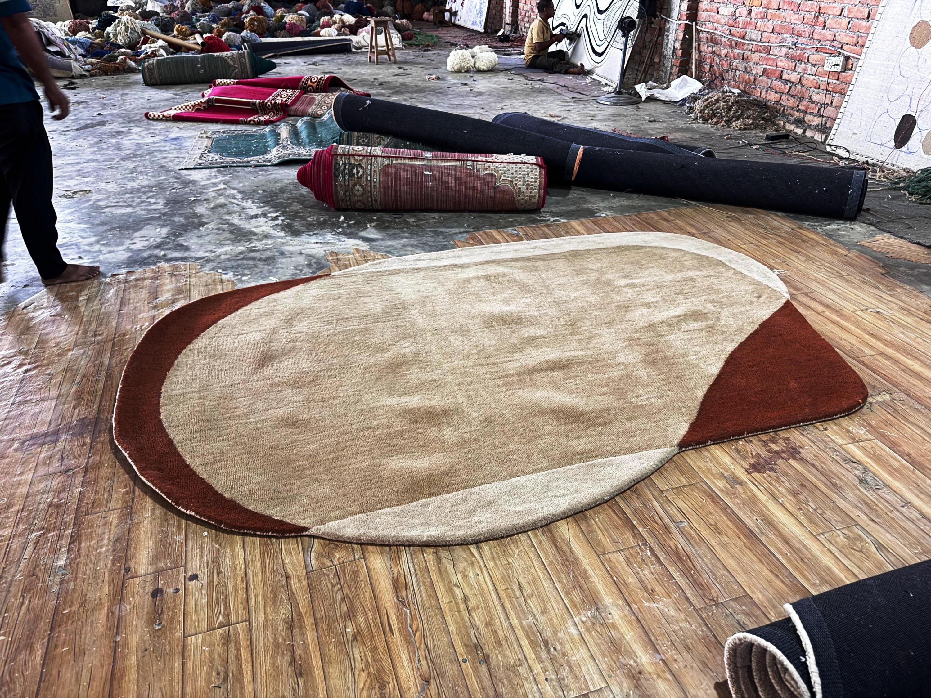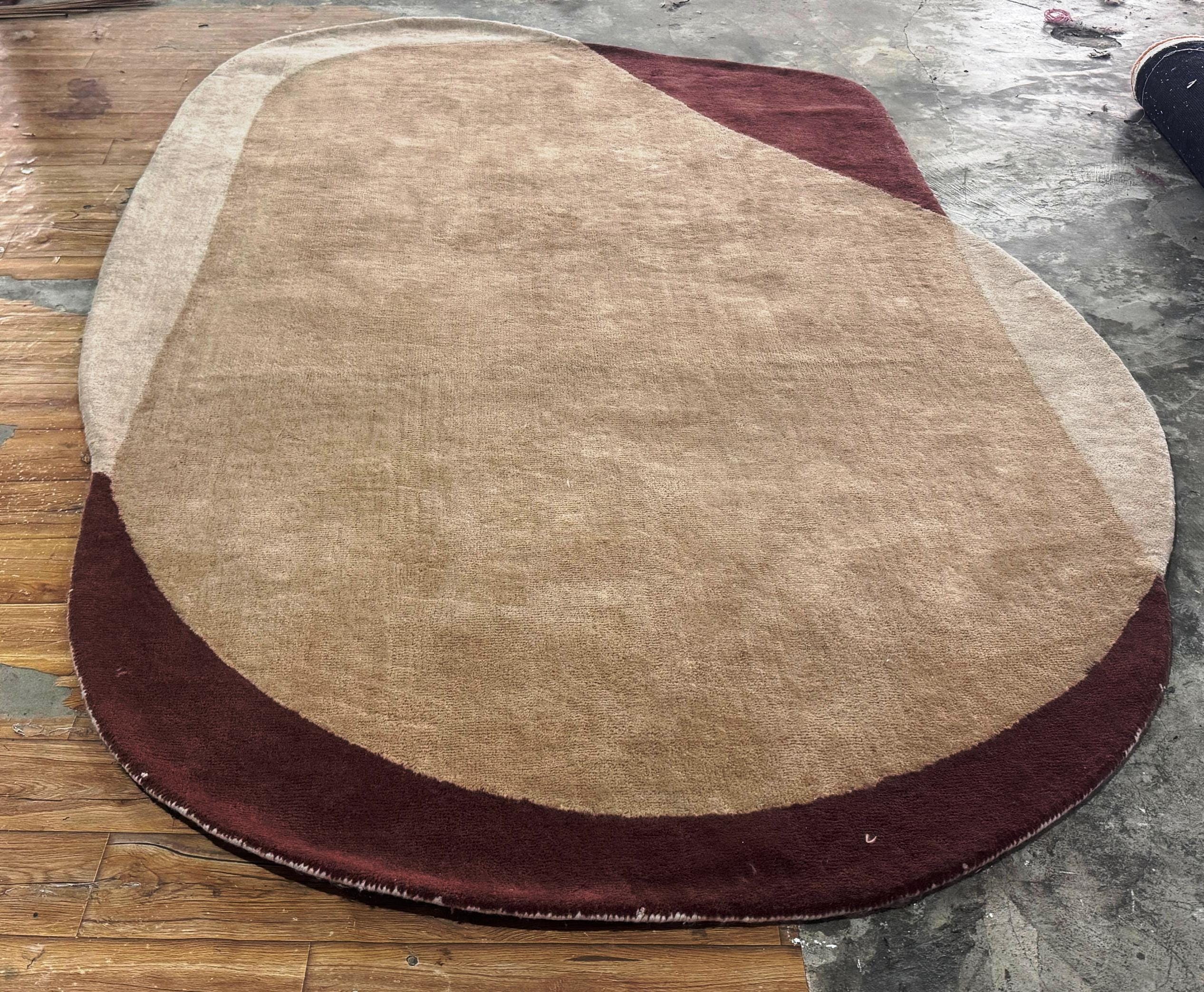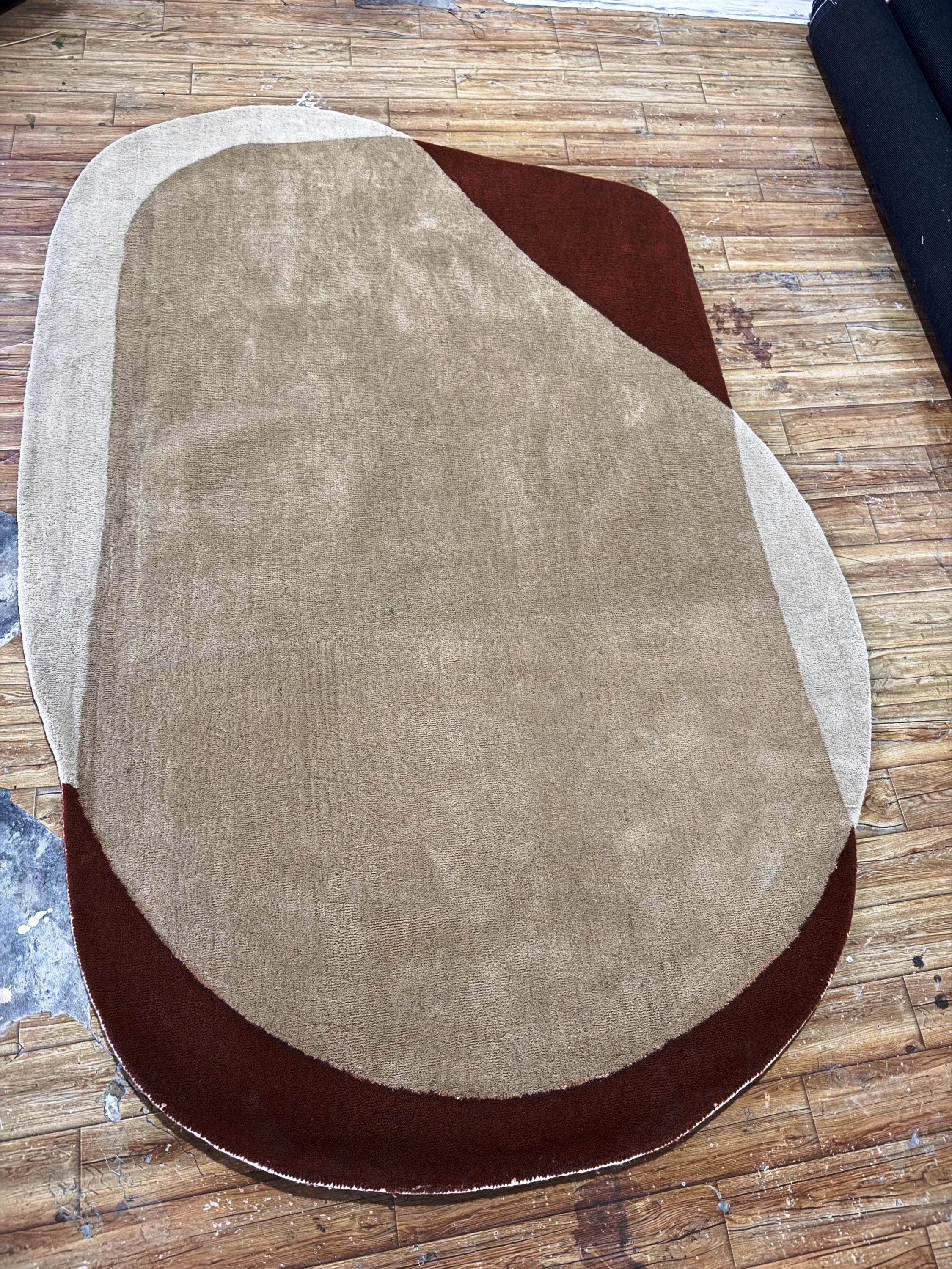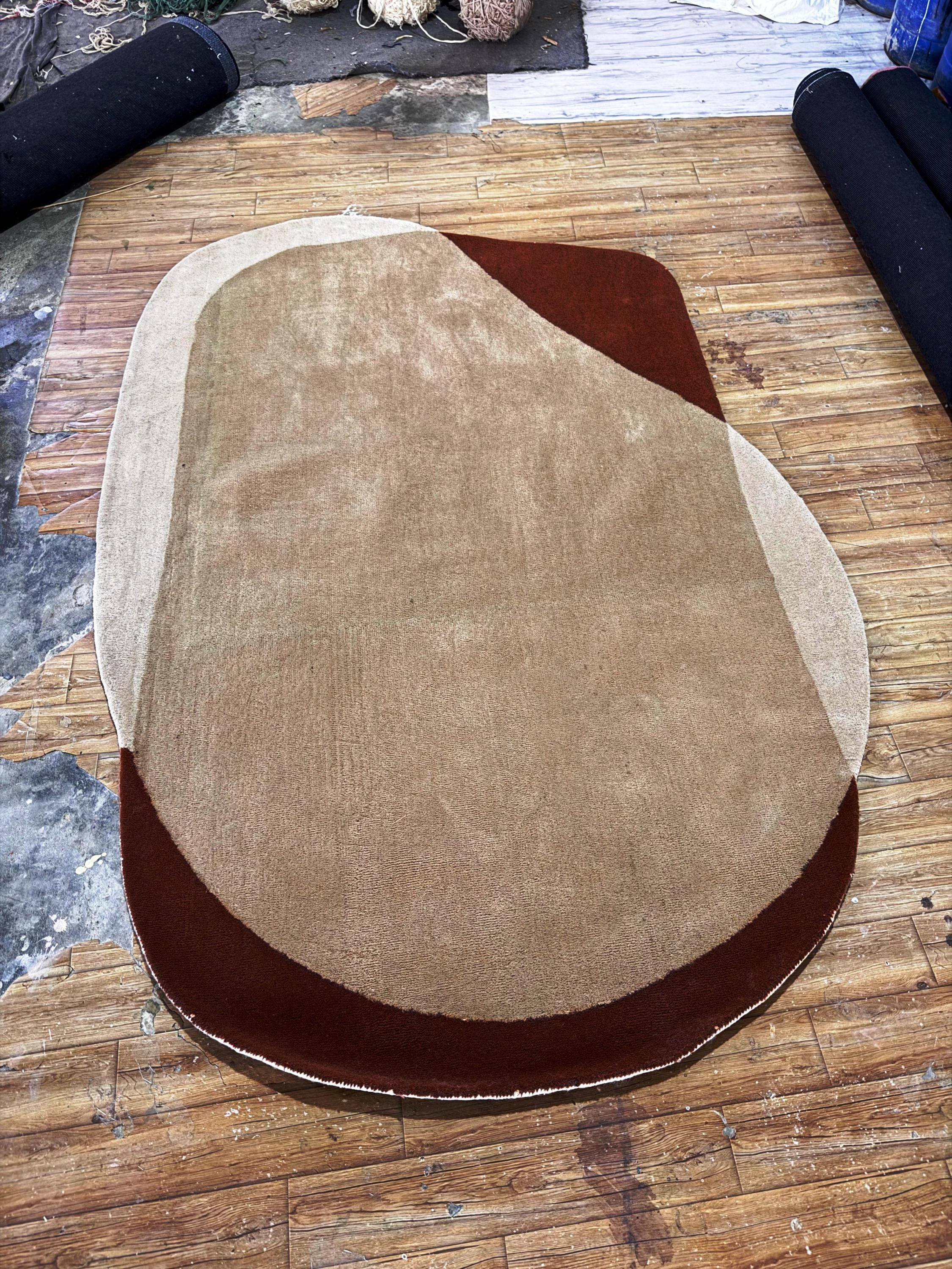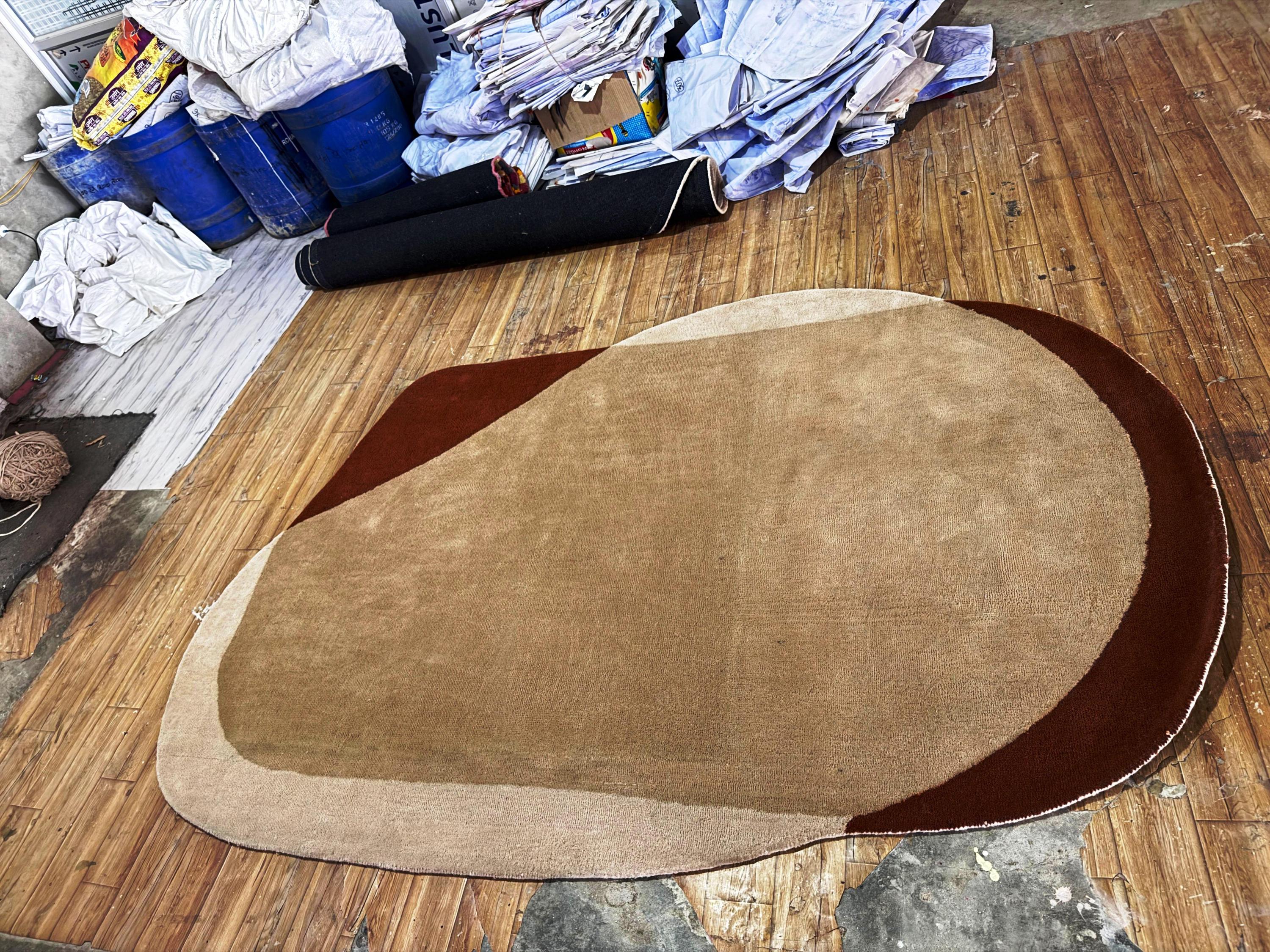 Hand-Tufted Wool Rug, Irregular Abstract Area Carpet, Neutral Beige Brown Designer Organic Shape