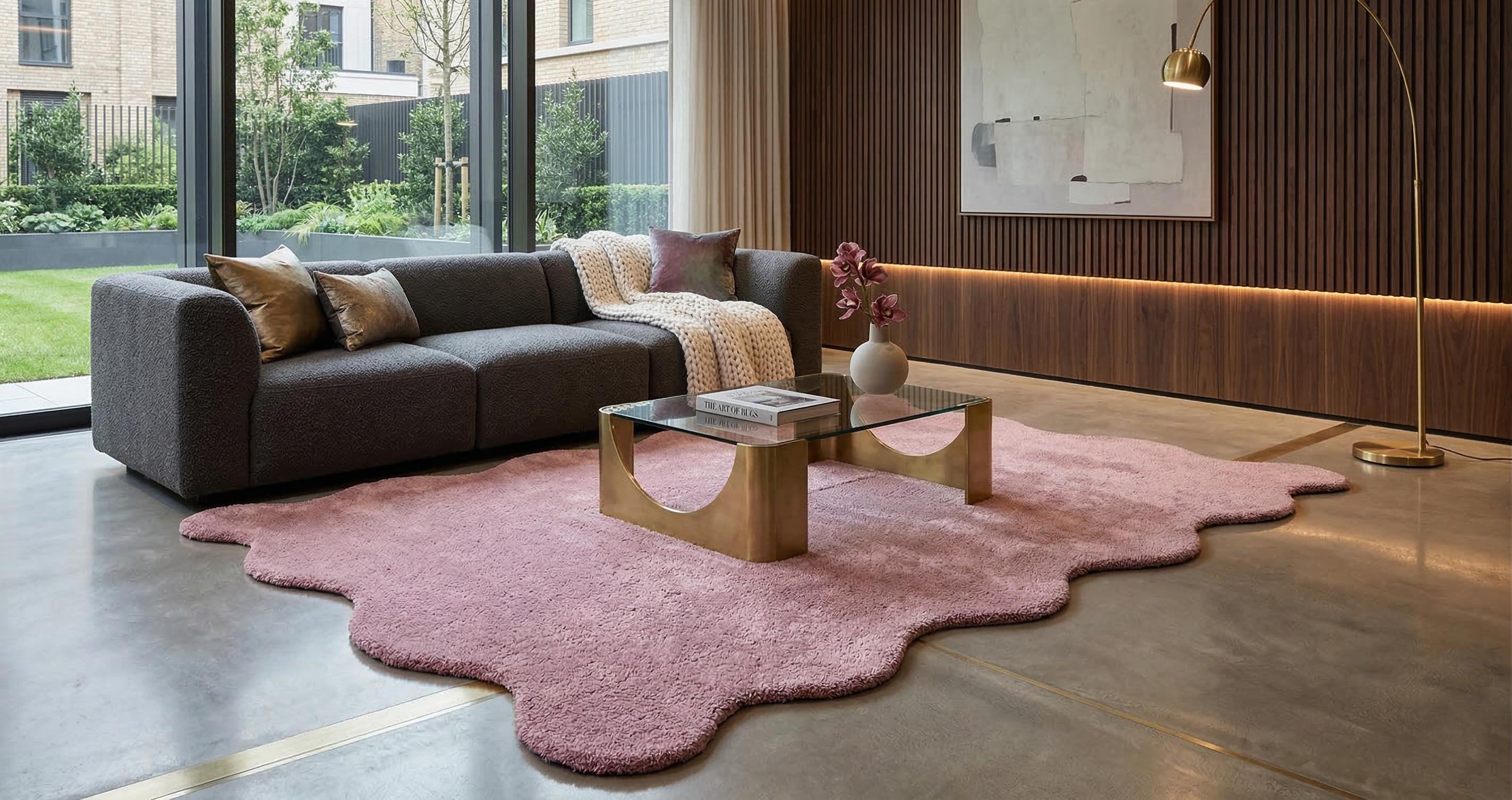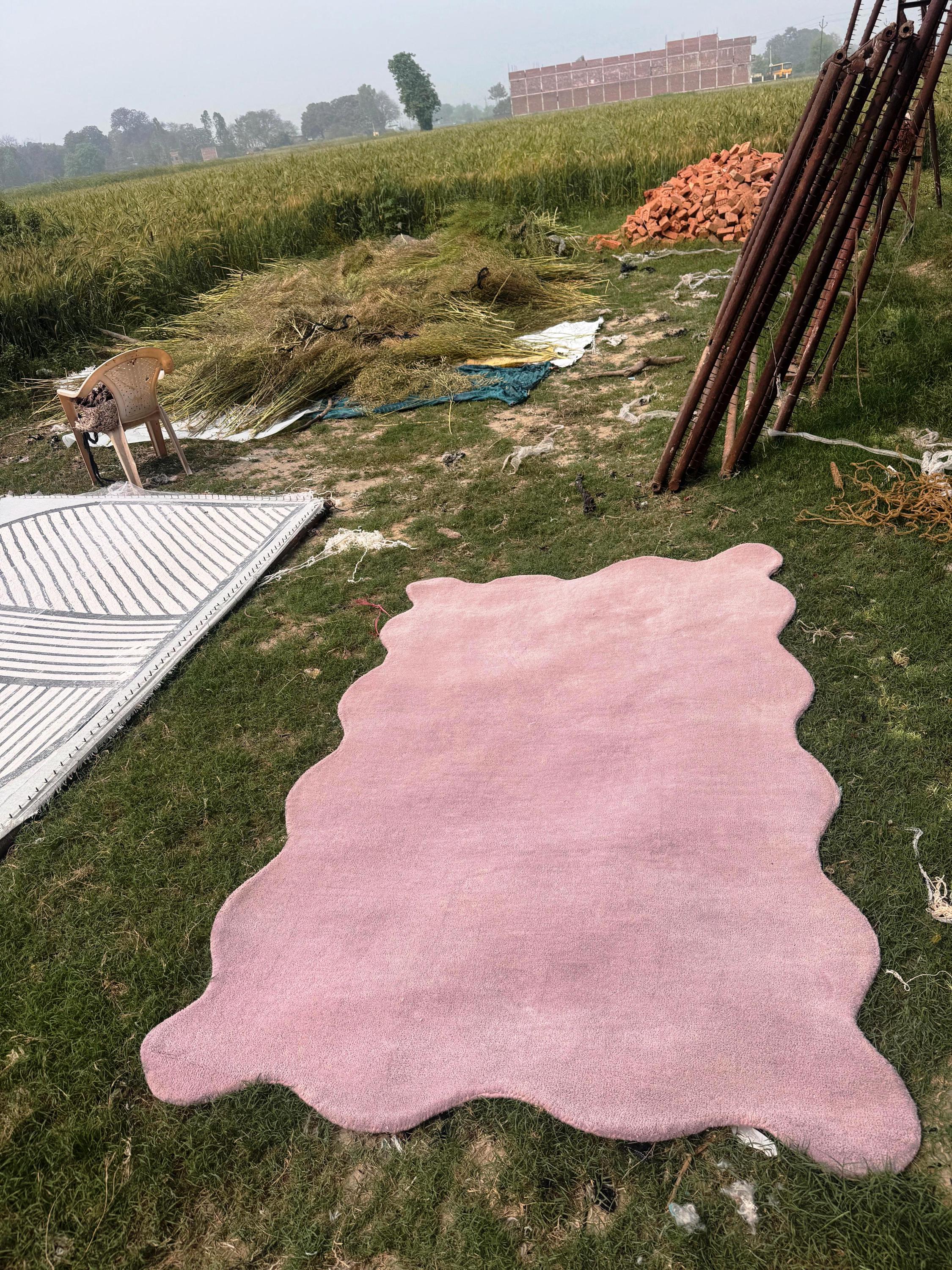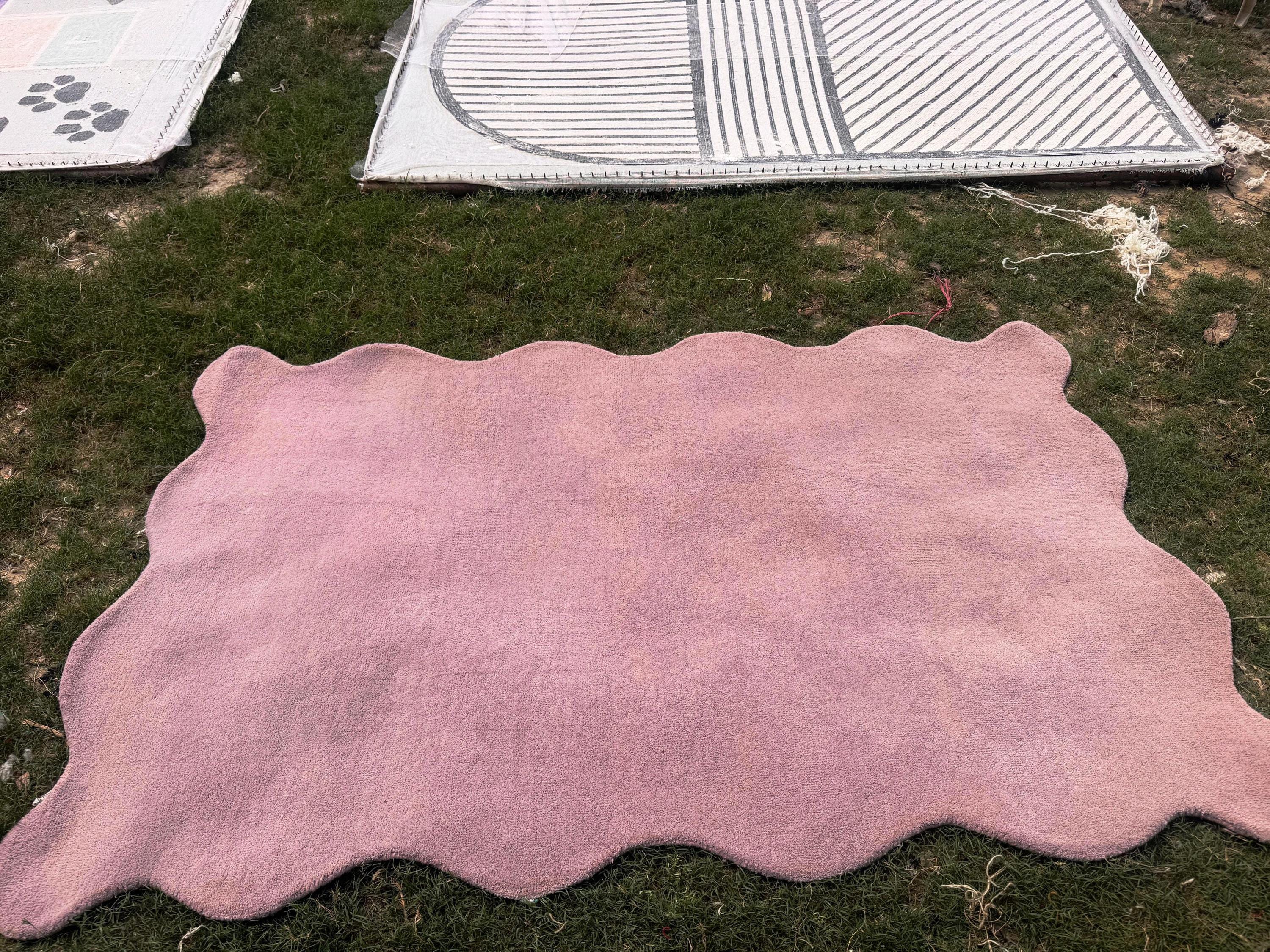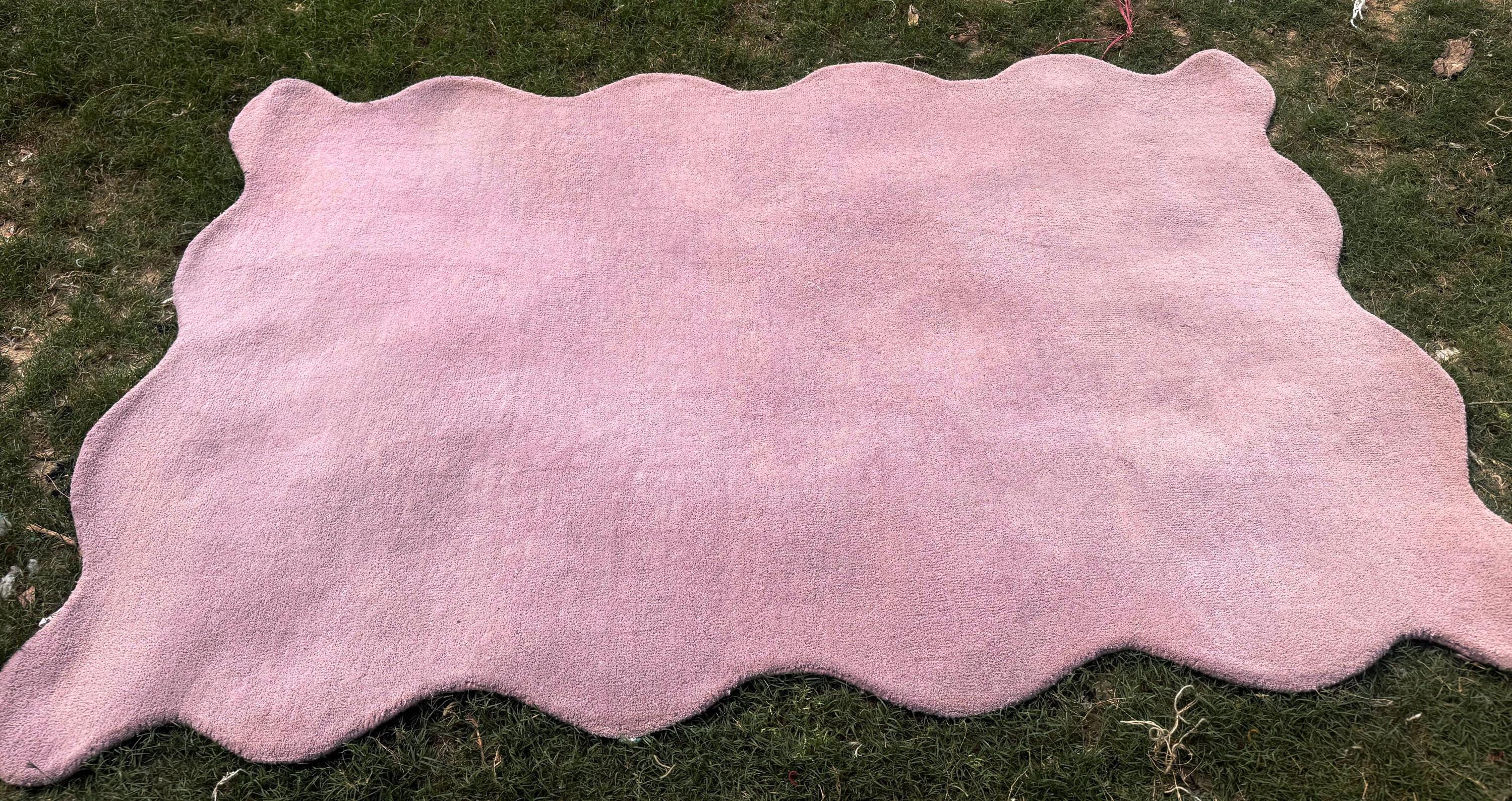 Add a touch of modern elegance and luxury comfort to your home with this beautiful hand-tufted irregular blush pink wool rug. Designed with a unique organic shape, this rug brings a soft artistic feel that perfectly complements contemporary interiors, luxury living rooms, cozy bedrooms, and stylish apartments.
