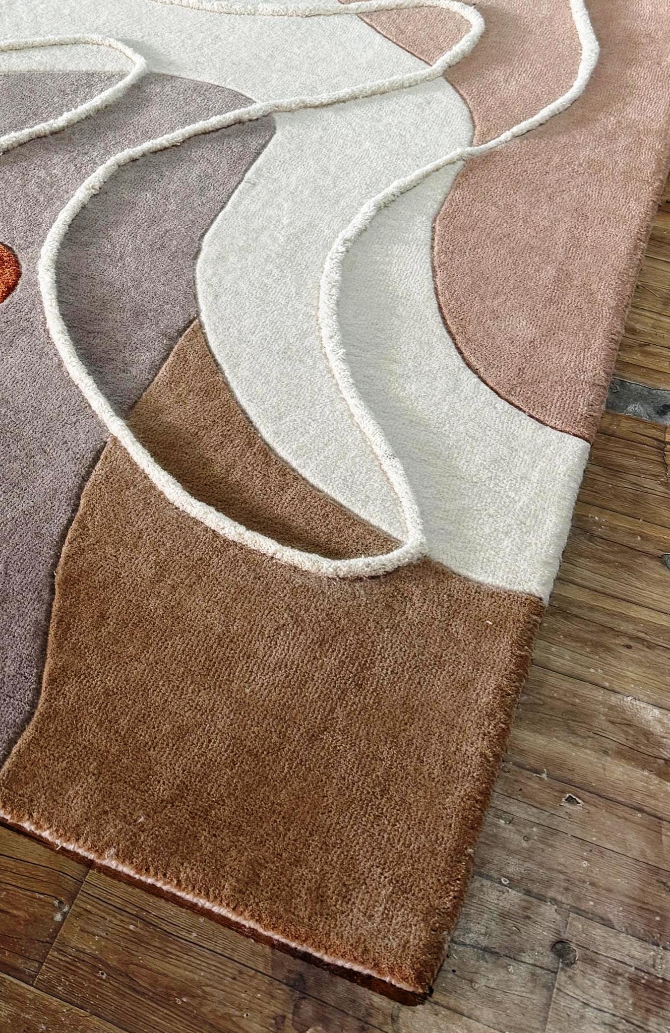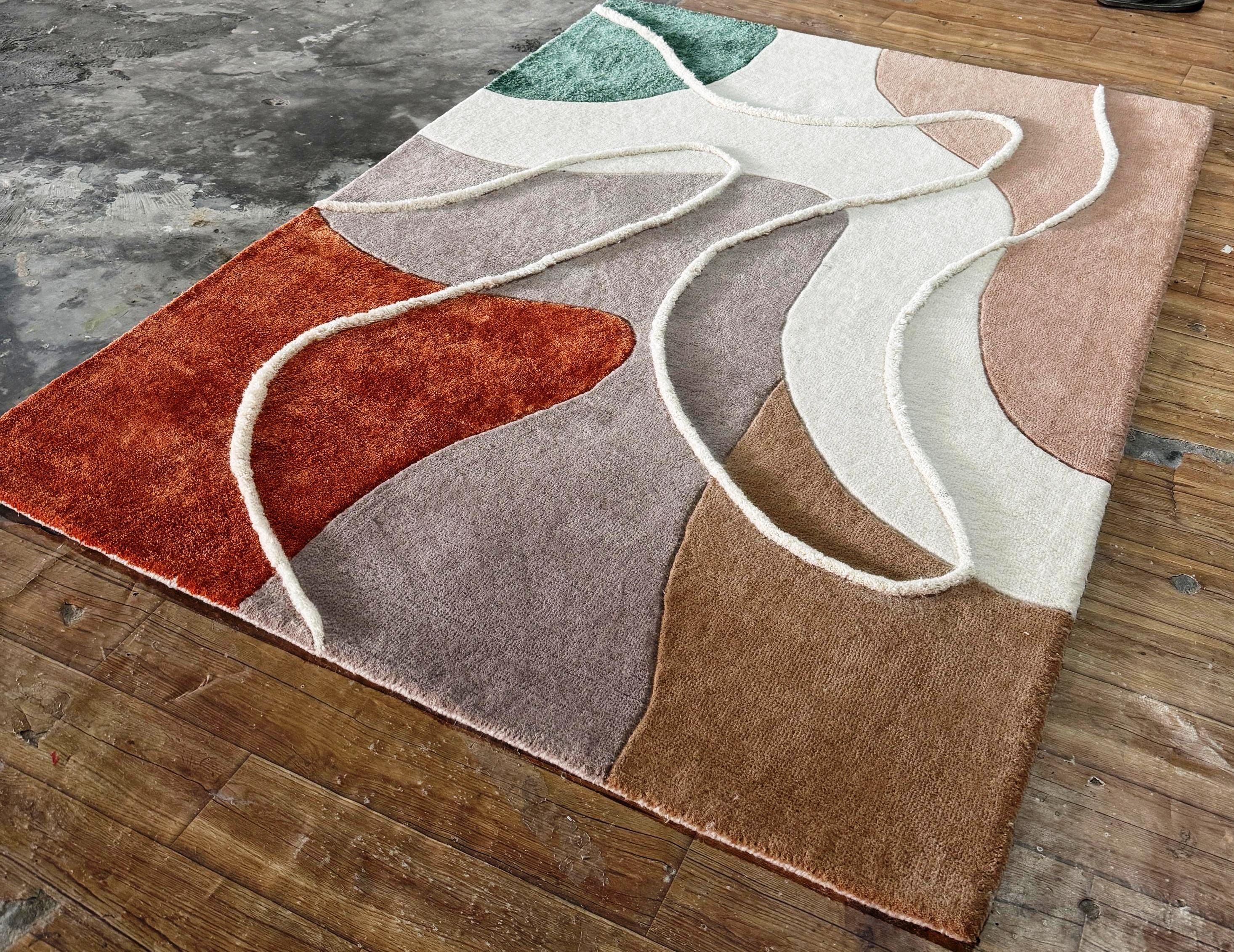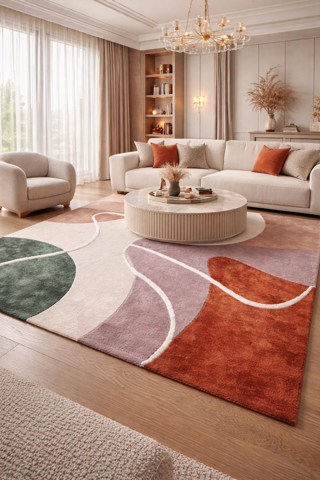 Elevate your space with this stunning modern abstract area rug, designed to bring warmth, elegance, and artistic flair into your home. Featuring a unique geometric pattern with earthy tones of rust, sage green, blush, and cream, this rug blends seamlessly into contemporary, minimalist, and luxury interiors.
