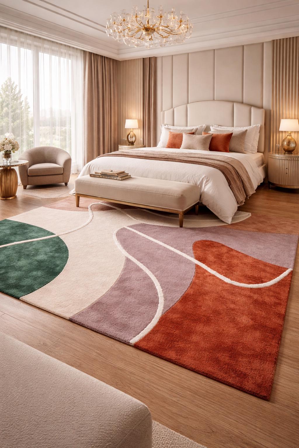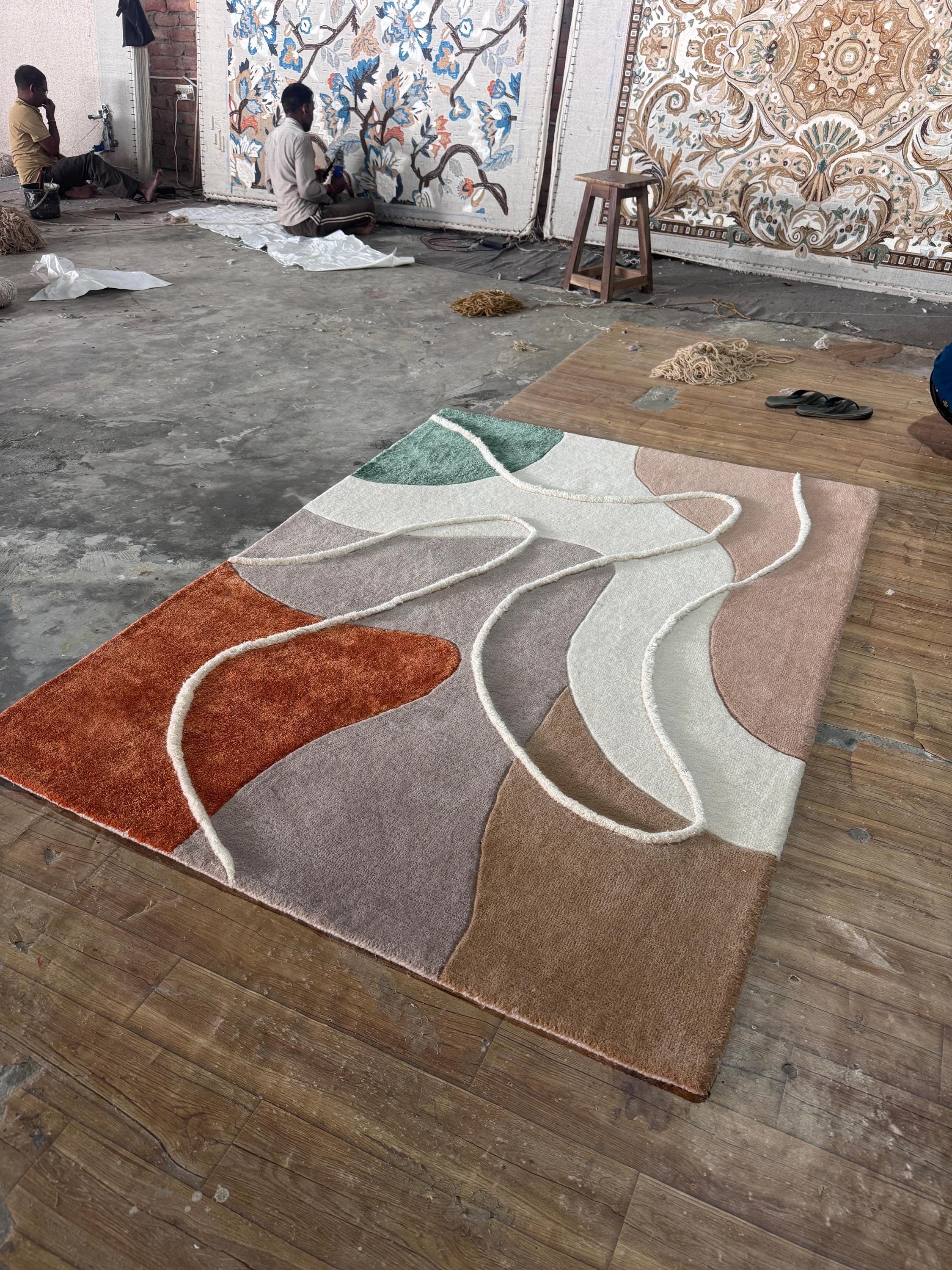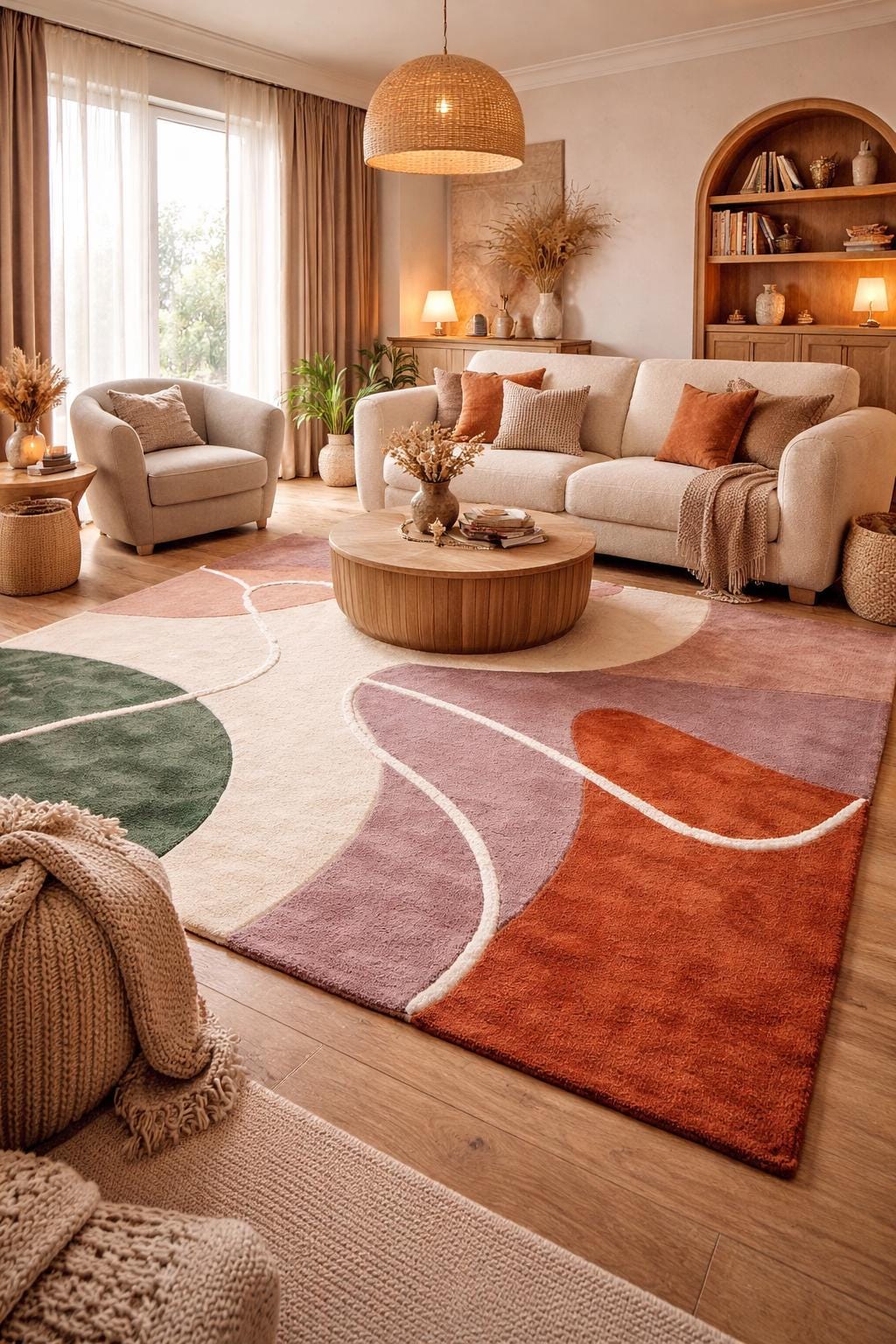 Elevate your space with this stunning modern abstract area rug, designed to bring warmth, elegance, and artistic flair into your home. Featuring a unique geometric pattern with earthy tones of rust, sage green, blush, and cream, this rug blends seamlessly into contemporary, minimalist, and luxury interiors.