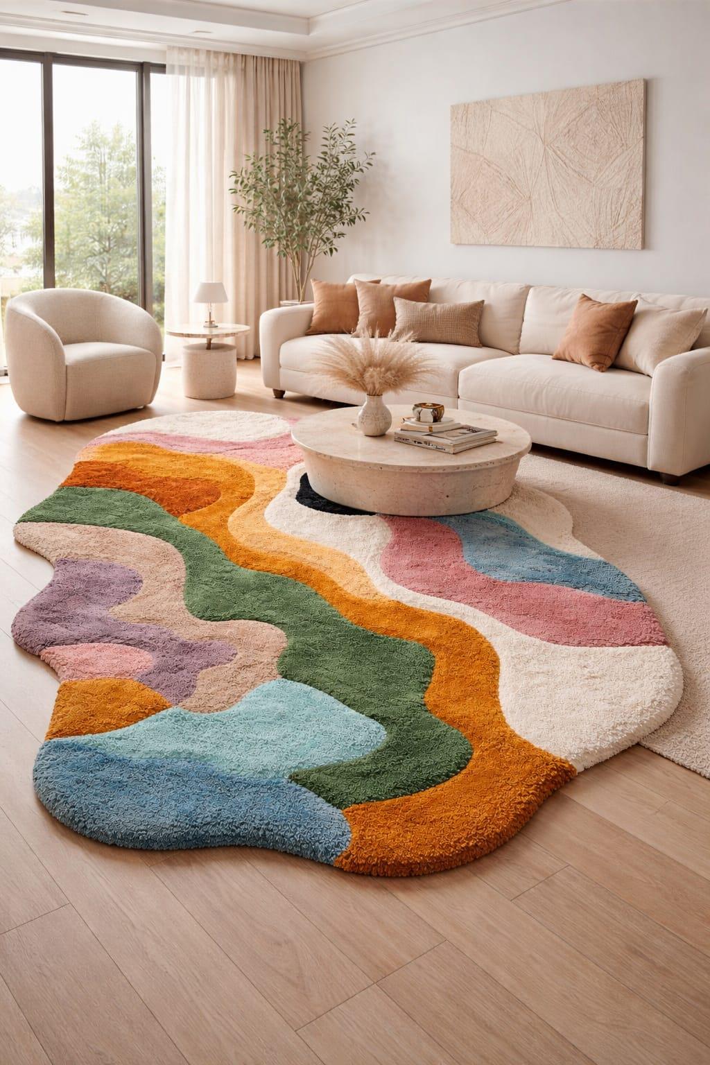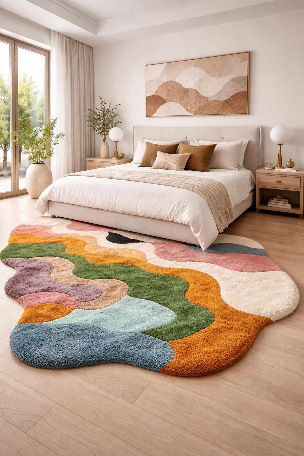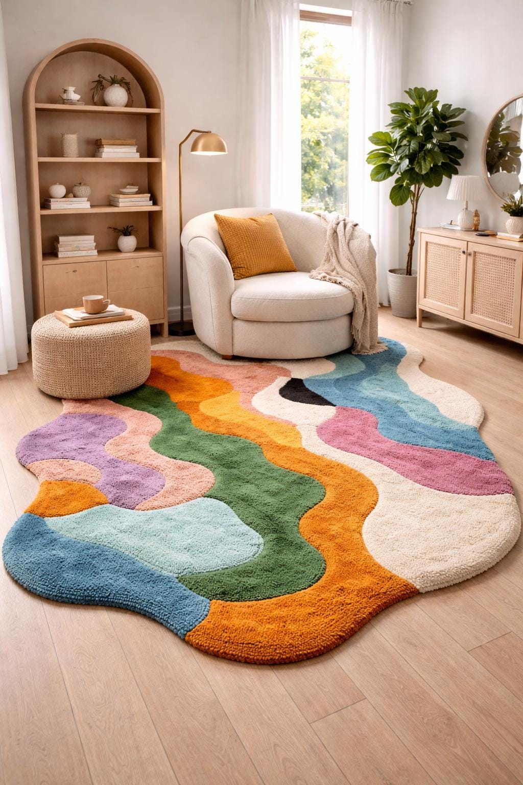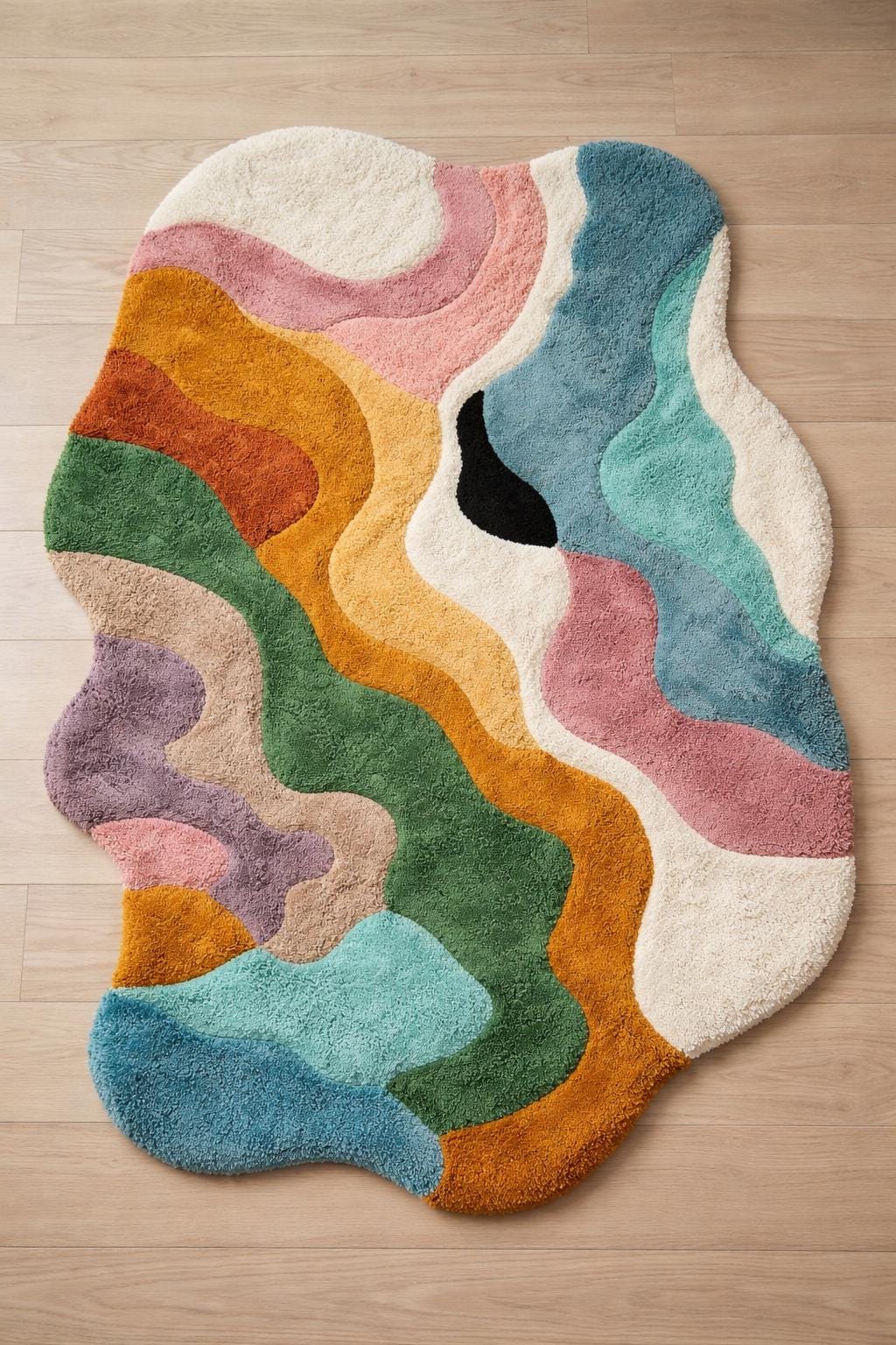 Hand-Tufted Irregular Abstract Rug, Colorful Wavy Boho Carpet, Modern Floor Decor