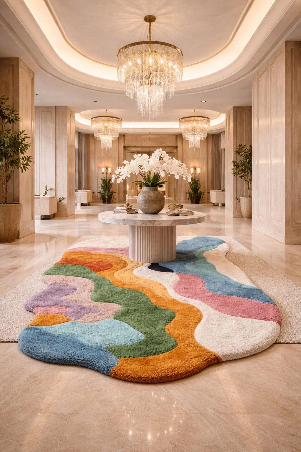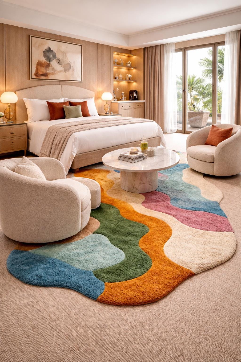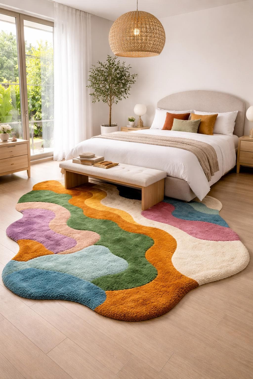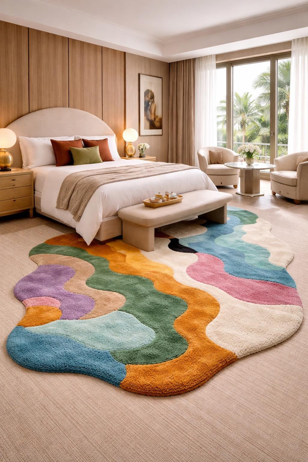 Hand-Tufted Irregular Abstract Rug, Colorful Wavy Boho Carpet, Modern Floor Decor