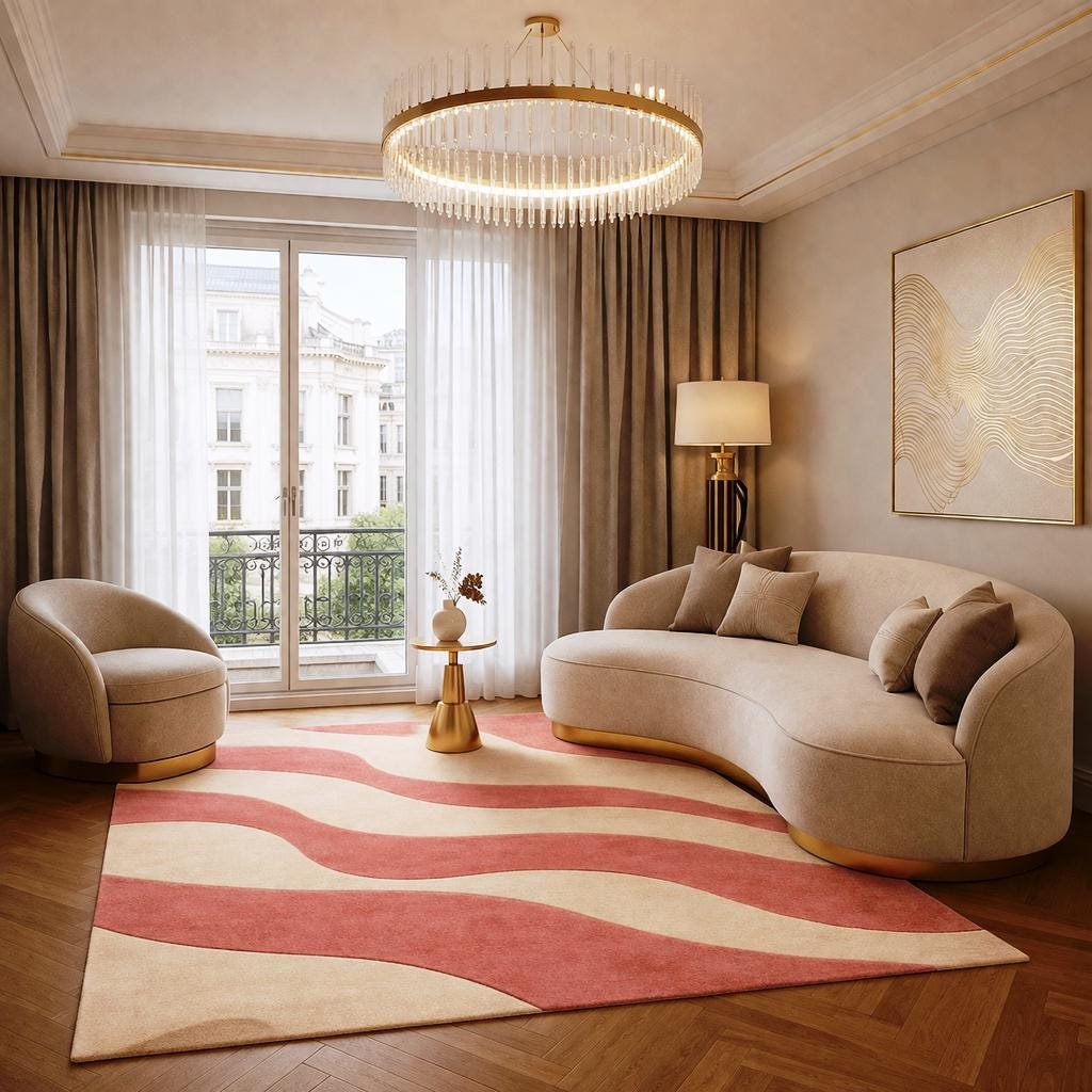Elevate your space with this stunning hand tufted wool rug featuring a modern abstract wavy design in soft pink and beige tones. Crafted with premium quality wool, this rug offers a plush, luxurious feel underfoot while adding a sophisticated and contemporary touch to any interior.