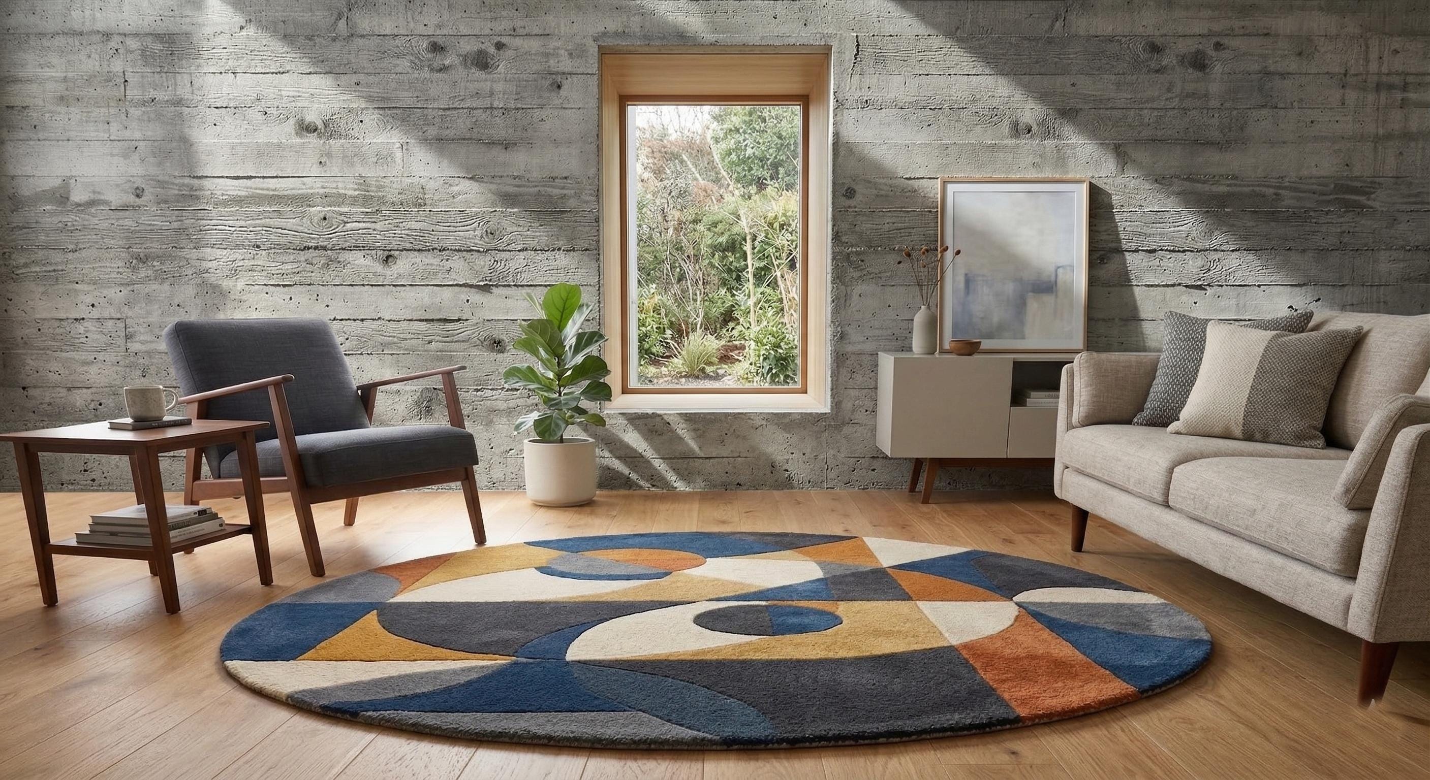 Hand Tufted Wool Abstract Round Rug, Modern Geometric Living Room Carpet