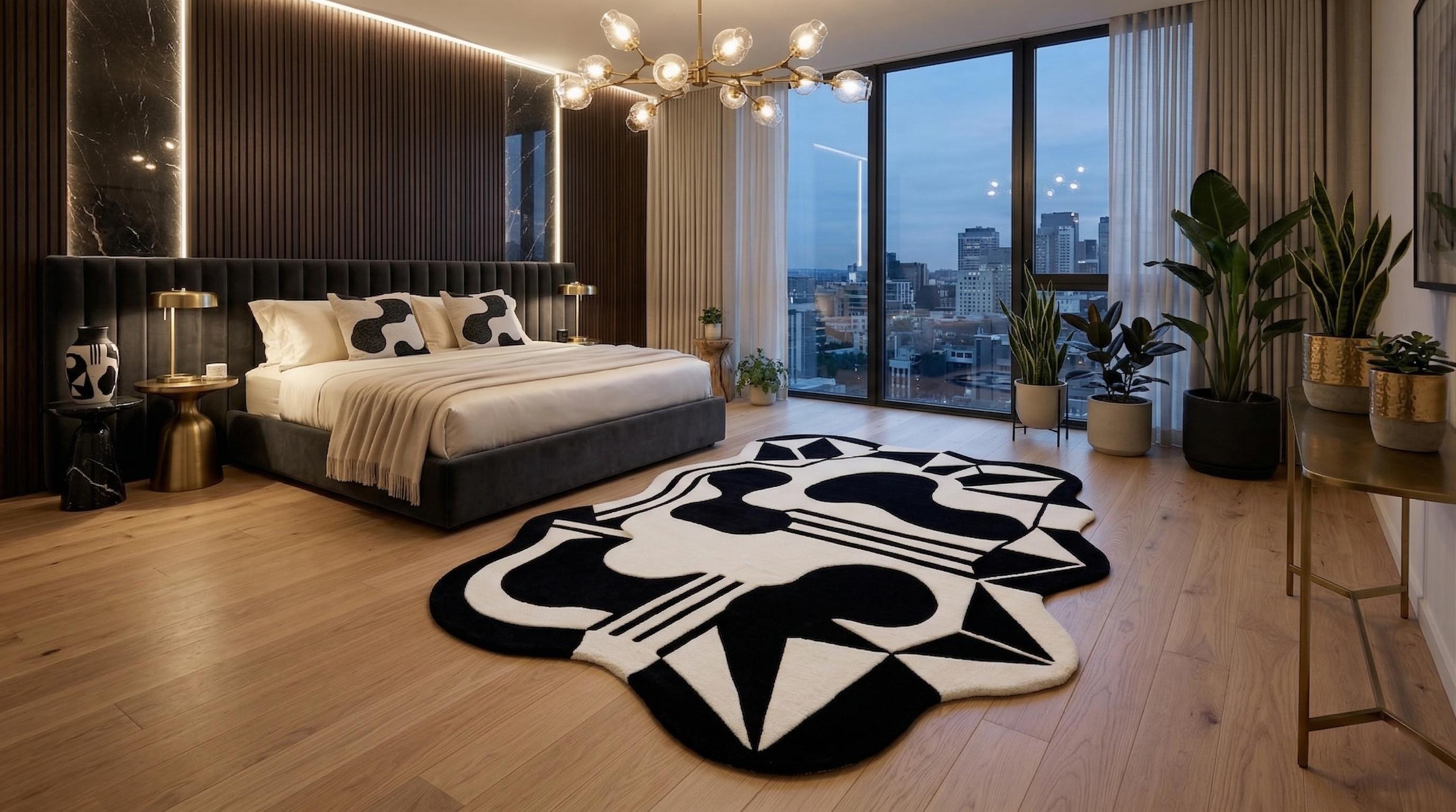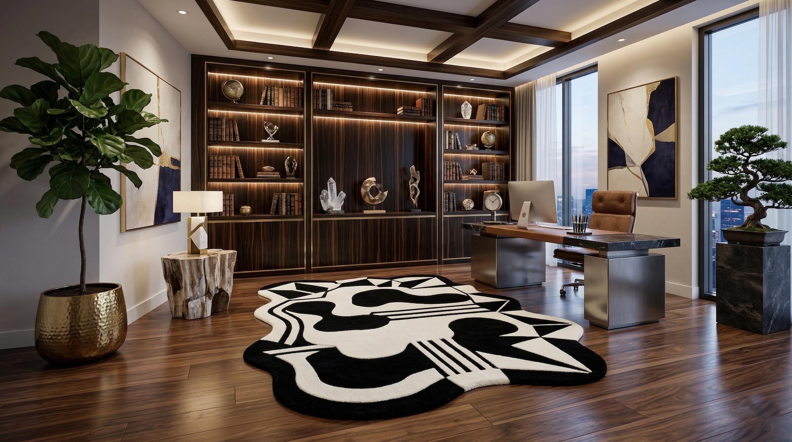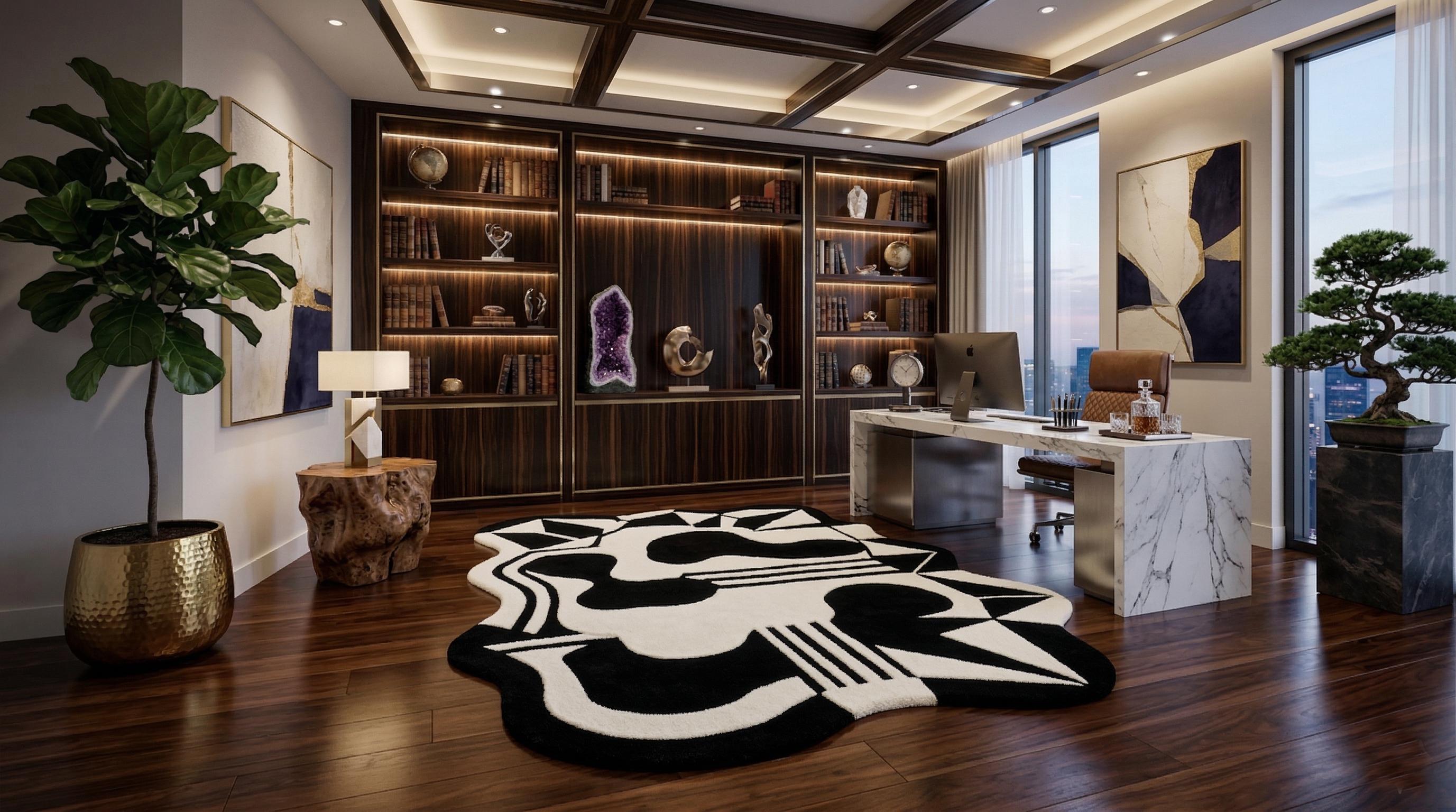 Add a touch of artistic luxury to your space with this eye-catching modern rug.