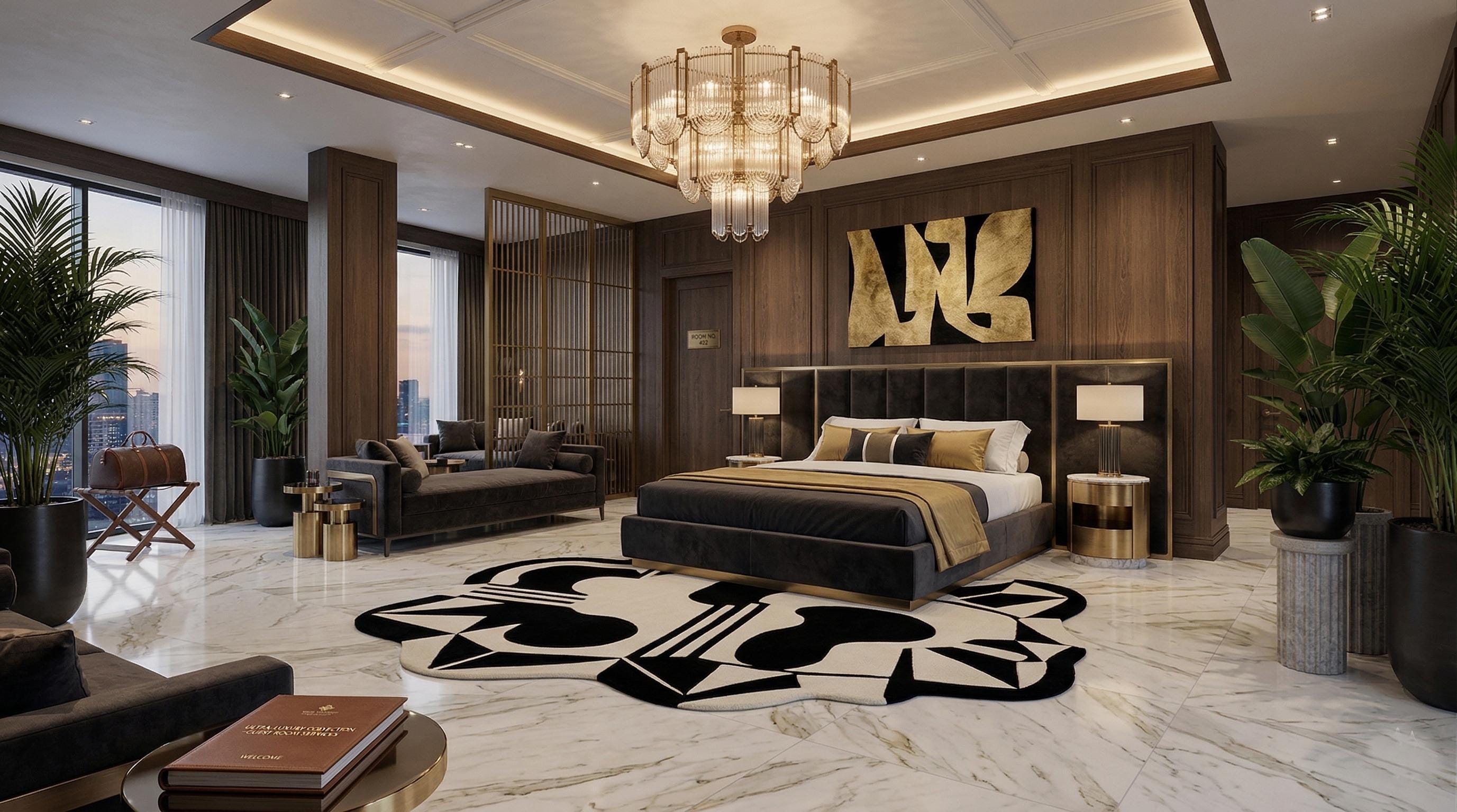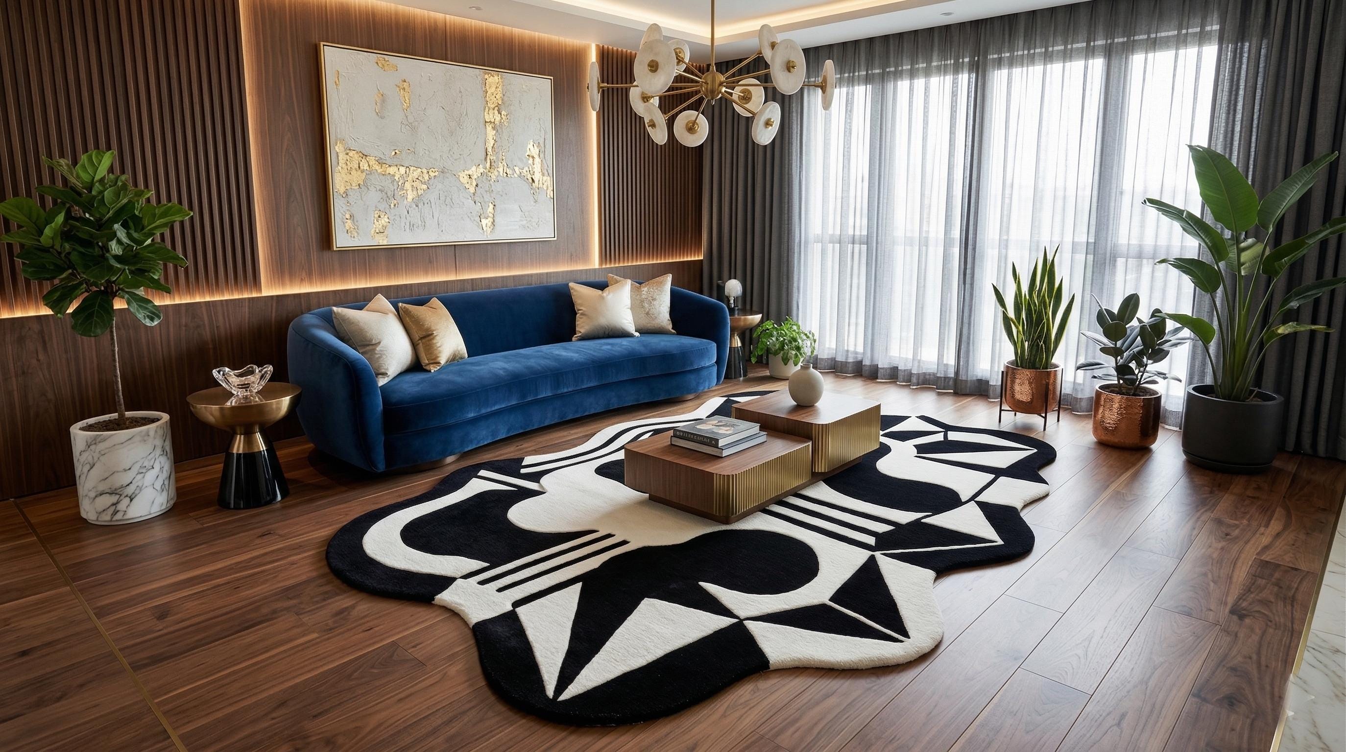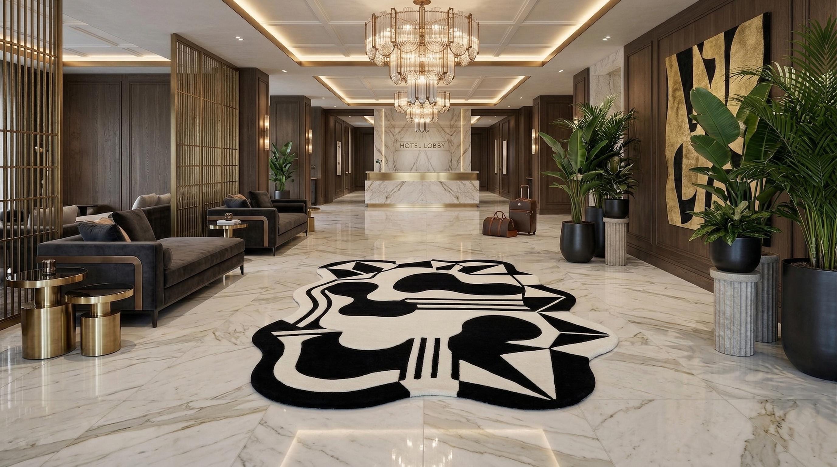 Add a touch of artistic luxury to your space with this eye-catching modern rug.