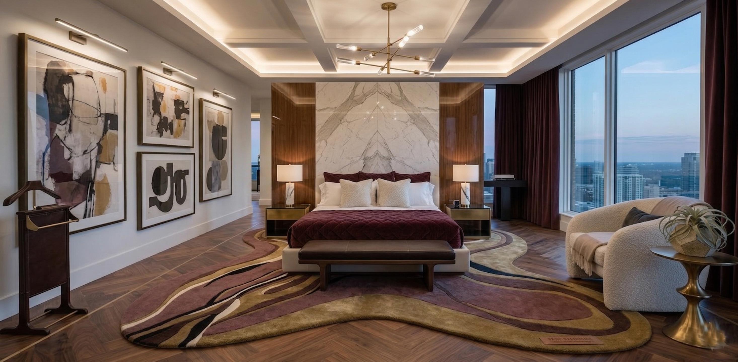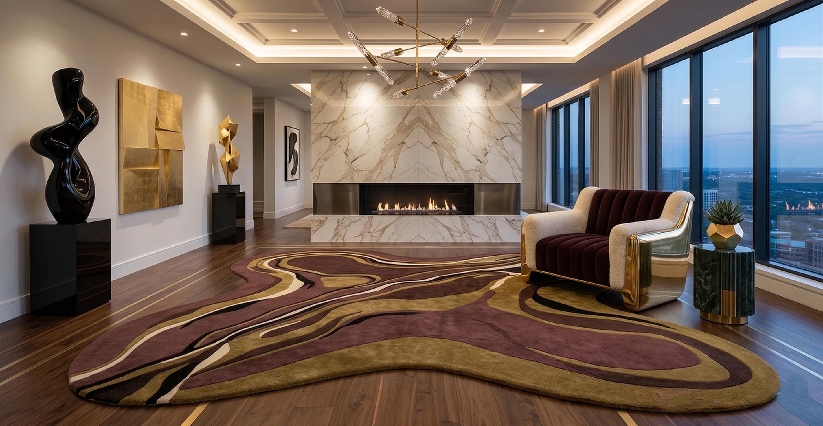 The fluid, artistic pattern adds movement and depth, making it perfect for contemporary, minimalist, or luxury interiors.