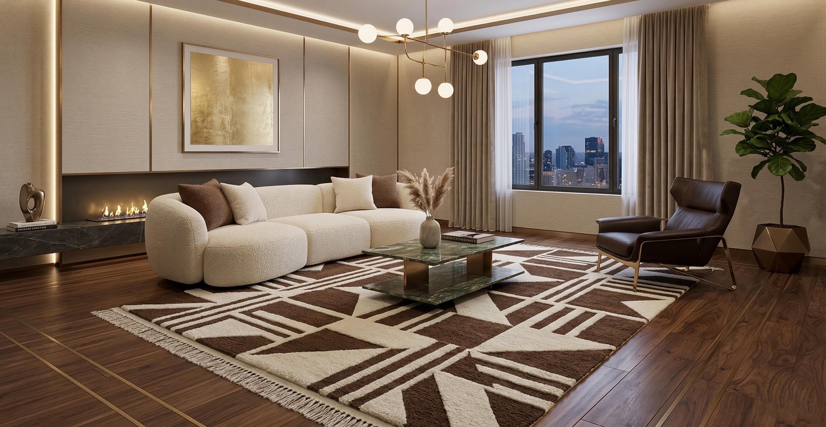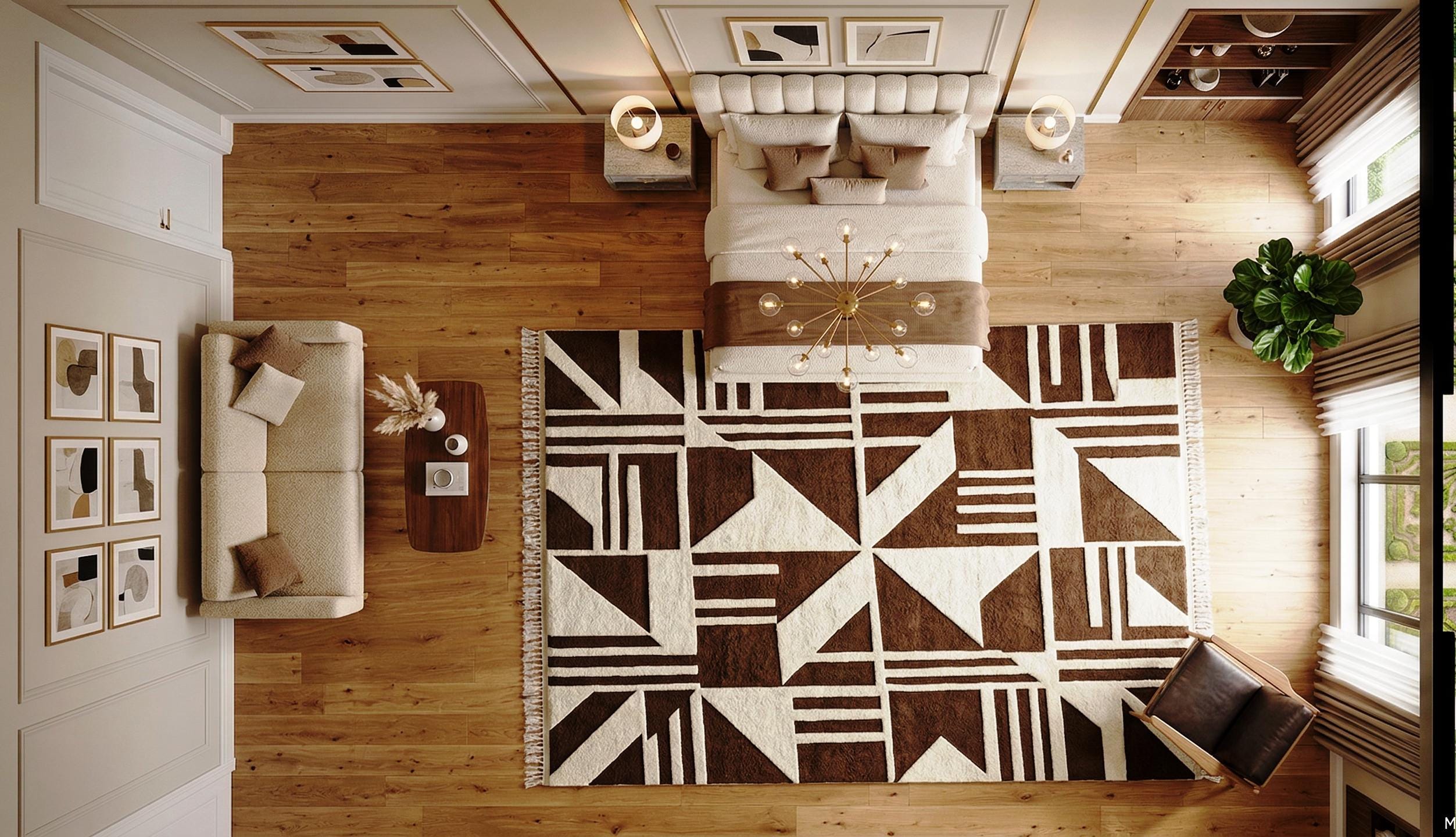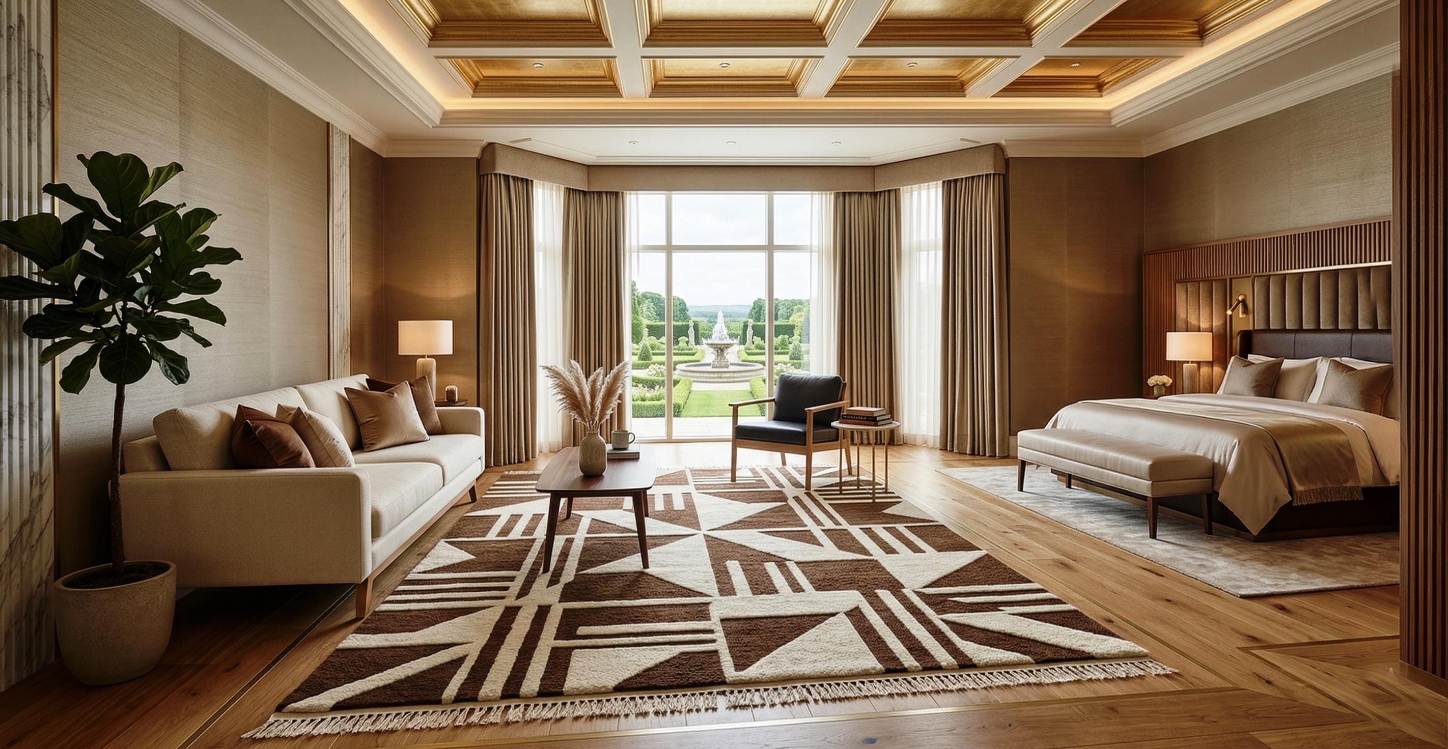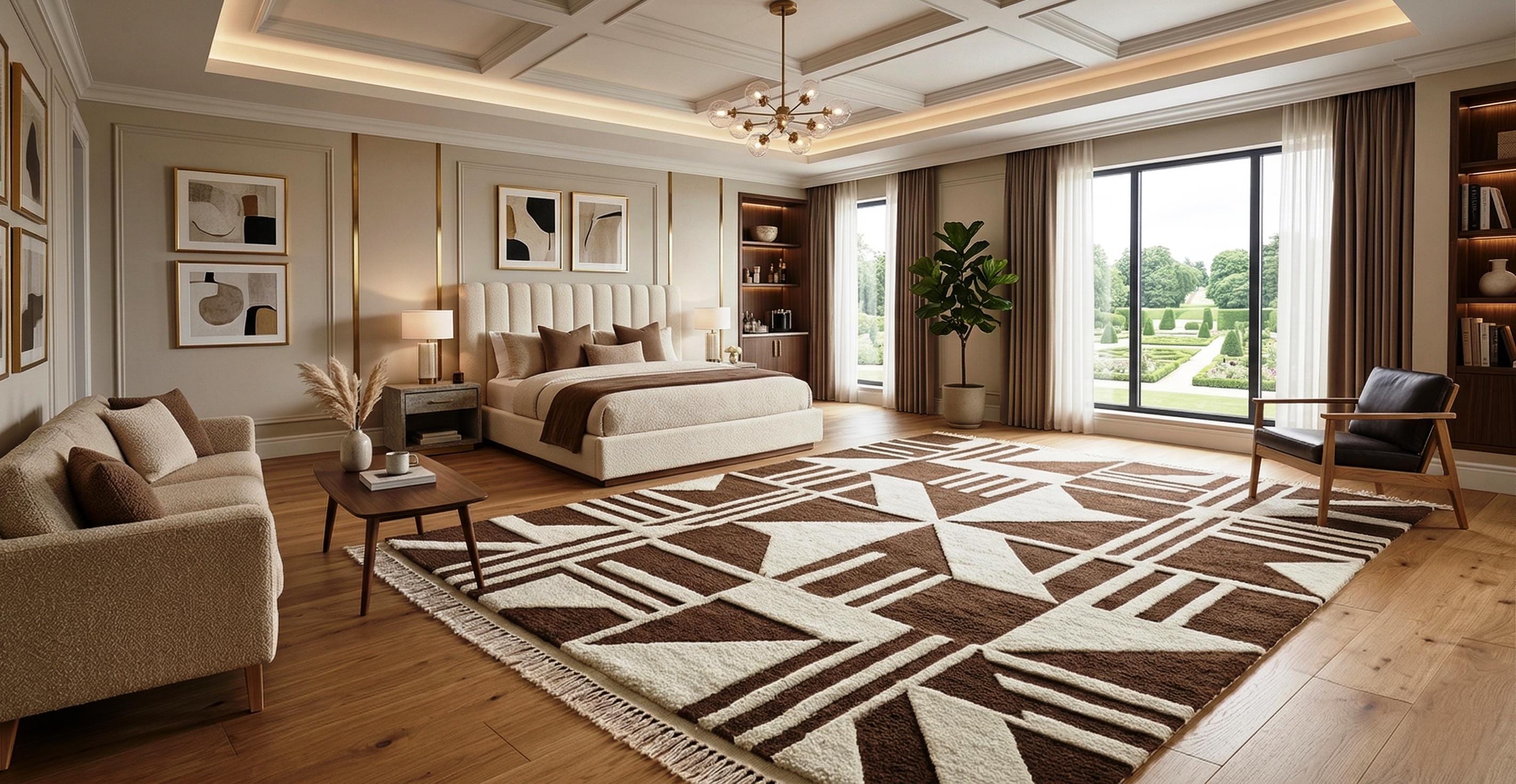 Bring warmth and contemporary style into your home with this beautifully handcrafted geometric brown and cream rug. Designed with bold abstract patterns and clean lines, this rug is perfect for modern, minimalist, and Scandinavian interiors.